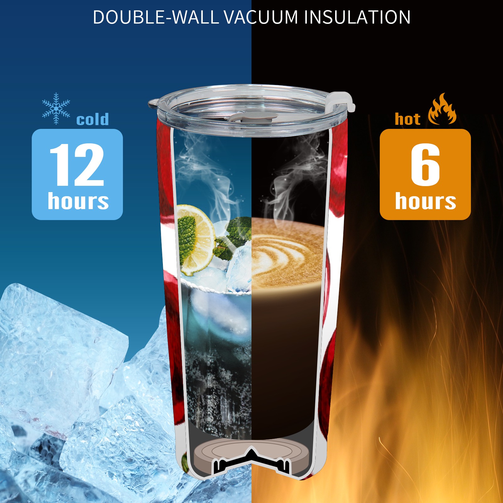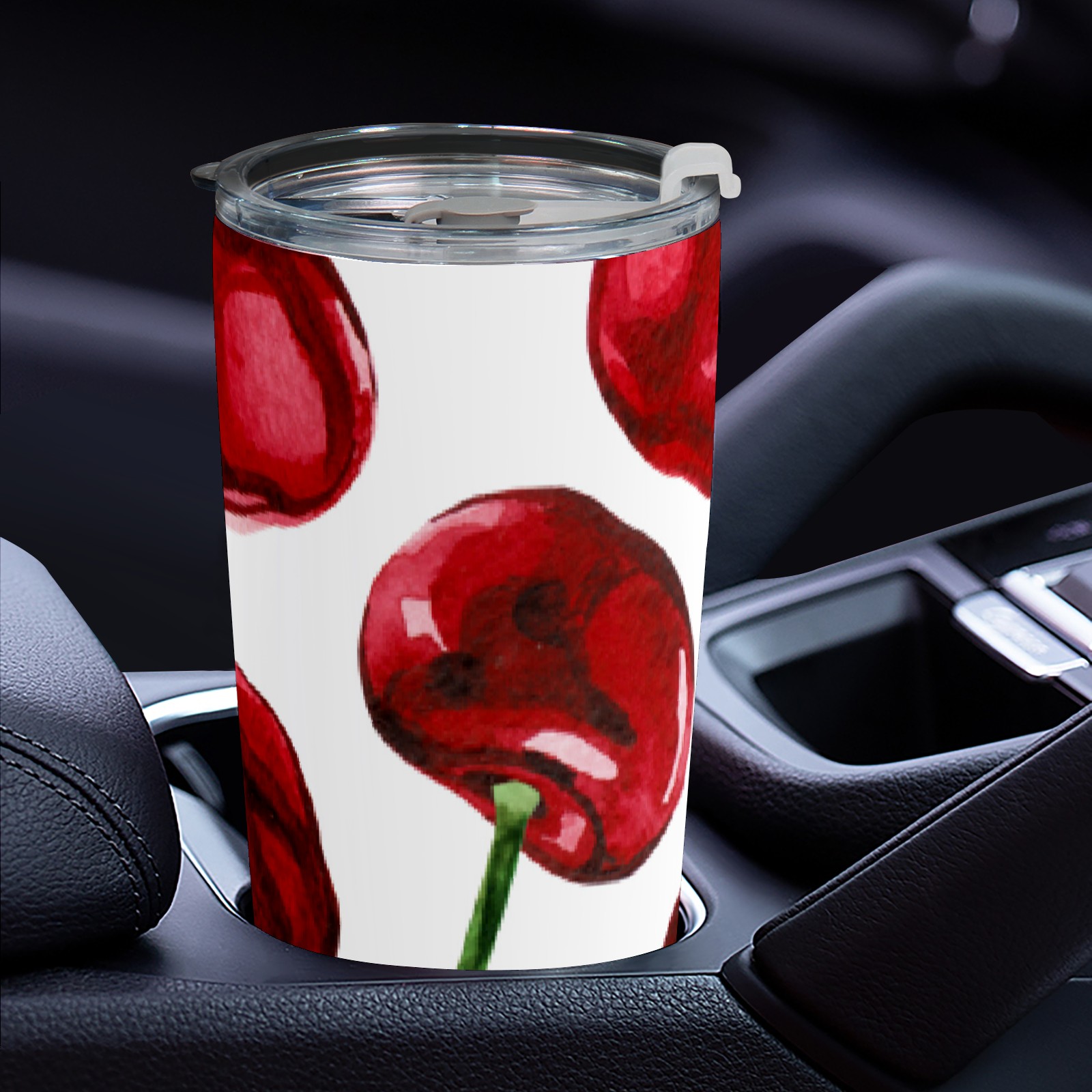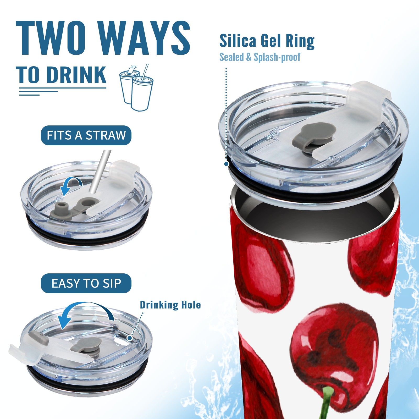 20 oz Tumbler Red Cherry Pattern Stainless Steel Insulated Tumbler with Lid Double Wall Vacuum Insulated Travel Mug Cup for Coffee Ice Hot Drinks