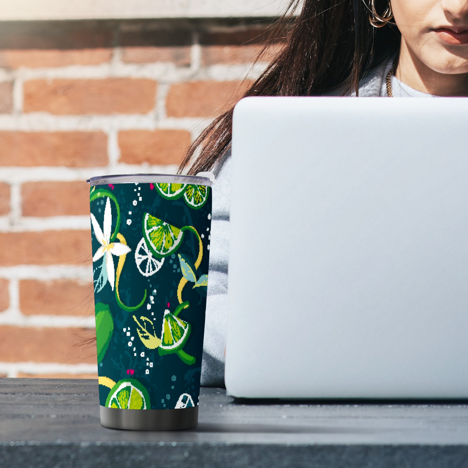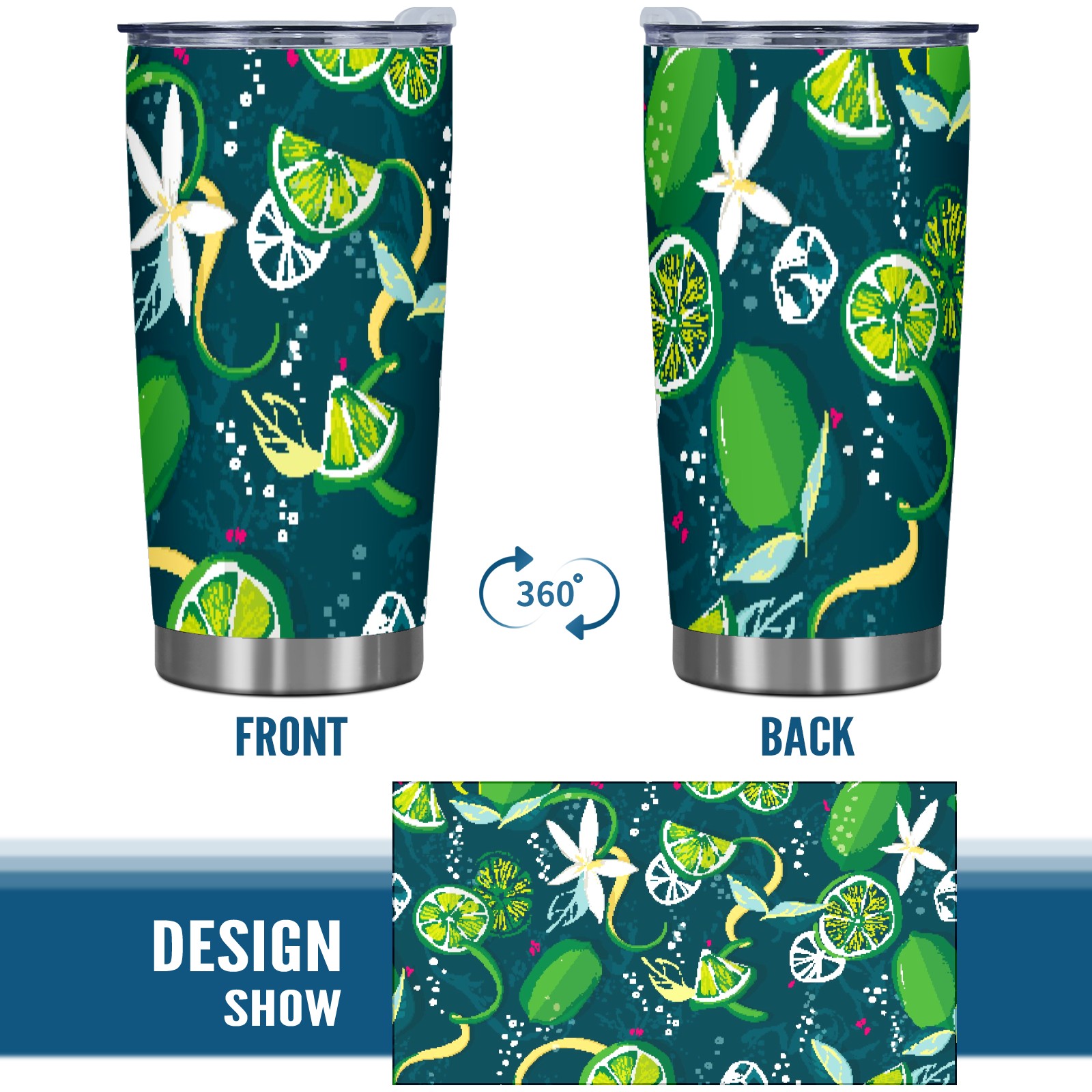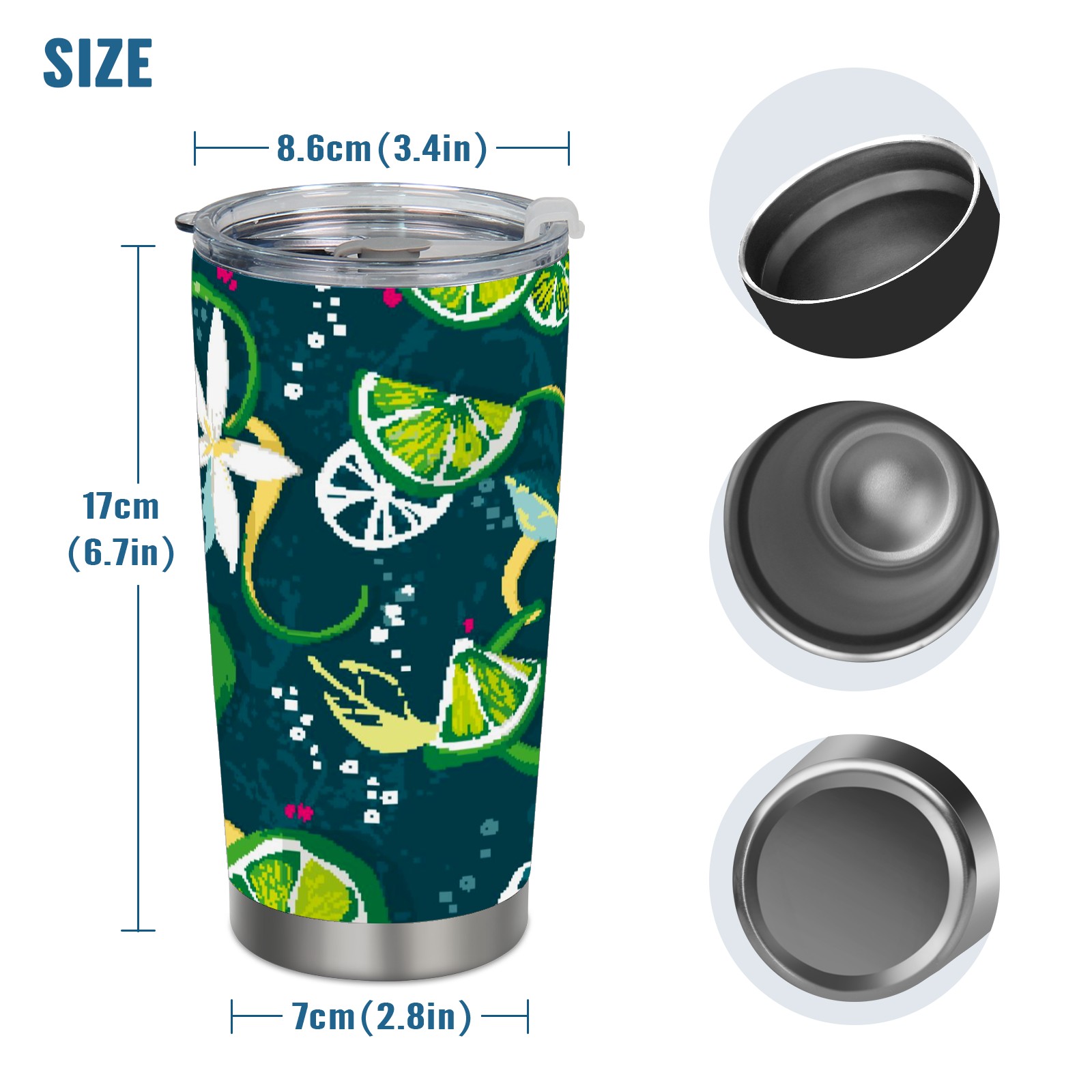 20 oz Tumbler Fruit Watercolor Green Lemon Stainless Steel Insulated Tumbler with Lid Double Wall Vacuum Insulated Travel Mug Cup for Coffee Ice Hot Drinks