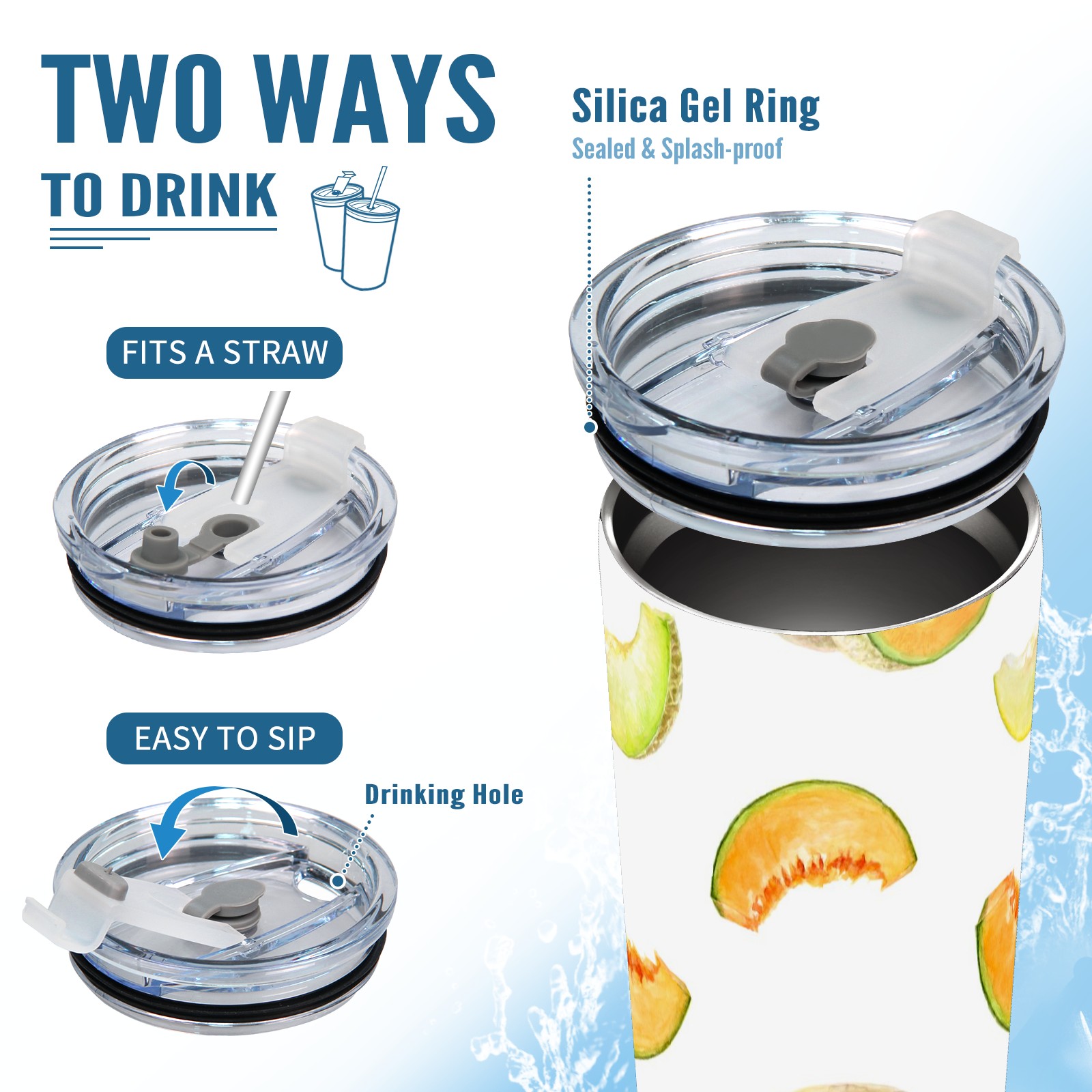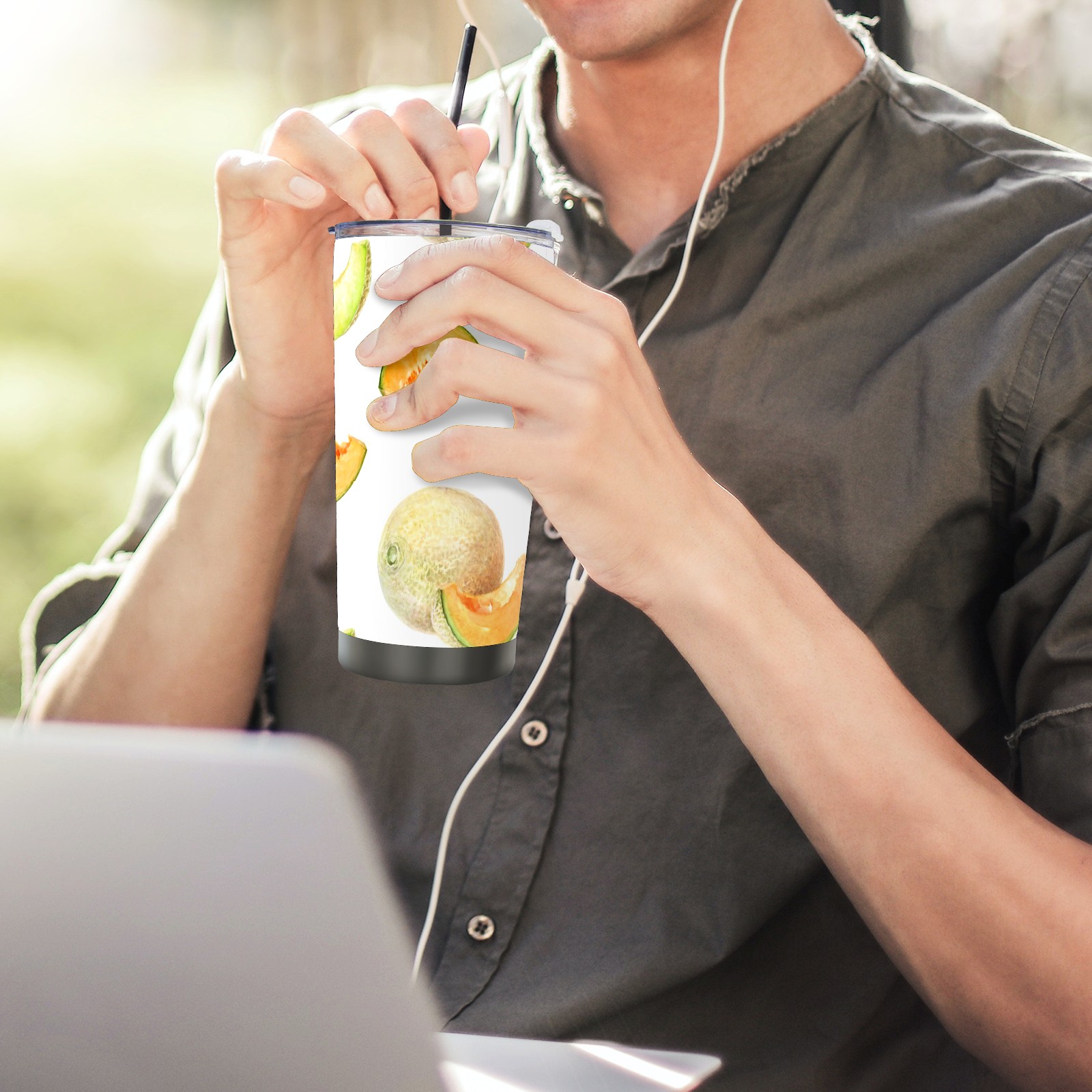 20 oz Tumbler Fruit Cantaloupe Hami Melon Stainless Steel Insulated Tumbler with Lid Double Wall Vacuum Insulated Travel Mug Cup for Coffee Ice Hot Drinks
