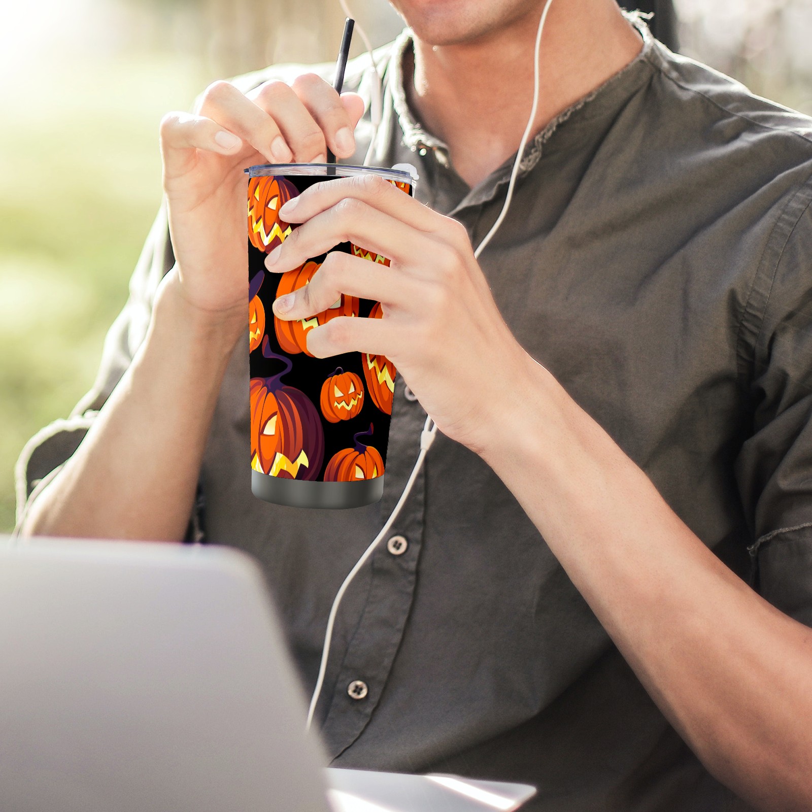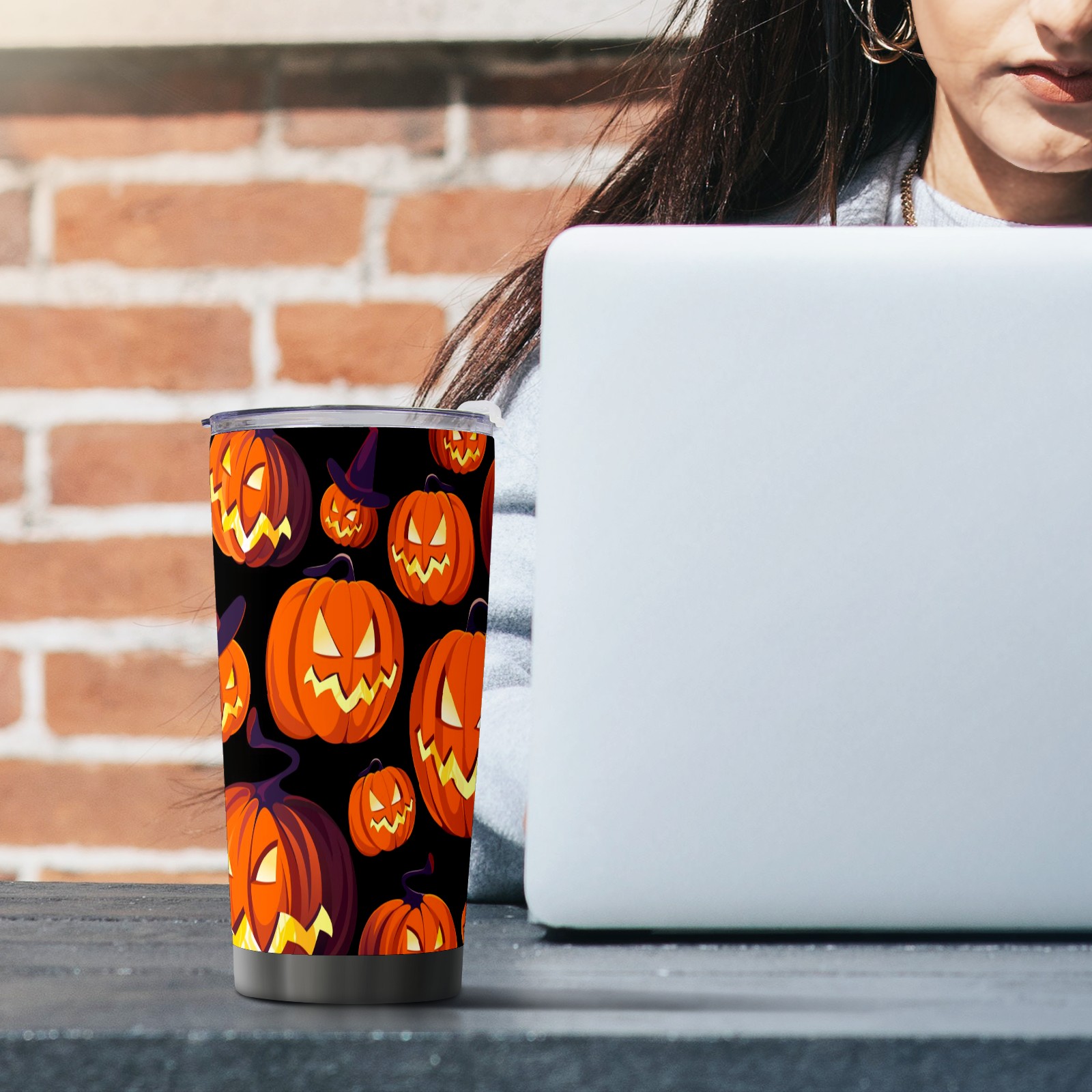 20 oz Tumbler Devil Pumpkin Hat Stainless Steel Insulated Tumbler with Lid Double Wall Vacuum Insulated Travel Mug Cup for Coffee Ice Hot Drinks