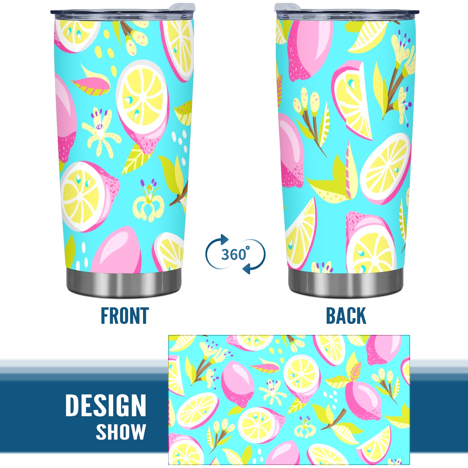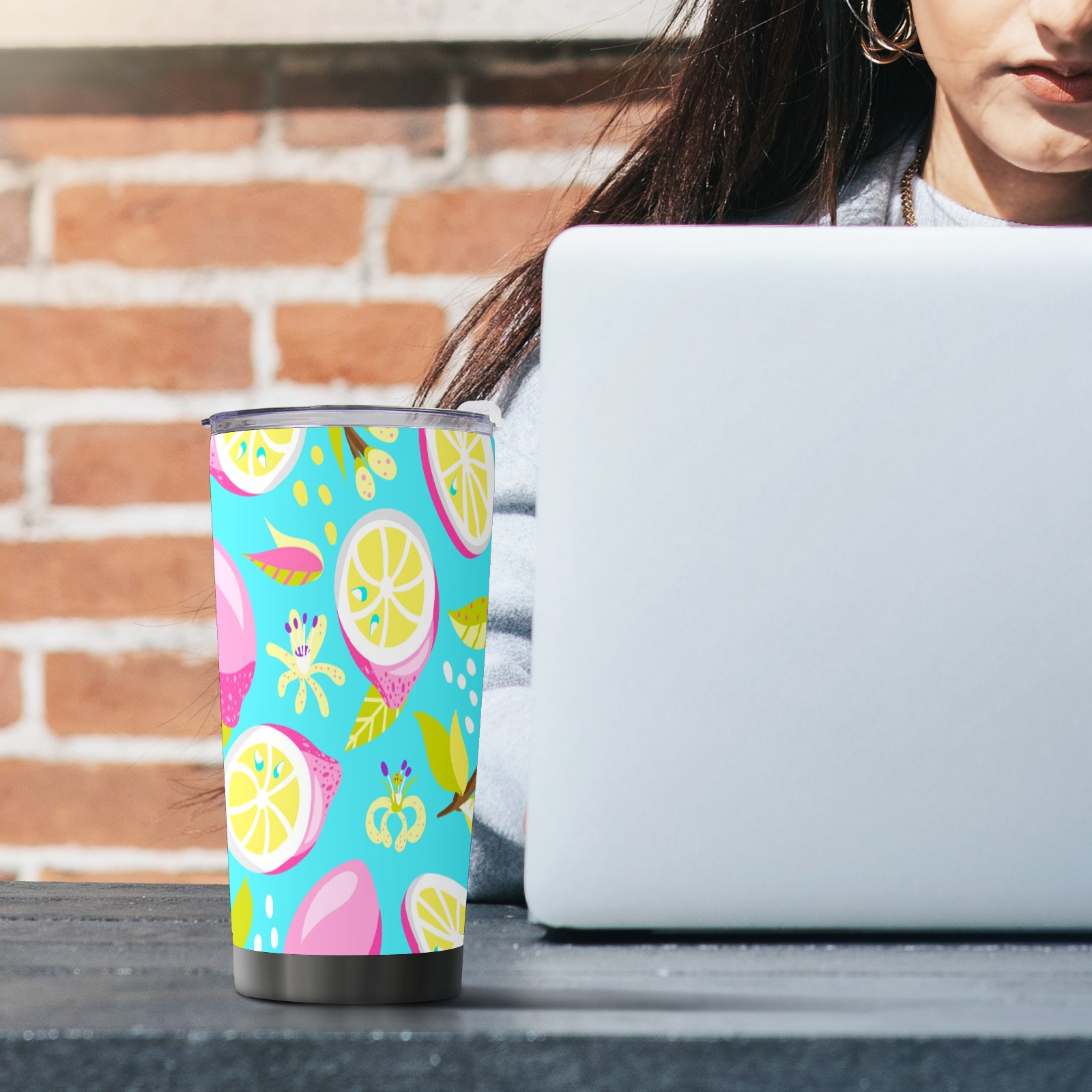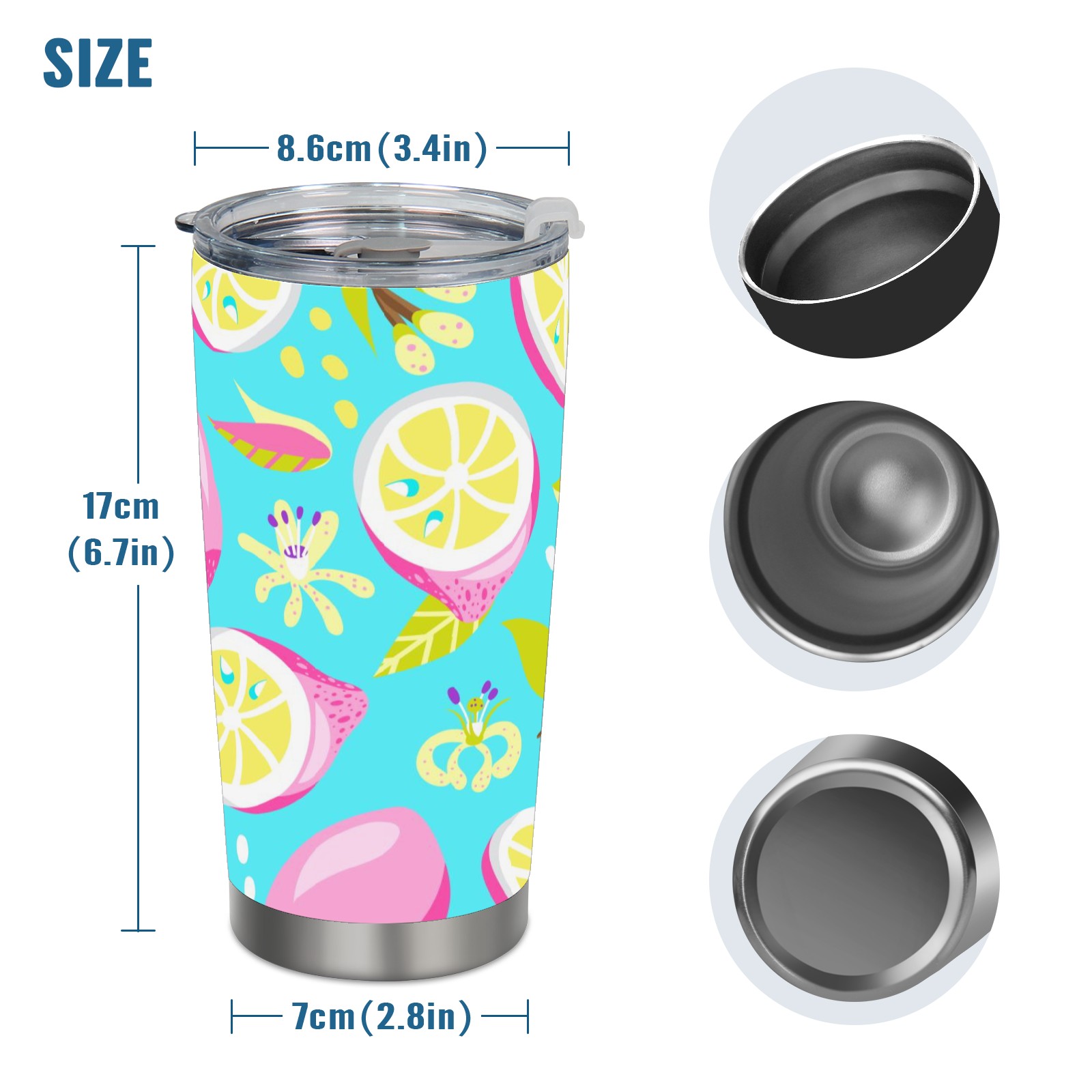 20 oz Tumbler Rose Lemon Stainless Steel Insulated Tumbler with Lid Double Wall Vacuum Insulated Travel Mug Cup for Coffee Ice Hot Drinks