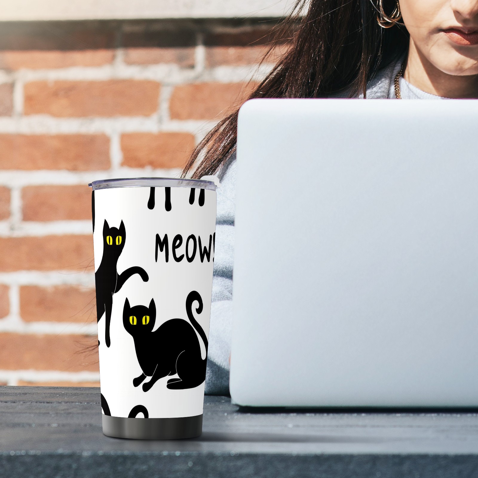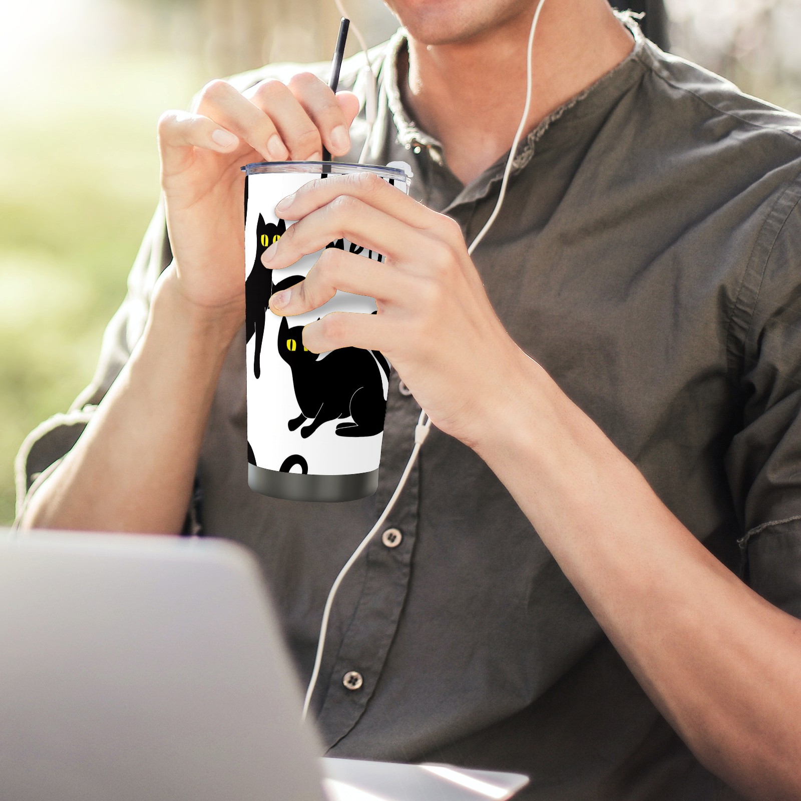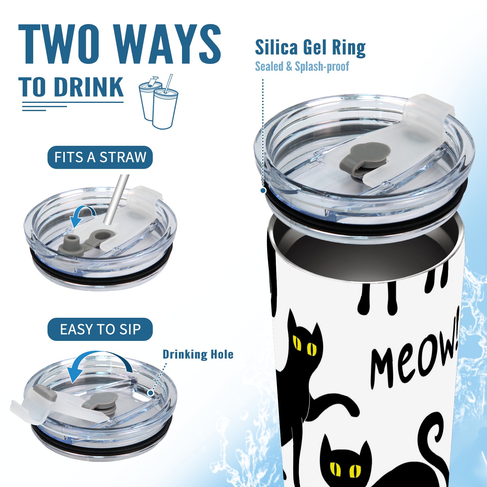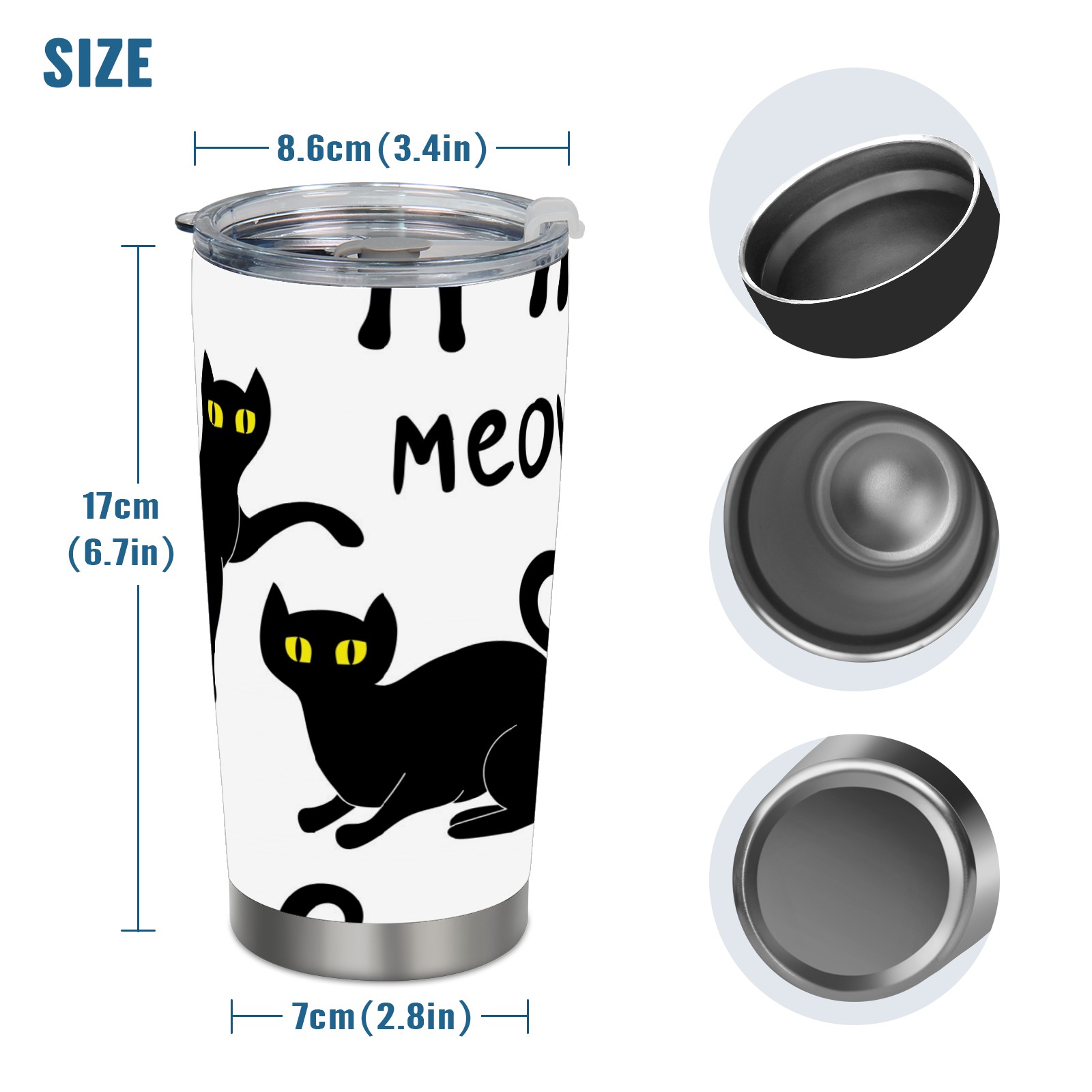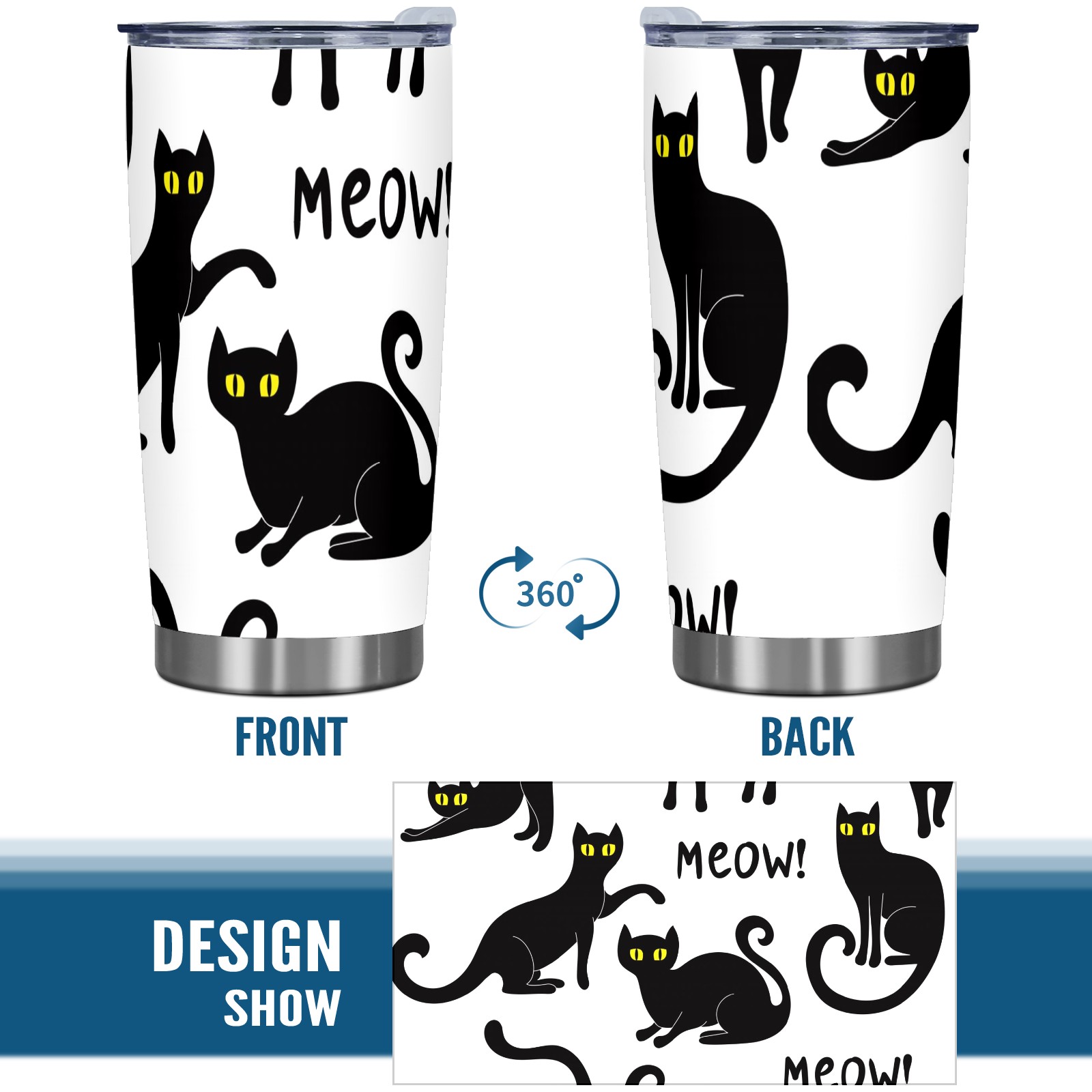 20 oz Tumbler Set Of Various Black Cat Silhouettes Stainless Steel Insulated Tumbler with Lid Double Wall Vacuum Insulated Travel Mug Cup for Coffee Ice Hot Drinks