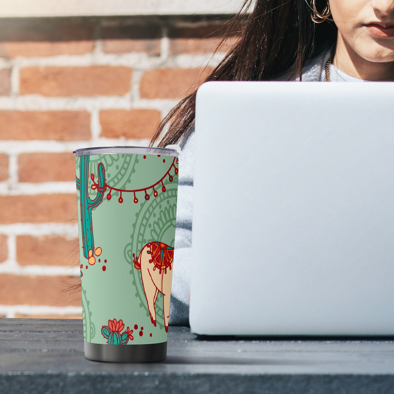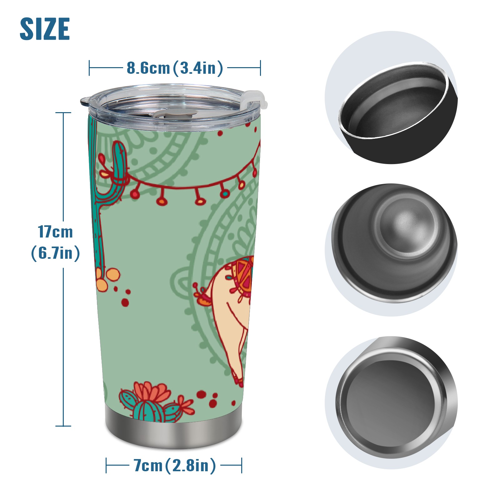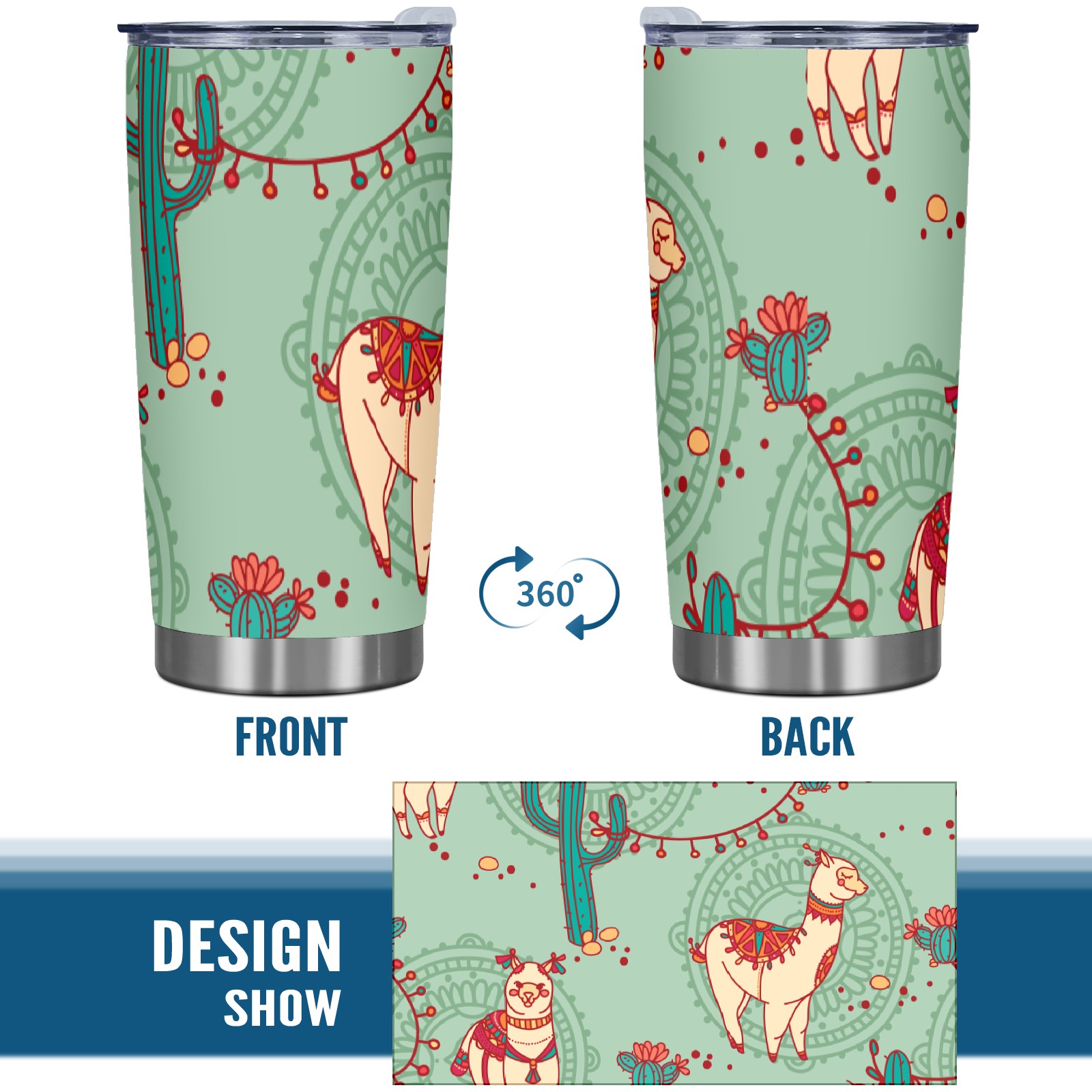20 oz Tumbler Cartoon Alpaca Cactus Stainless Steel Insulated Tumbler with Lid Double Wall Vacuum Insulated Travel Mug Cup for Coffee Ice Hot Drinks