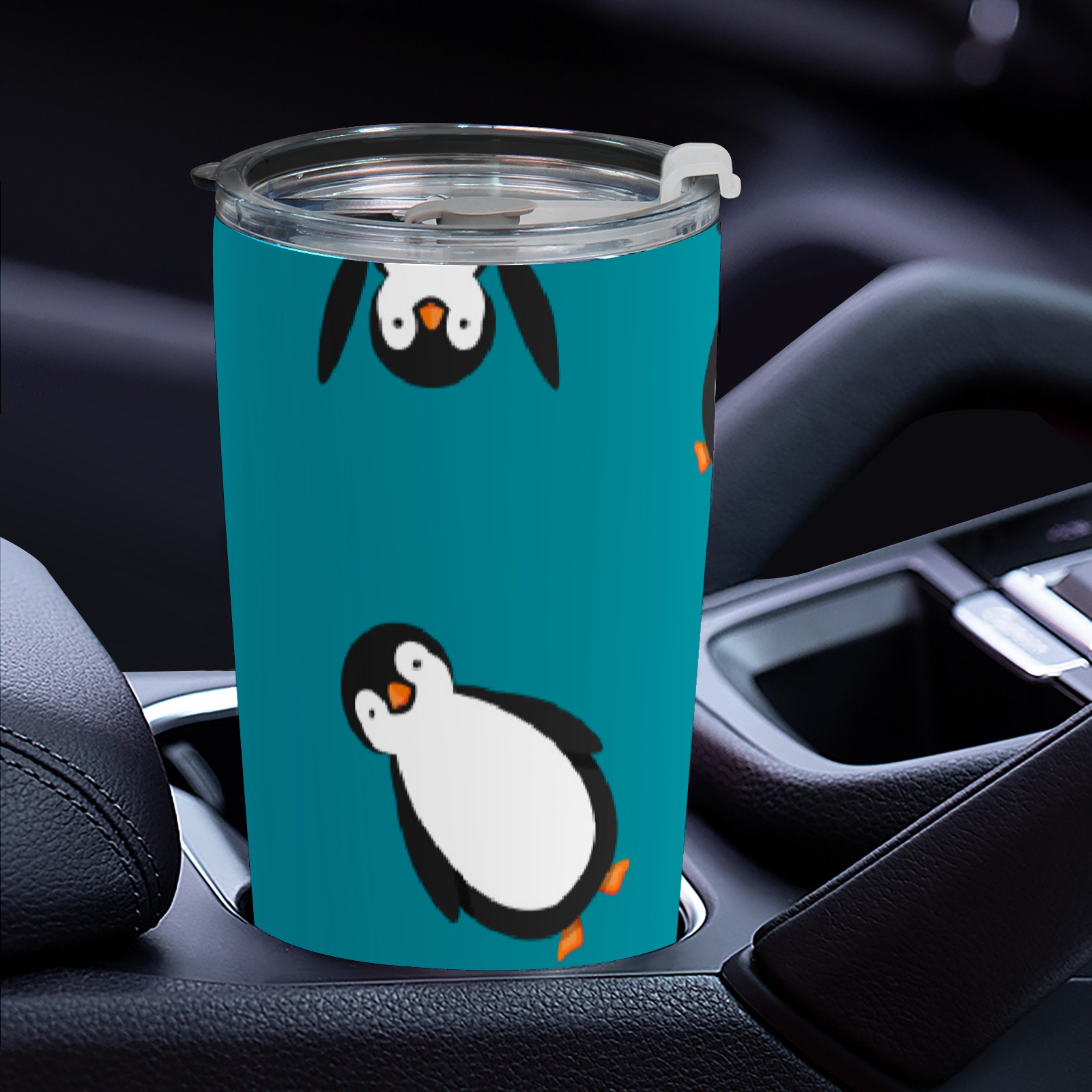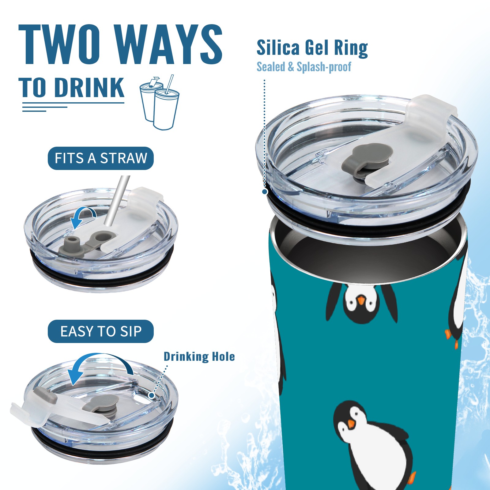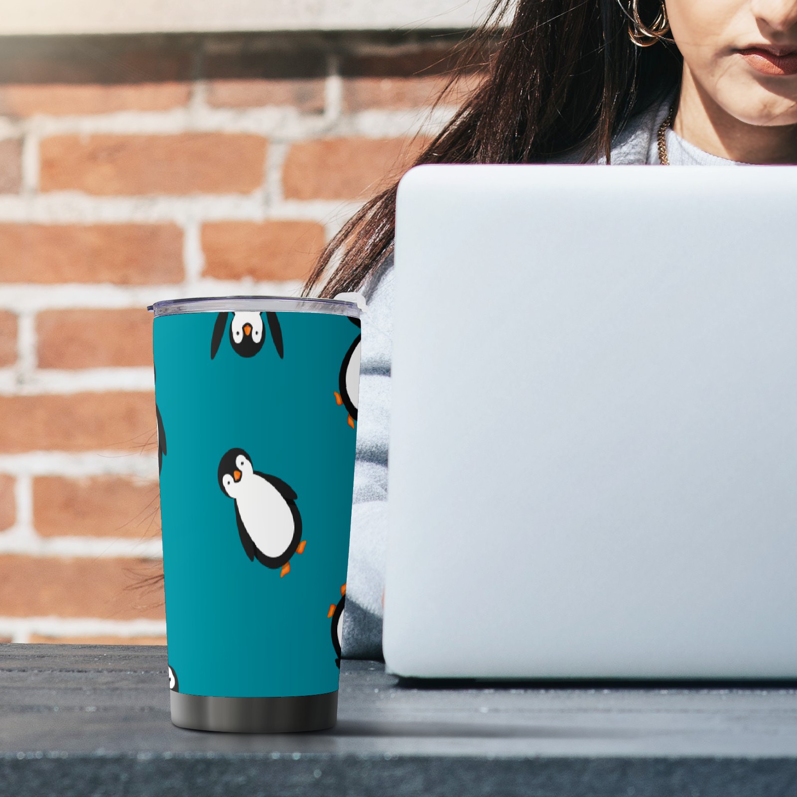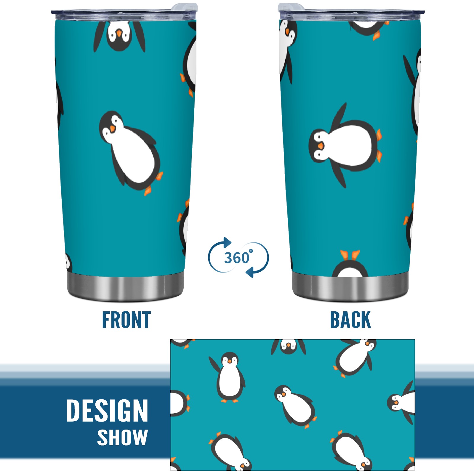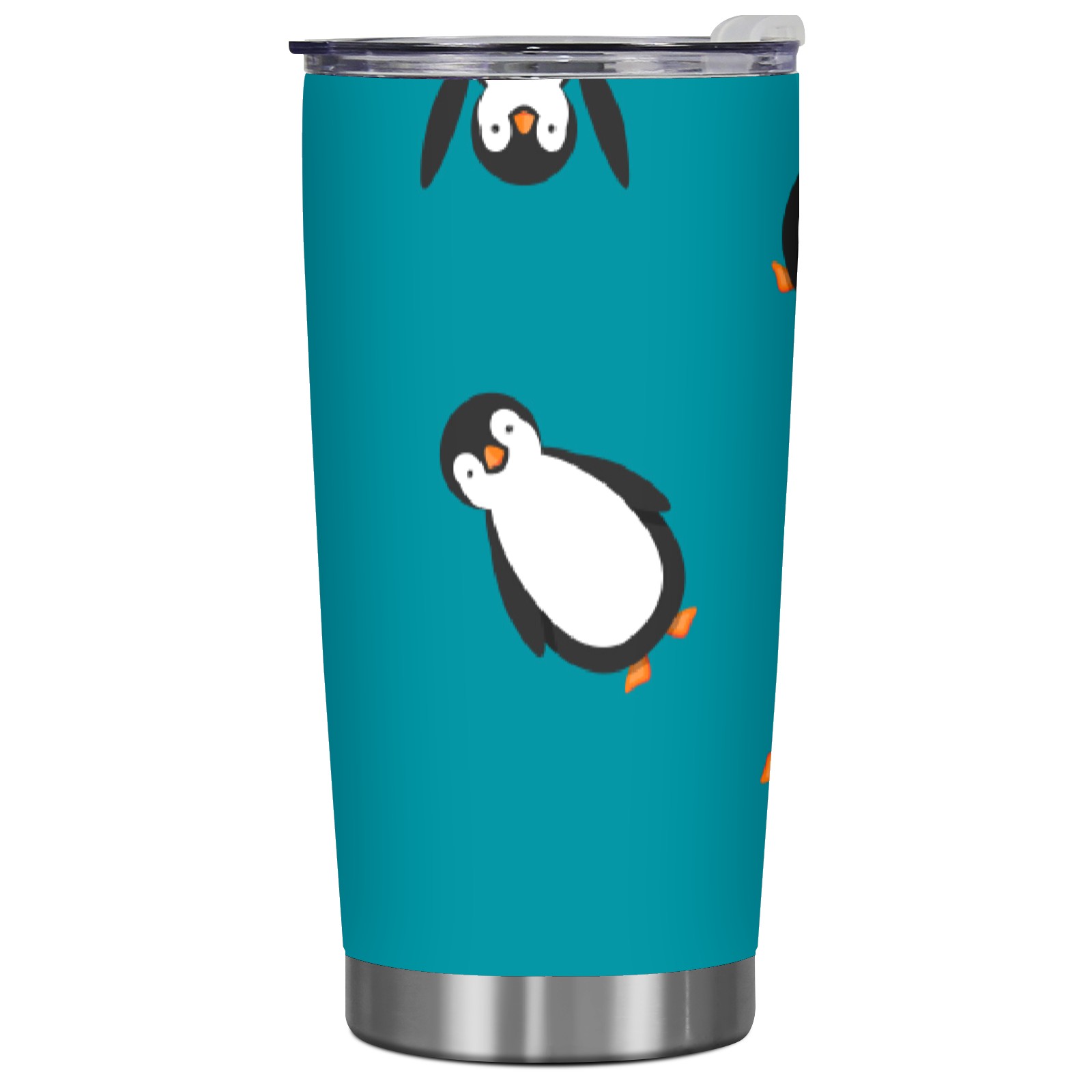 20 oz Tumbler Penguins Blue Background Stainless Steel Insulated Tumbler with Lid Double Wall Vacuum Insulated Travel Mug Cup for Coffee Ice Hot Drinks