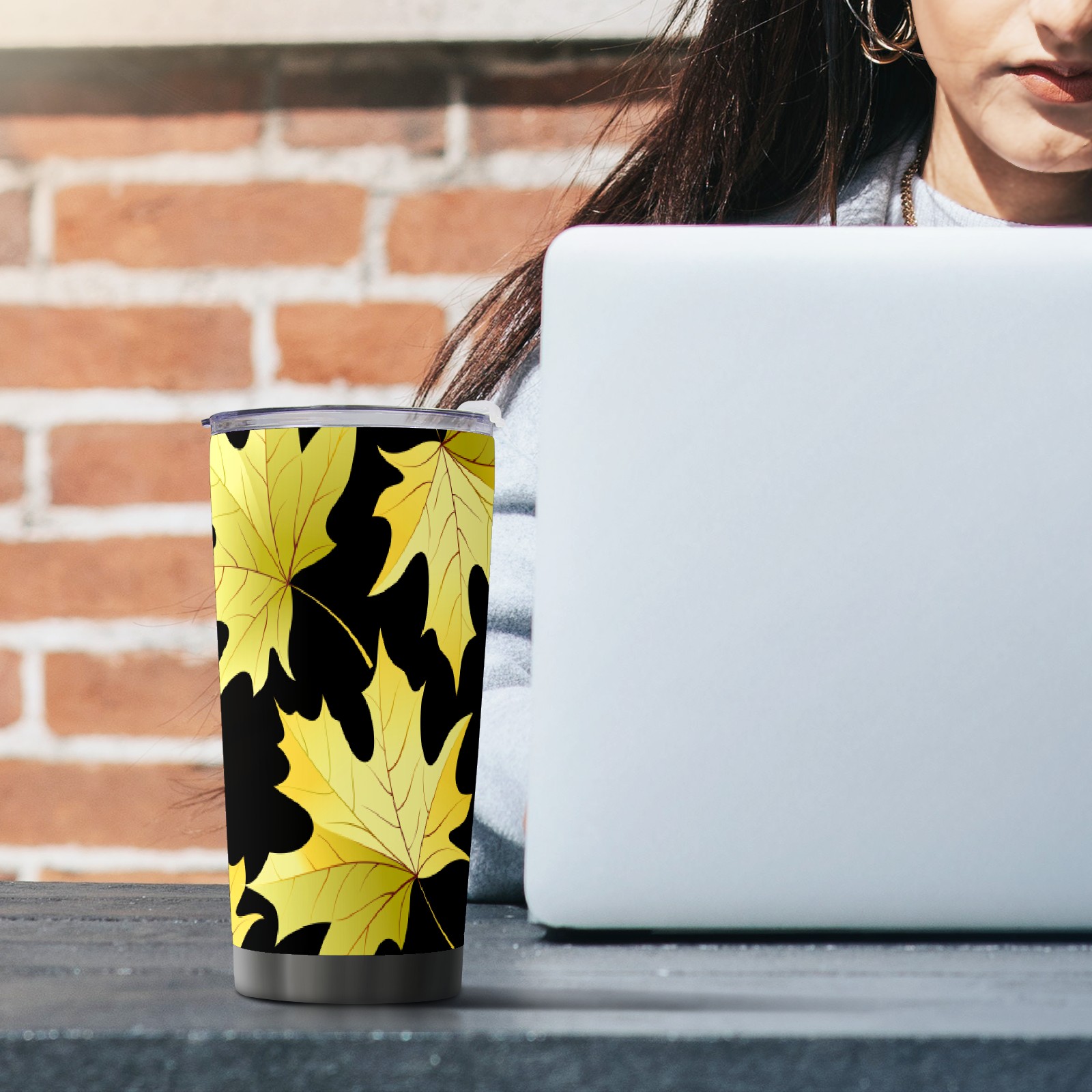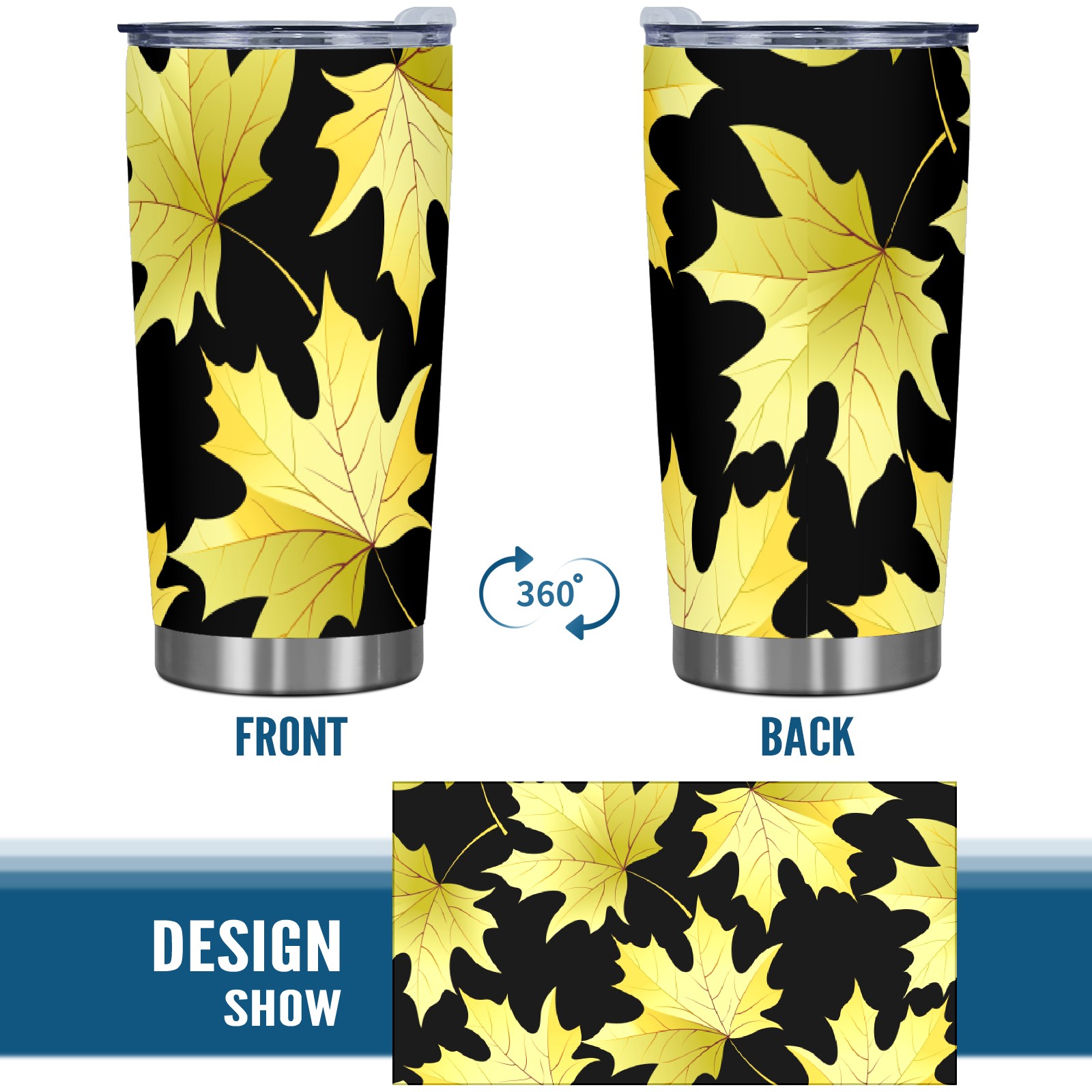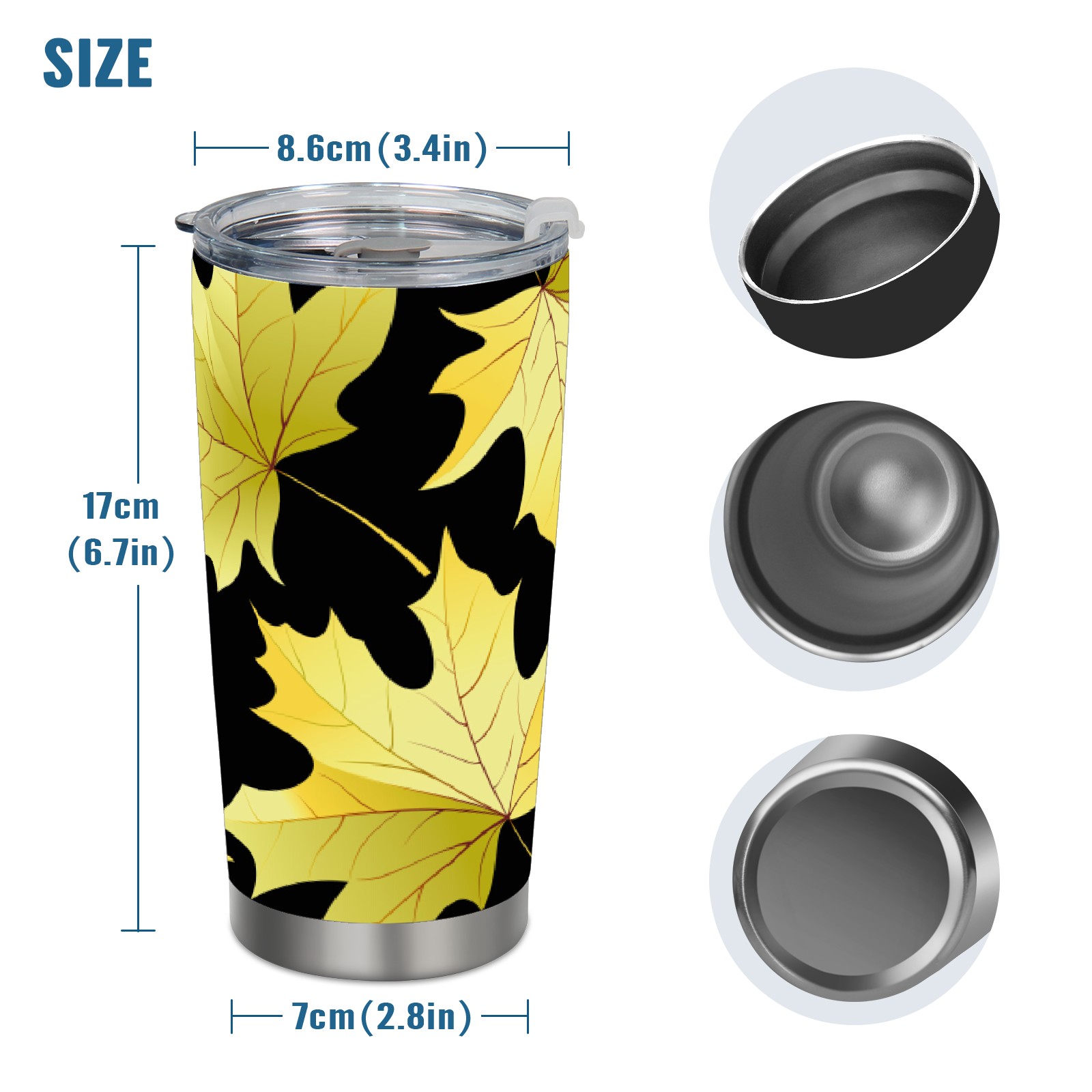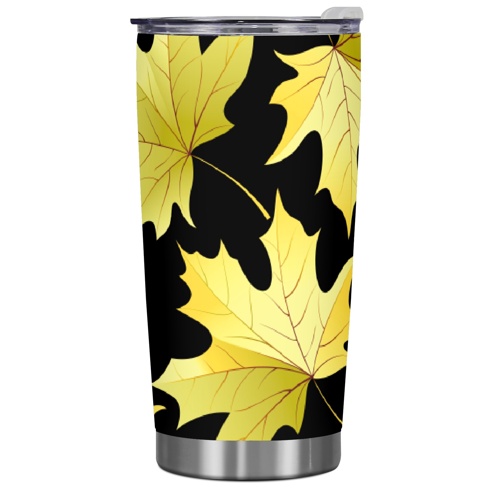 20 oz Tumbler Golden Maple Leaf Black Pattern Stainless Steel Insulated Tumbler with Lid Double Wall Vacuum Insulated Travel Mug Cup for Coffee Ice Hot Drinks