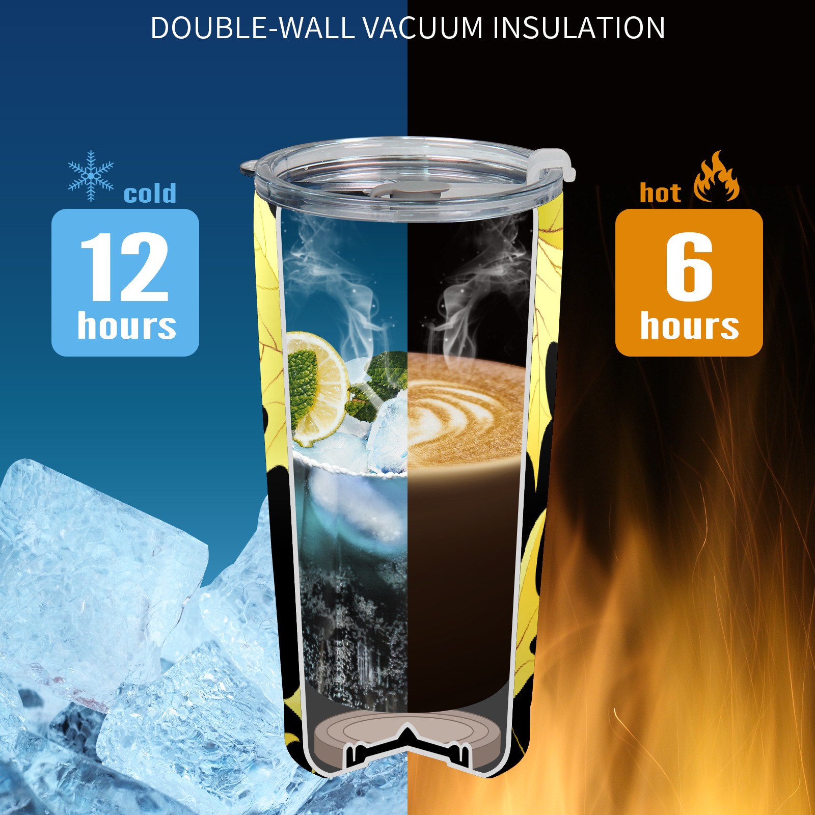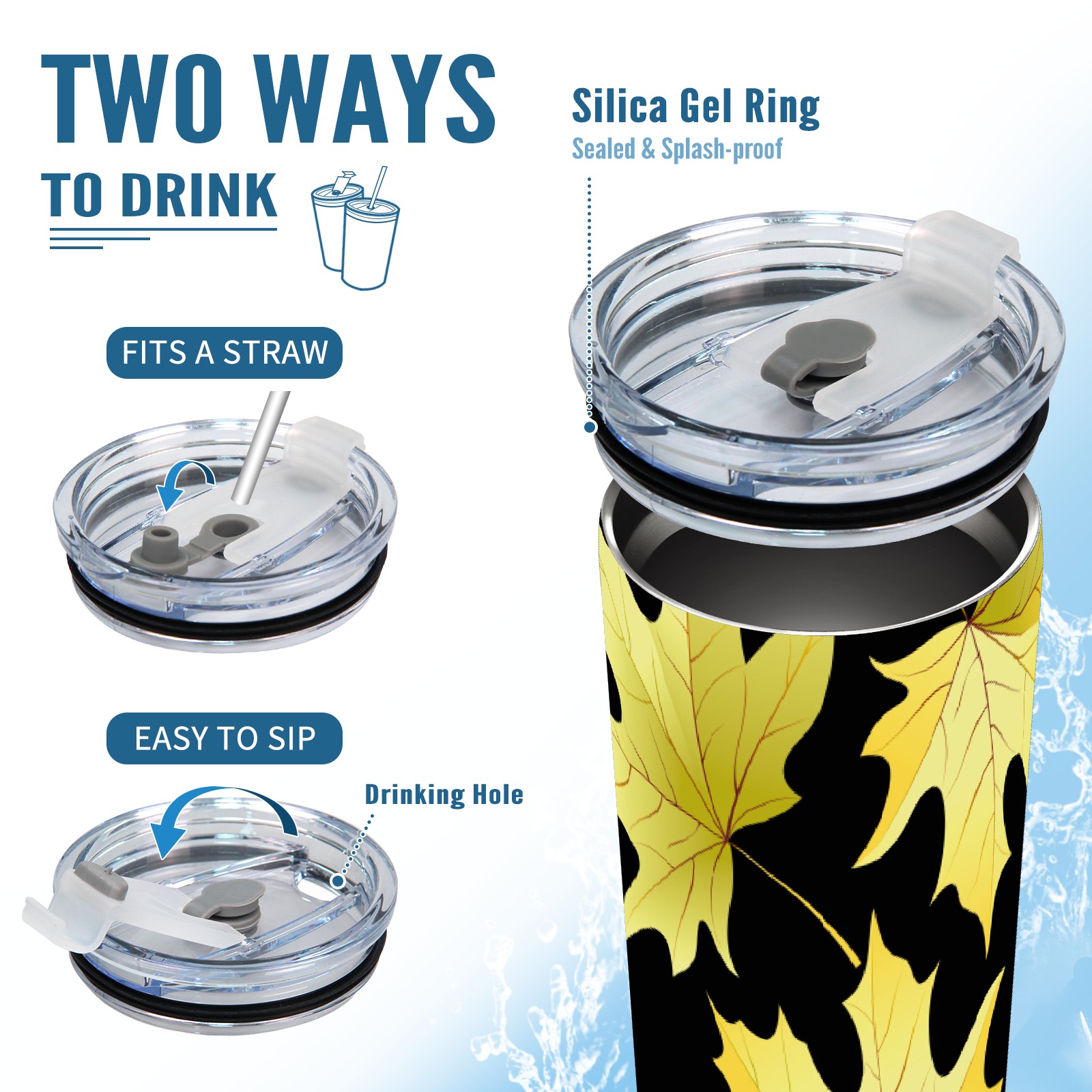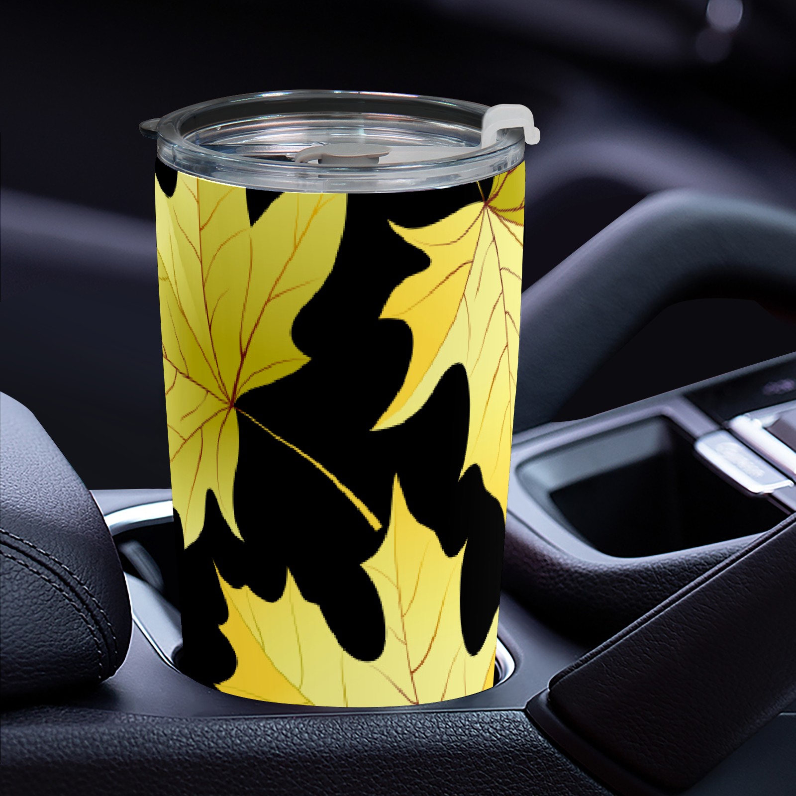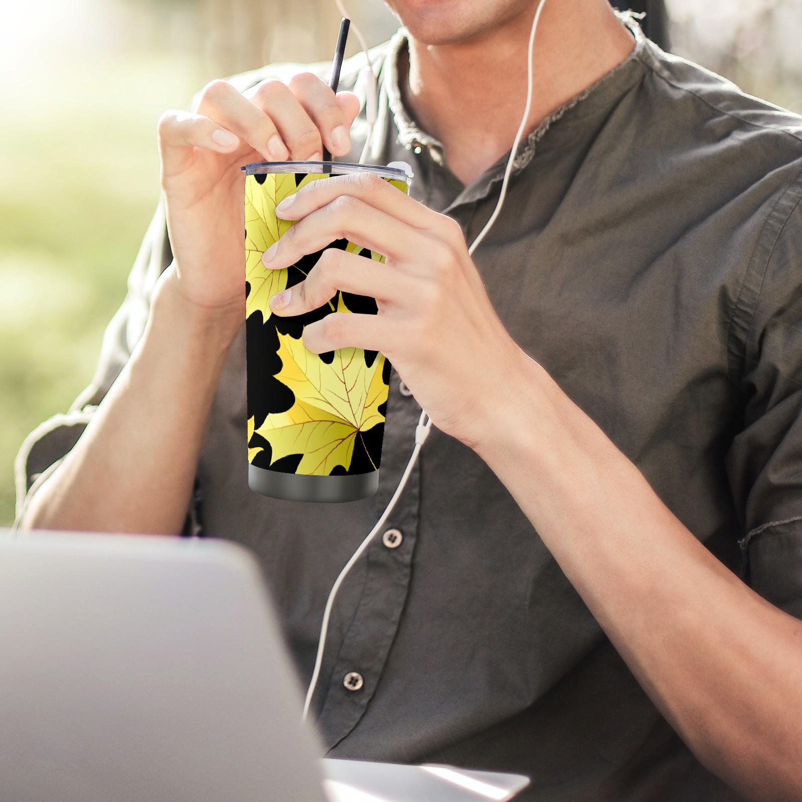 20 oz Tumbler Golden Maple Leaf Black Pattern Stainless Steel Insulated Tumbler with Lid Double Wall Vacuum Insulated Travel Mug Cup for Coffee Ice Hot Drinks