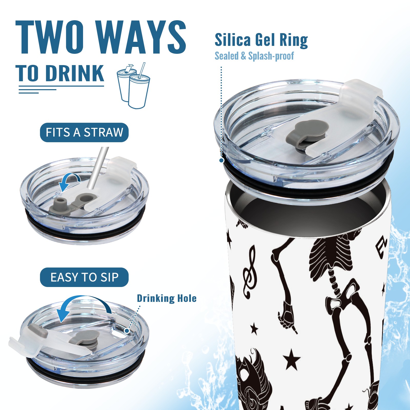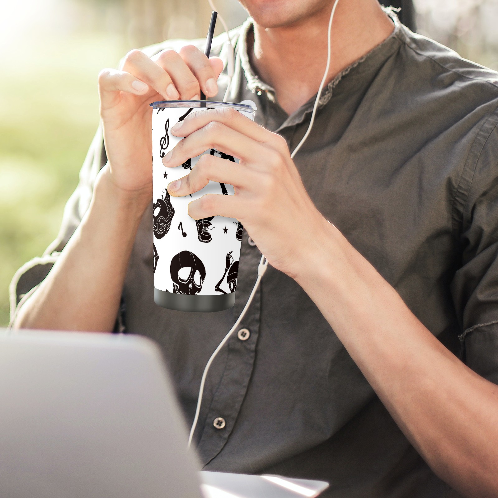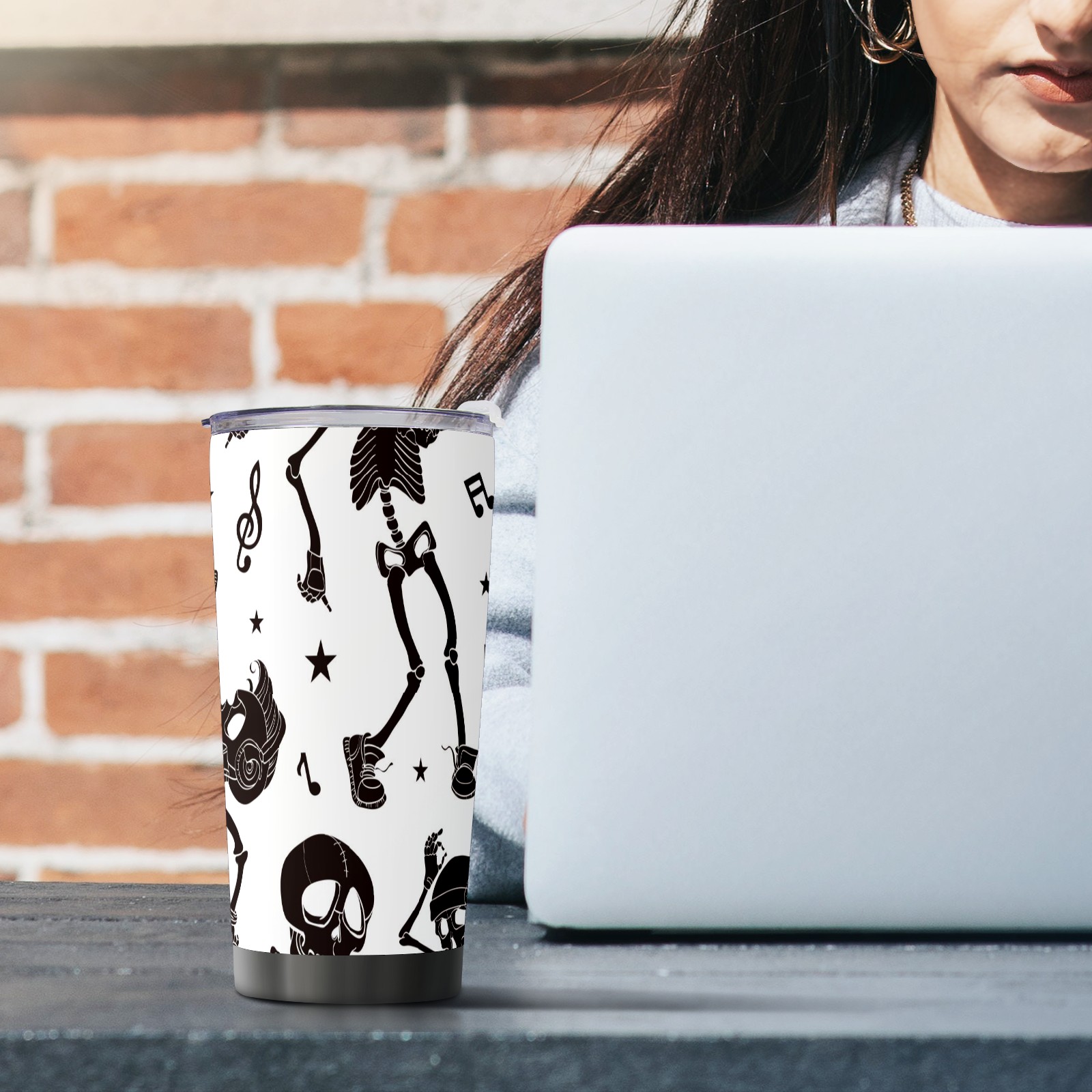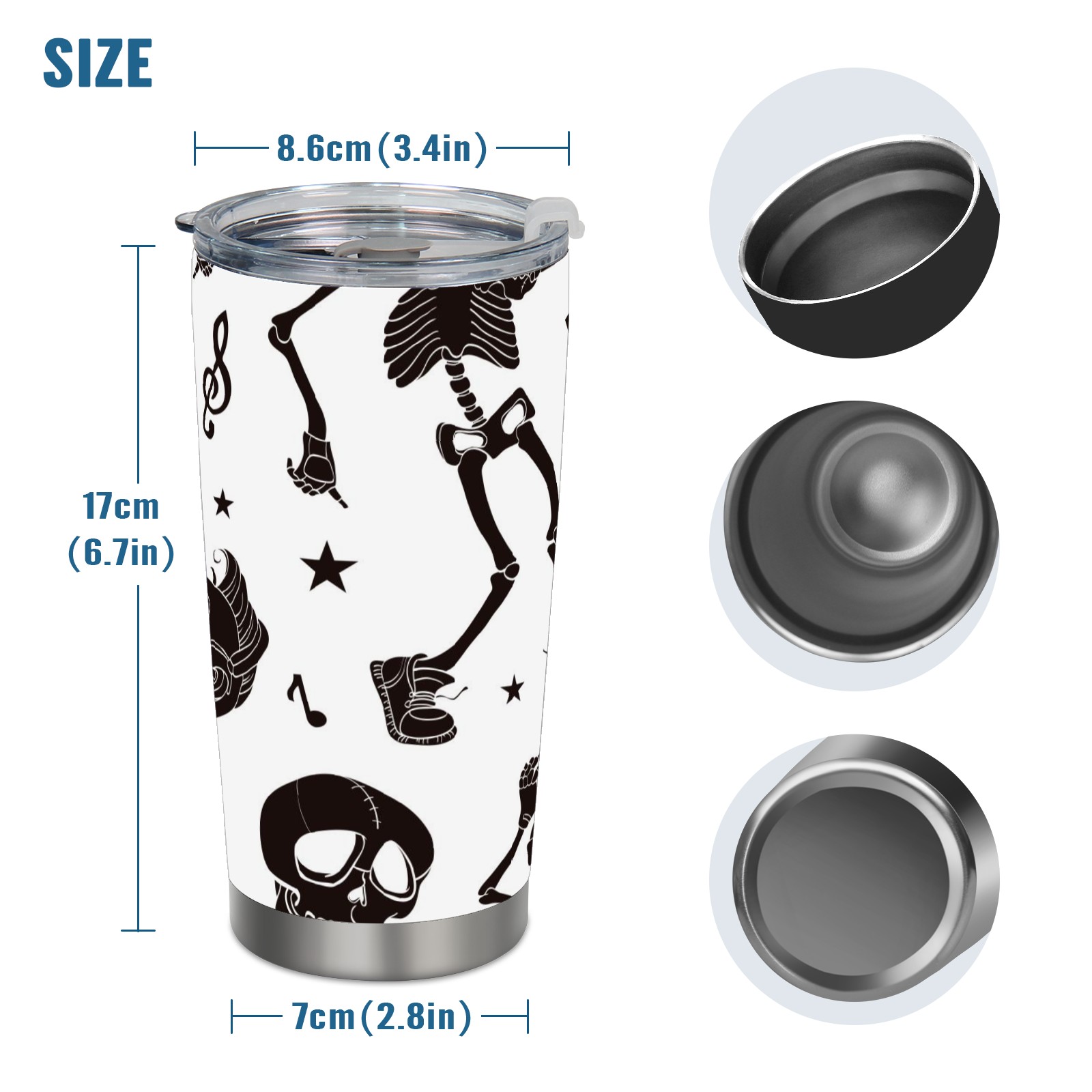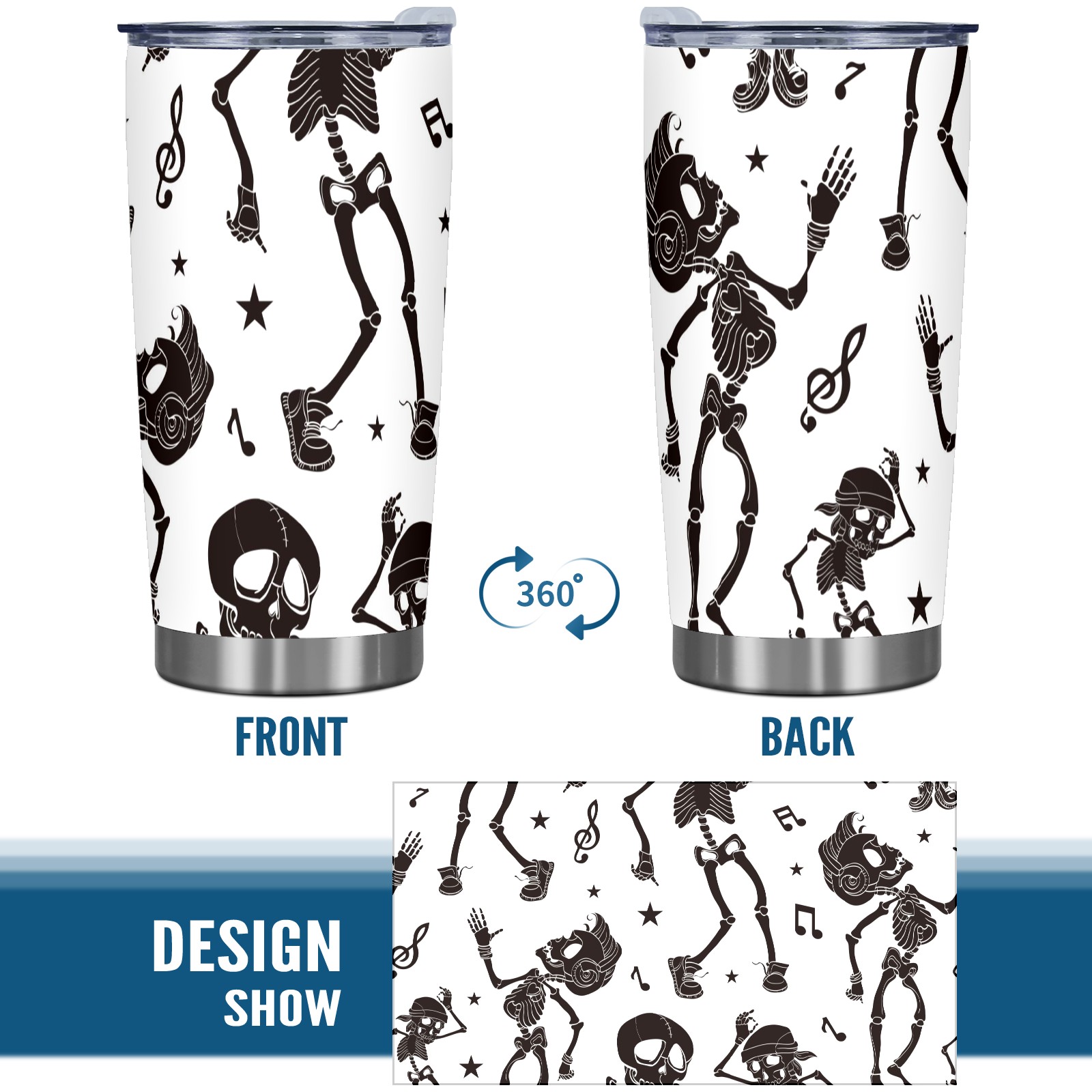 20 oz Tumbler Music Dancing Skeleton Stainless Steel Insulated Tumbler with Lid Double Wall Vacuum Insulated Travel Mug Cup for Coffee Ice Hot Drinks