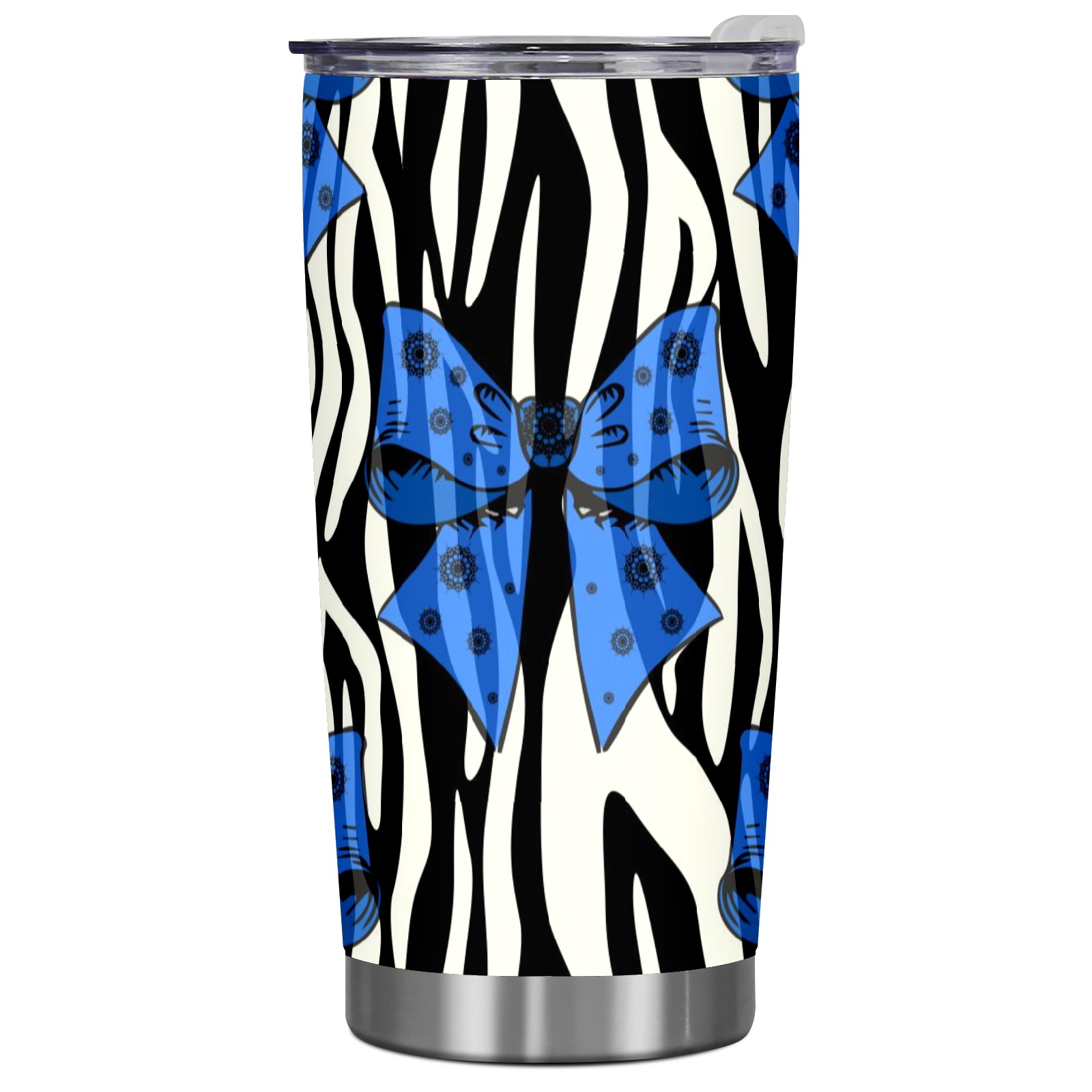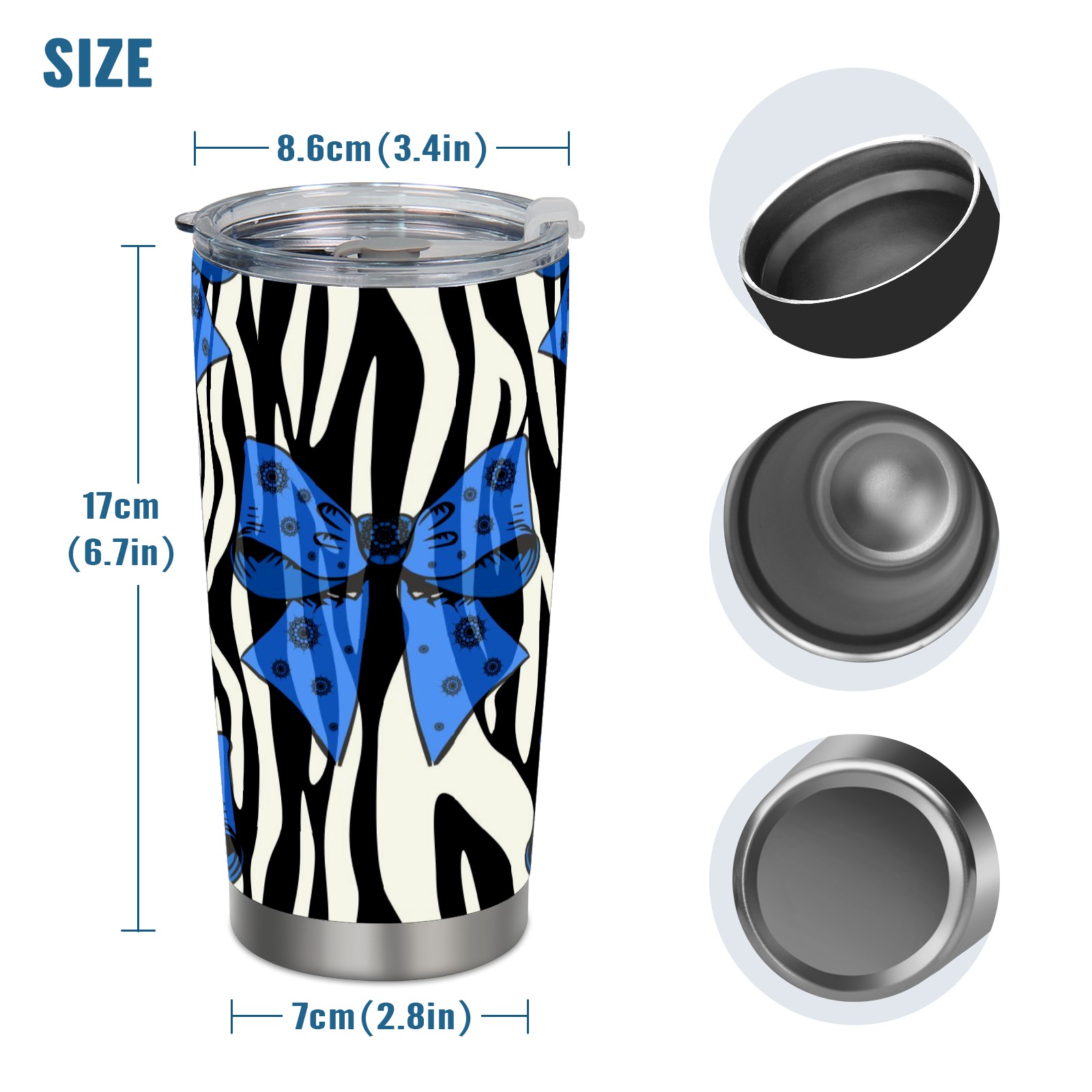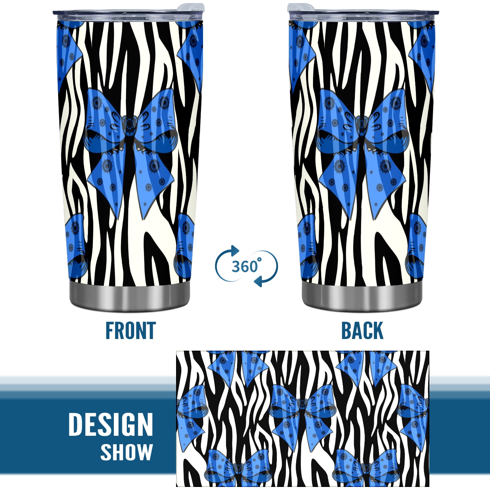 20 oz Tumbler Zebra Stripe Blue Bow Pattern Stainless Steel Insulated Tumbler with Lid Double Wall Vacuum Insulated Travel Mug Cup for Coffee Ice Hot Drinks