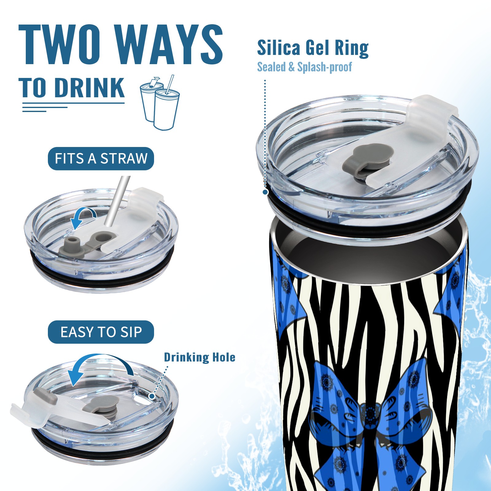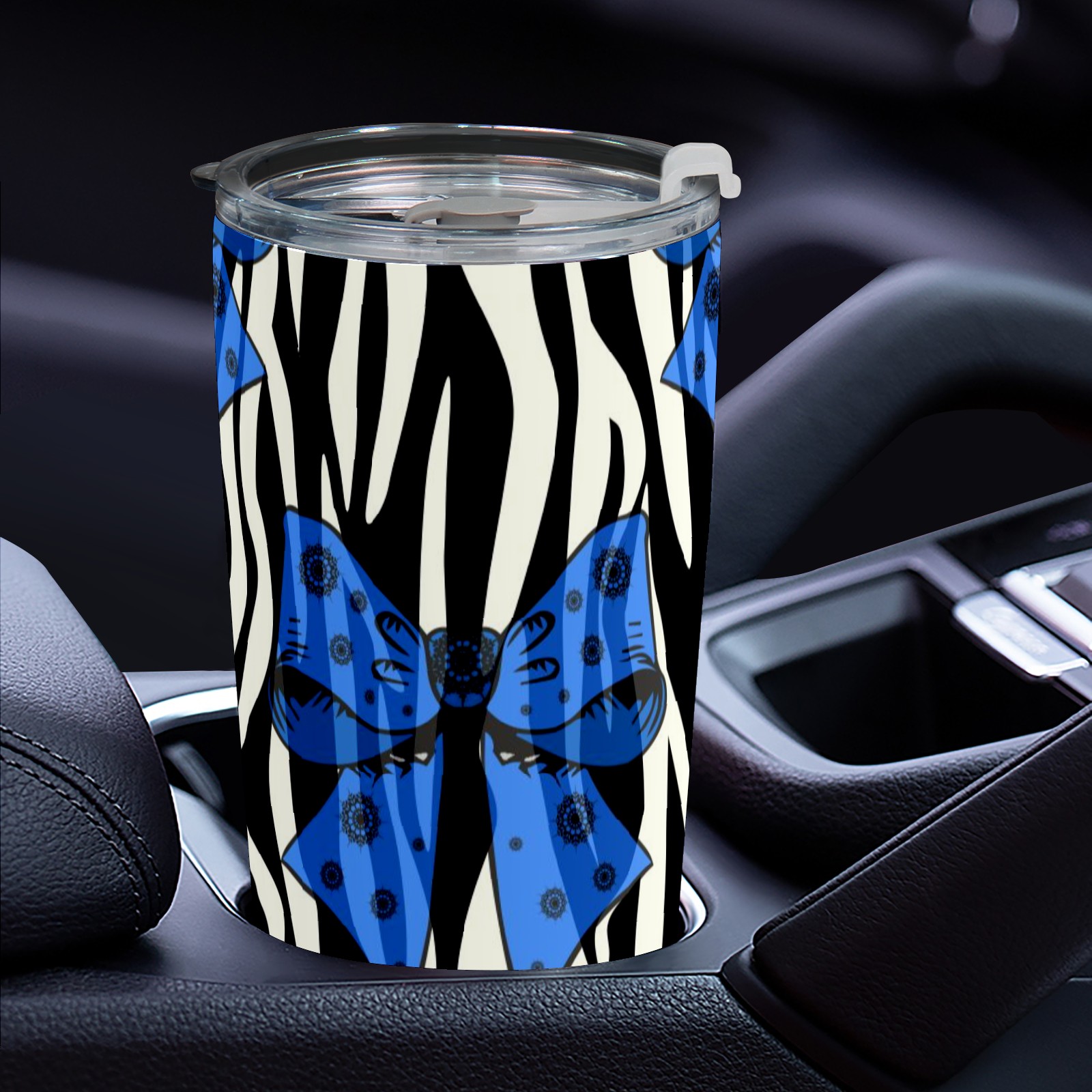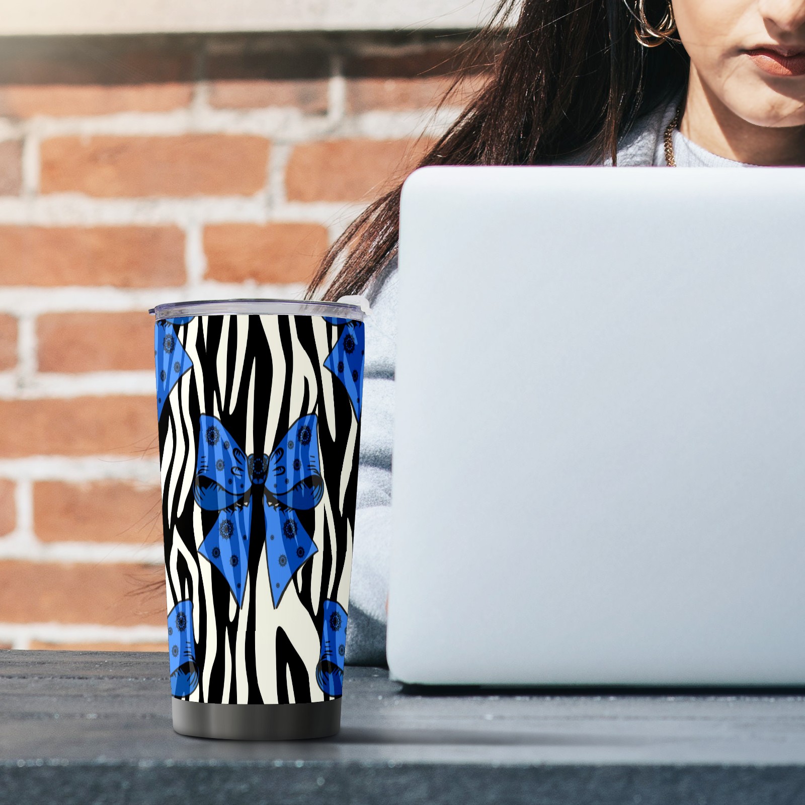 20 oz Tumbler Zebra Stripe Blue Bow Pattern Stainless Steel Insulated Tumbler with Lid Double Wall Vacuum Insulated Travel Mug Cup for Coffee Ice Hot Drinks