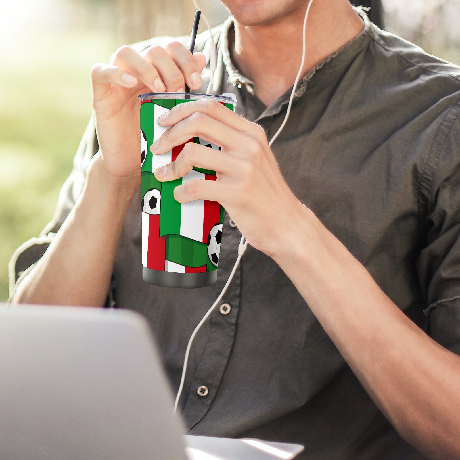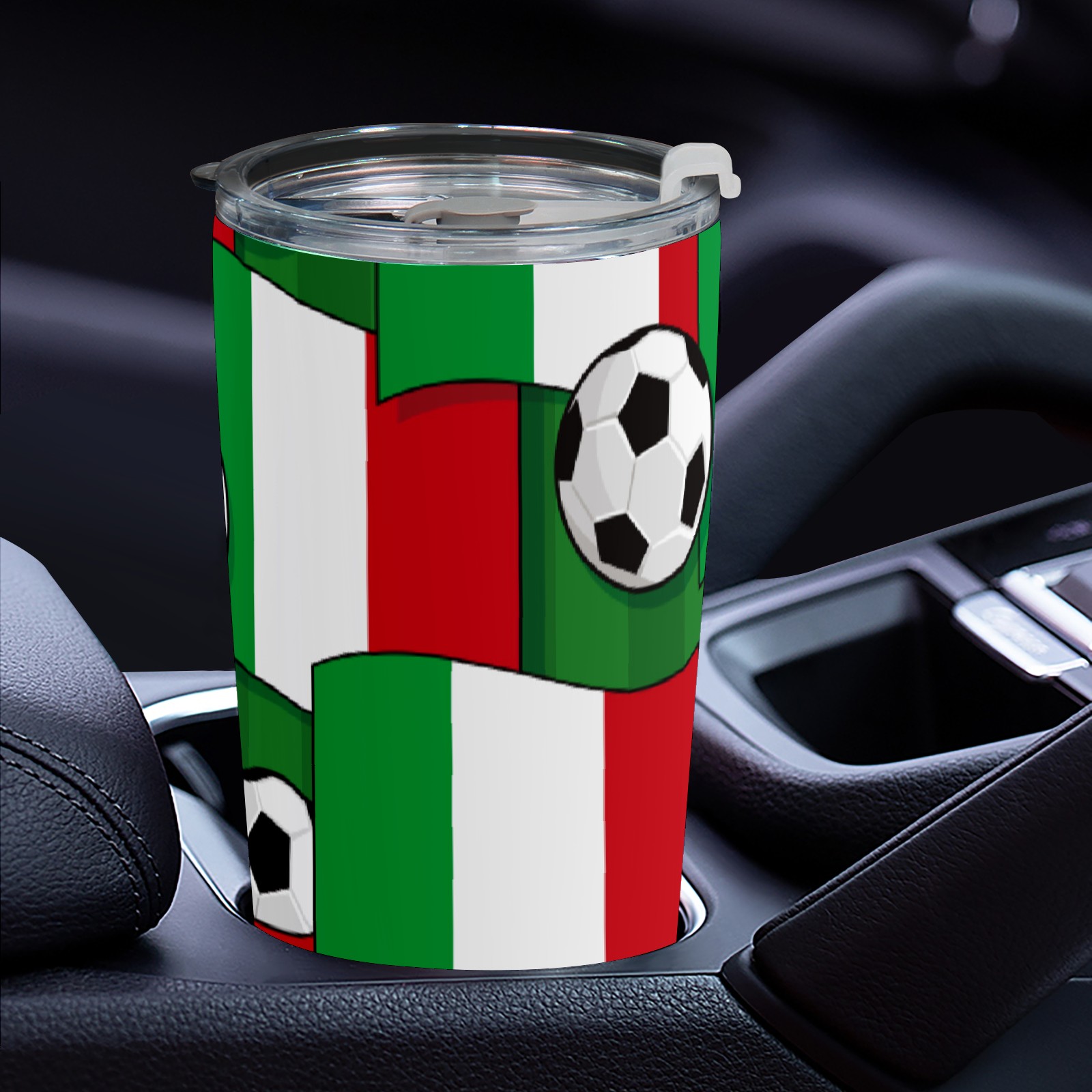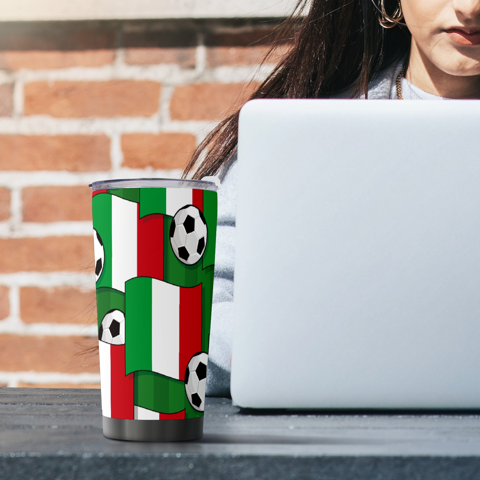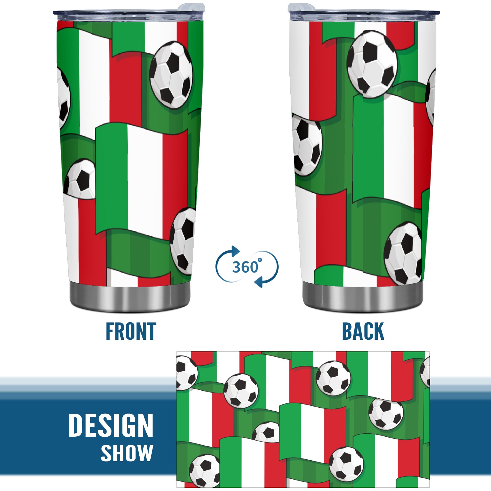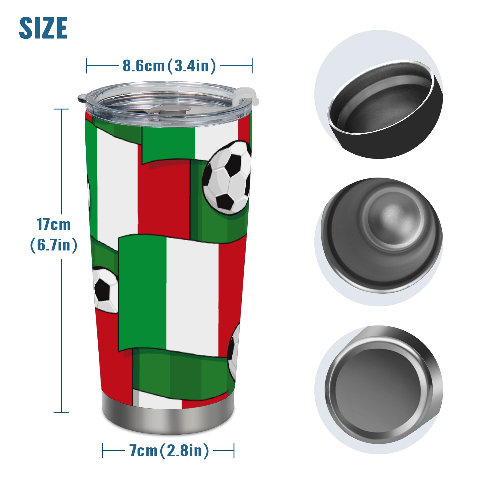 20 oz Tumbler Italian Flag Football Pattern Stainless Steel Insulated Tumbler with Lid Double Wall Vacuum Insulated Travel Mug Cup for Coffee Ice Hot Drinks