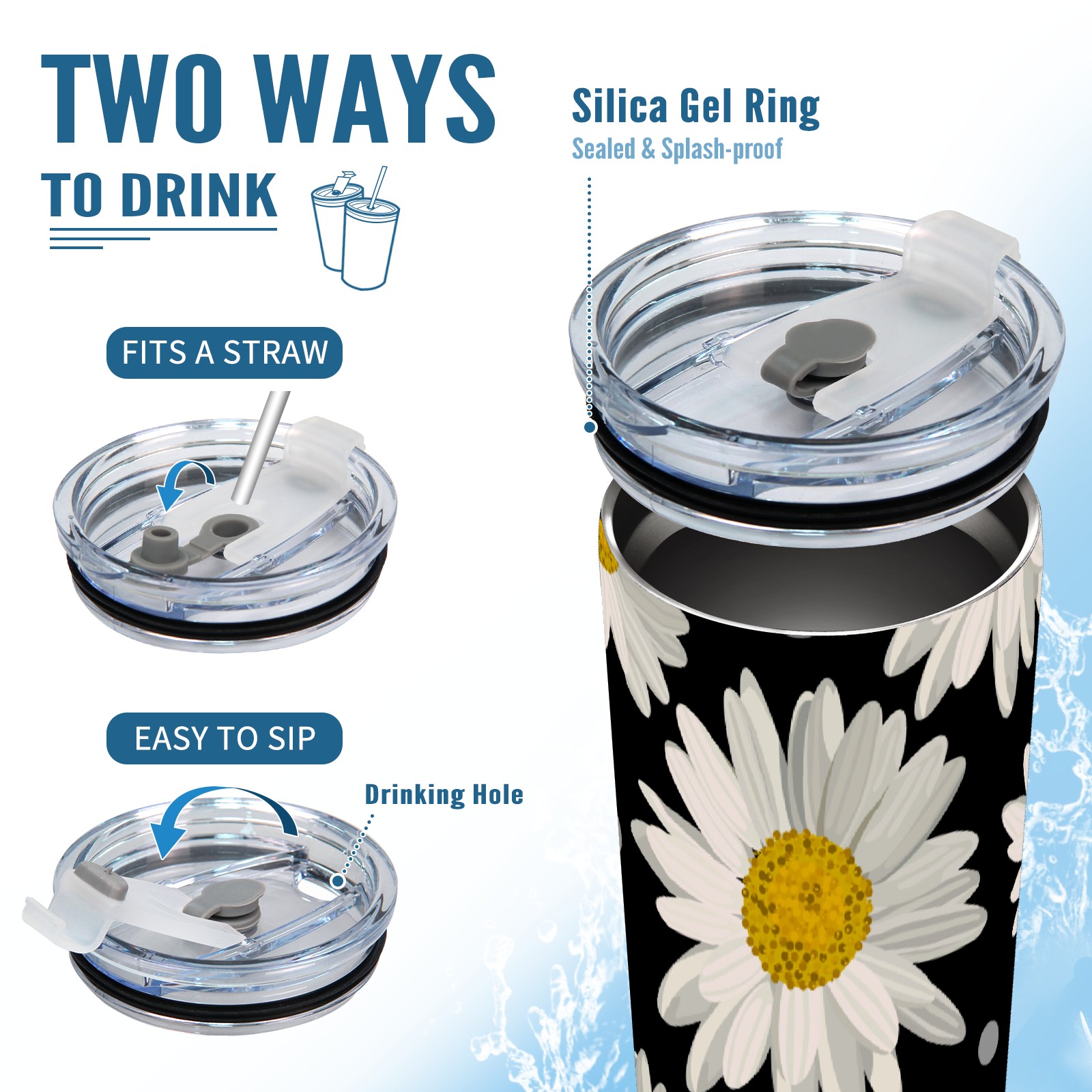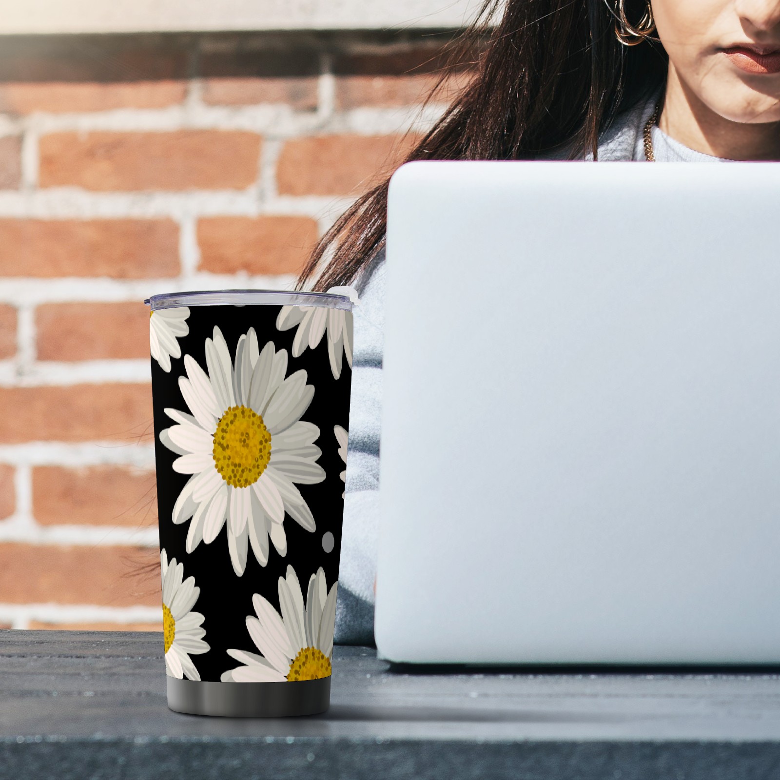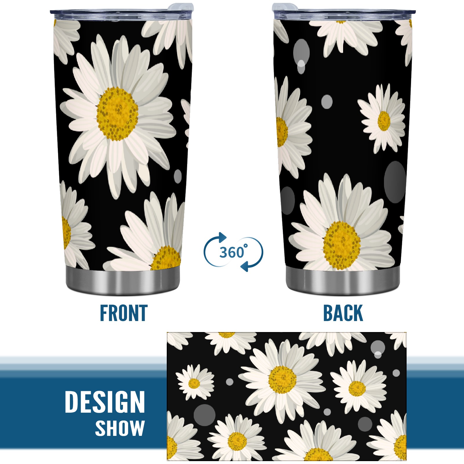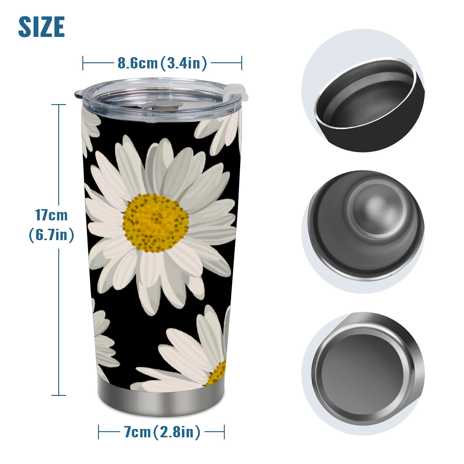 20 oz Tumbler White Daisy Floral Stainless Steel Insulated Tumbler with Lid Double Wall Vacuum Insulated Travel Mug Cup for Coffee Ice Hot Drinks