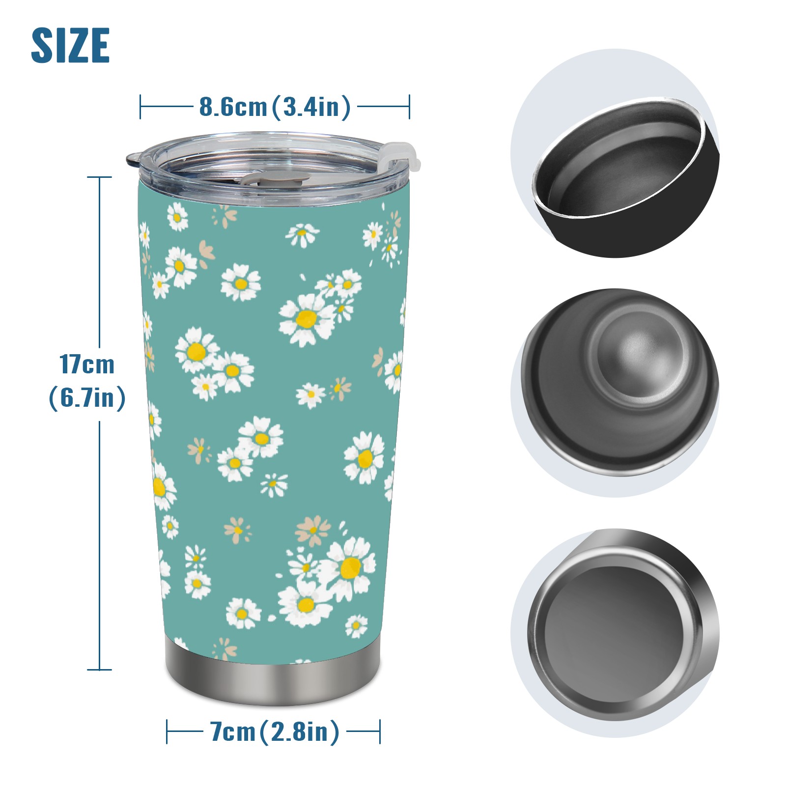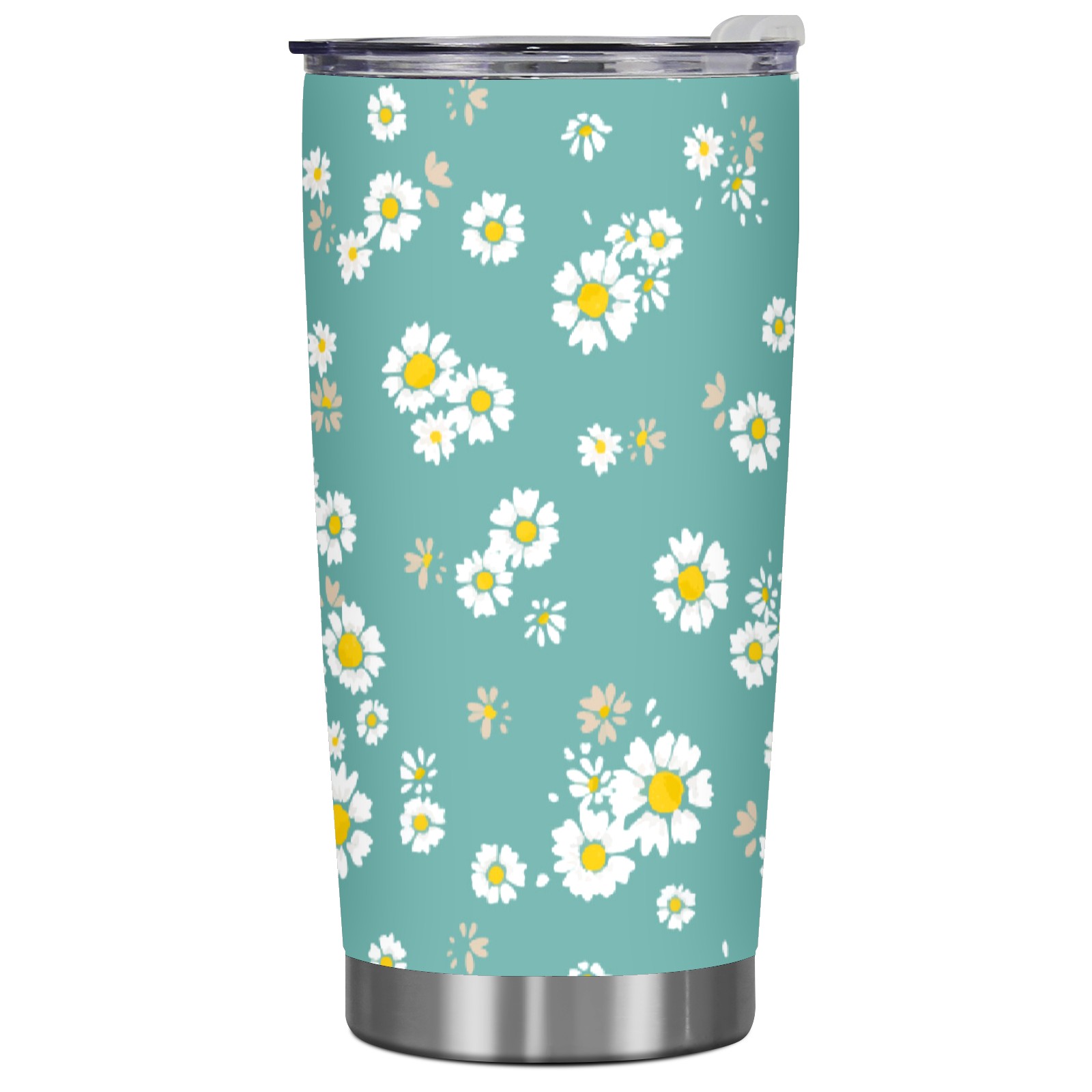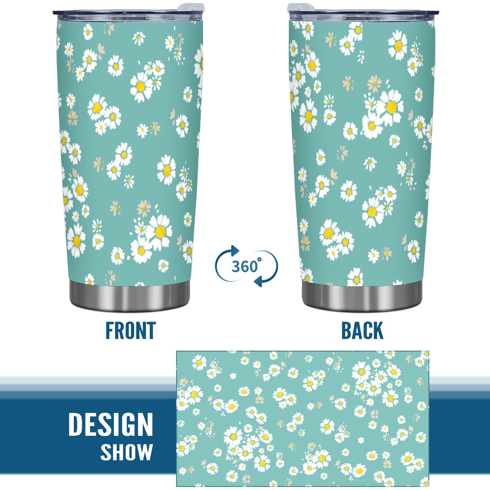 20 oz Tumbler White Daisy Cyan Pattern Stainless Steel Insulated Tumbler with Lid Double Wall Vacuum Insulated Travel Mug Cup for Coffee Ice Hot Drinks