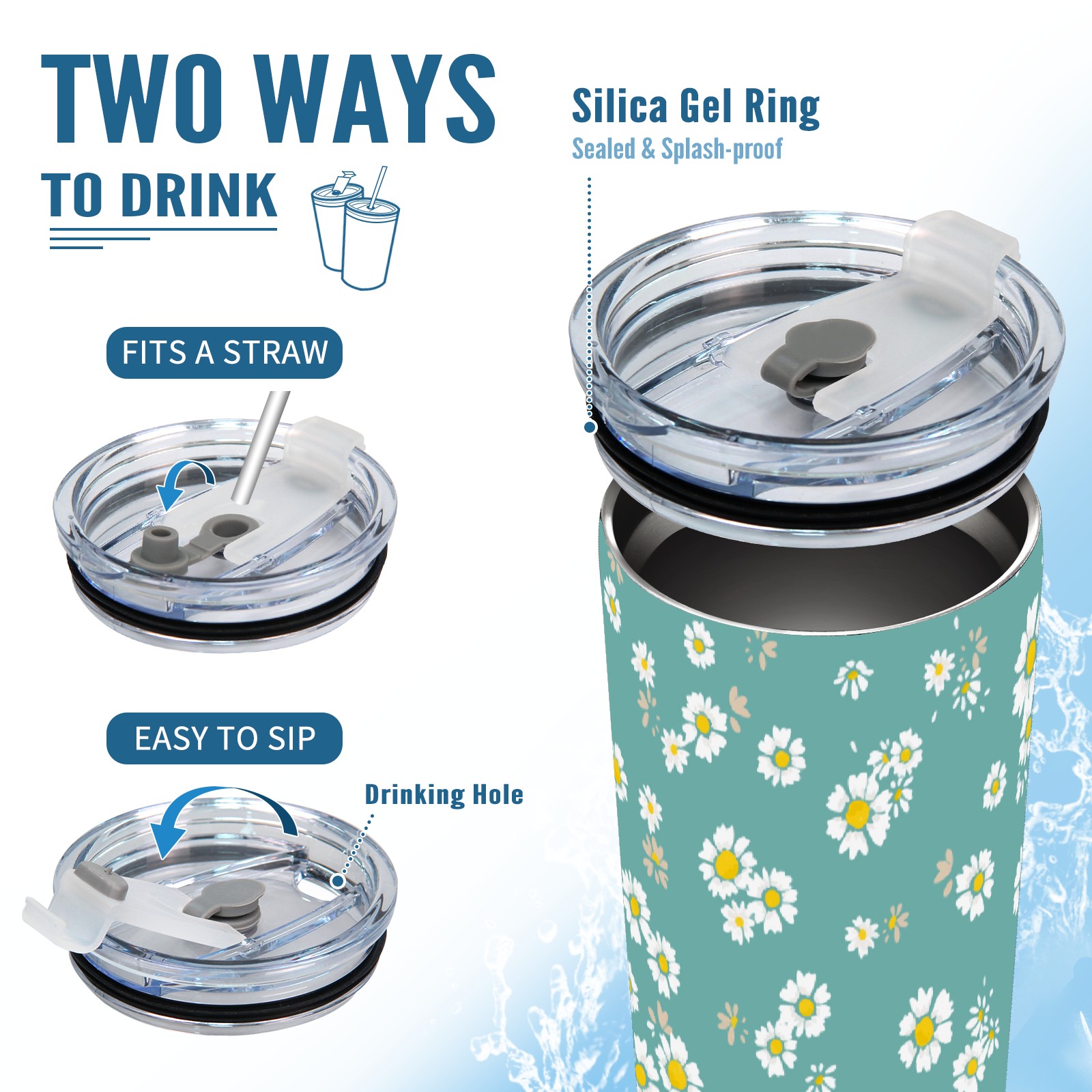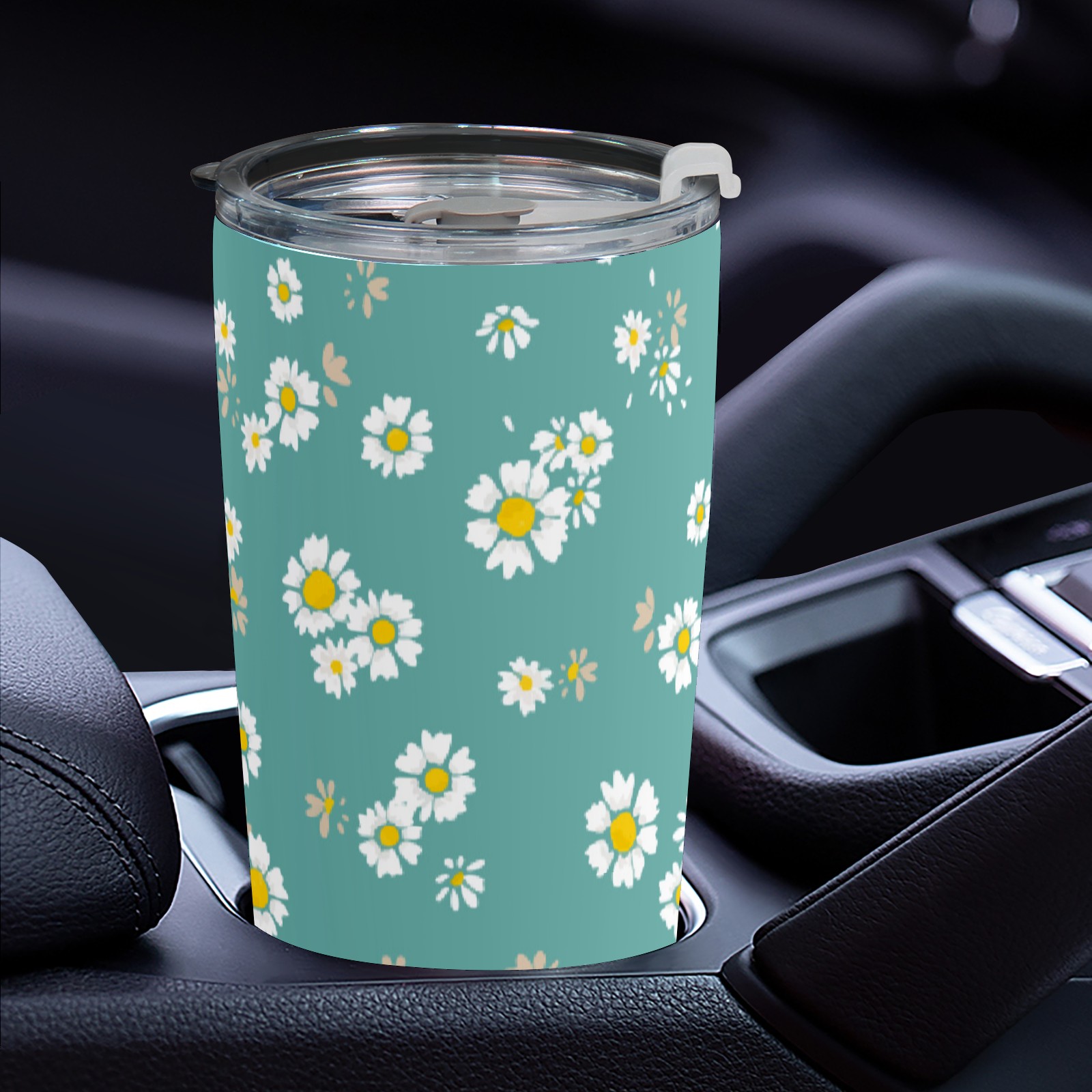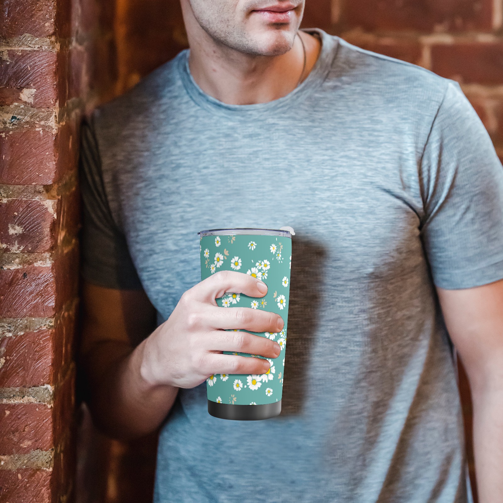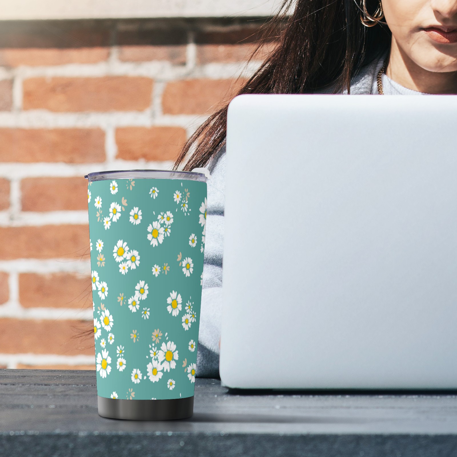 20 oz Tumbler White Daisy Cyan Pattern Stainless Steel Insulated Tumbler with Lid Double Wall Vacuum Insulated Travel Mug Cup for Coffee Ice Hot Drinks