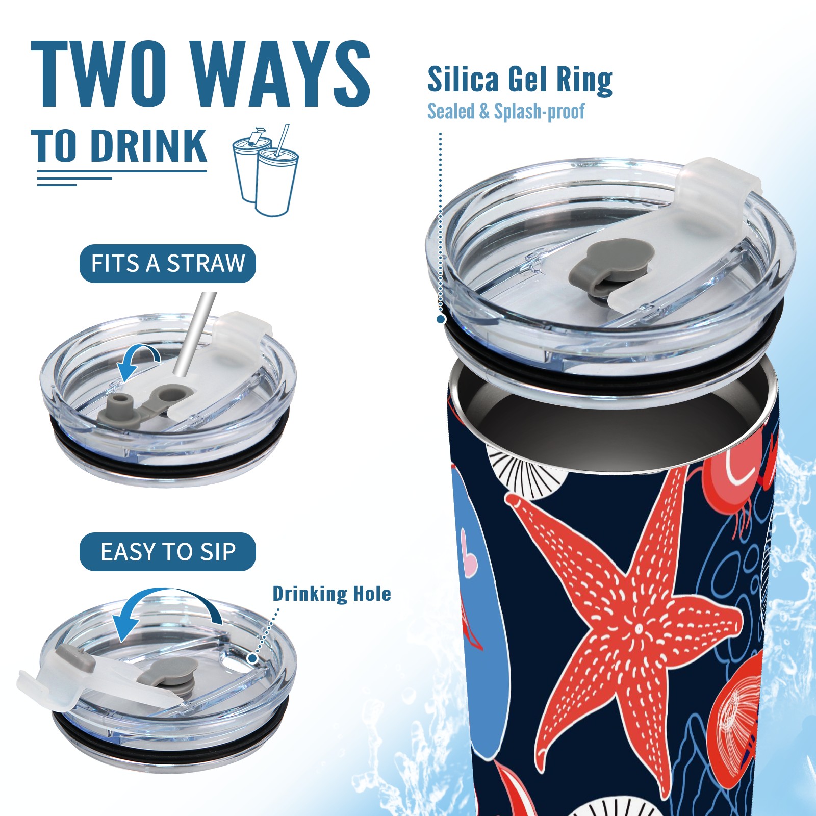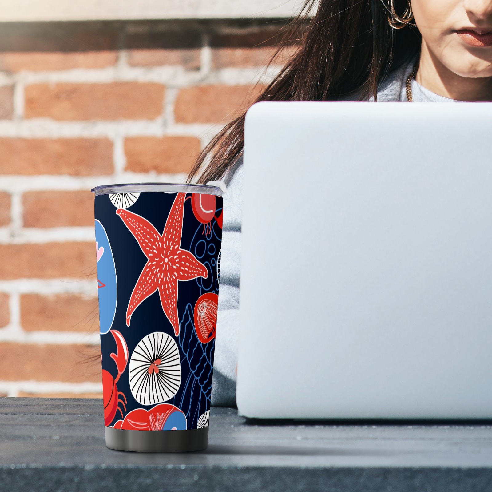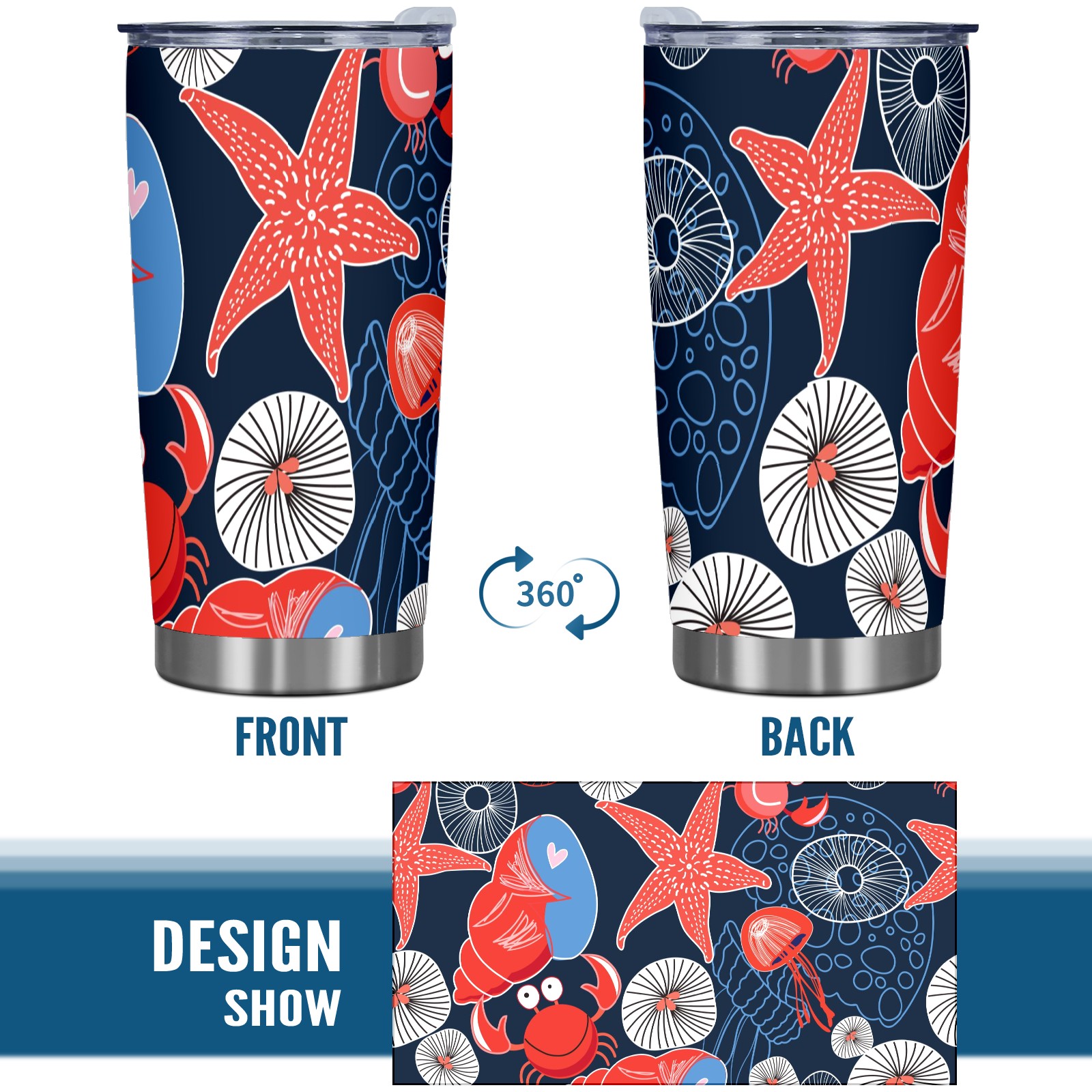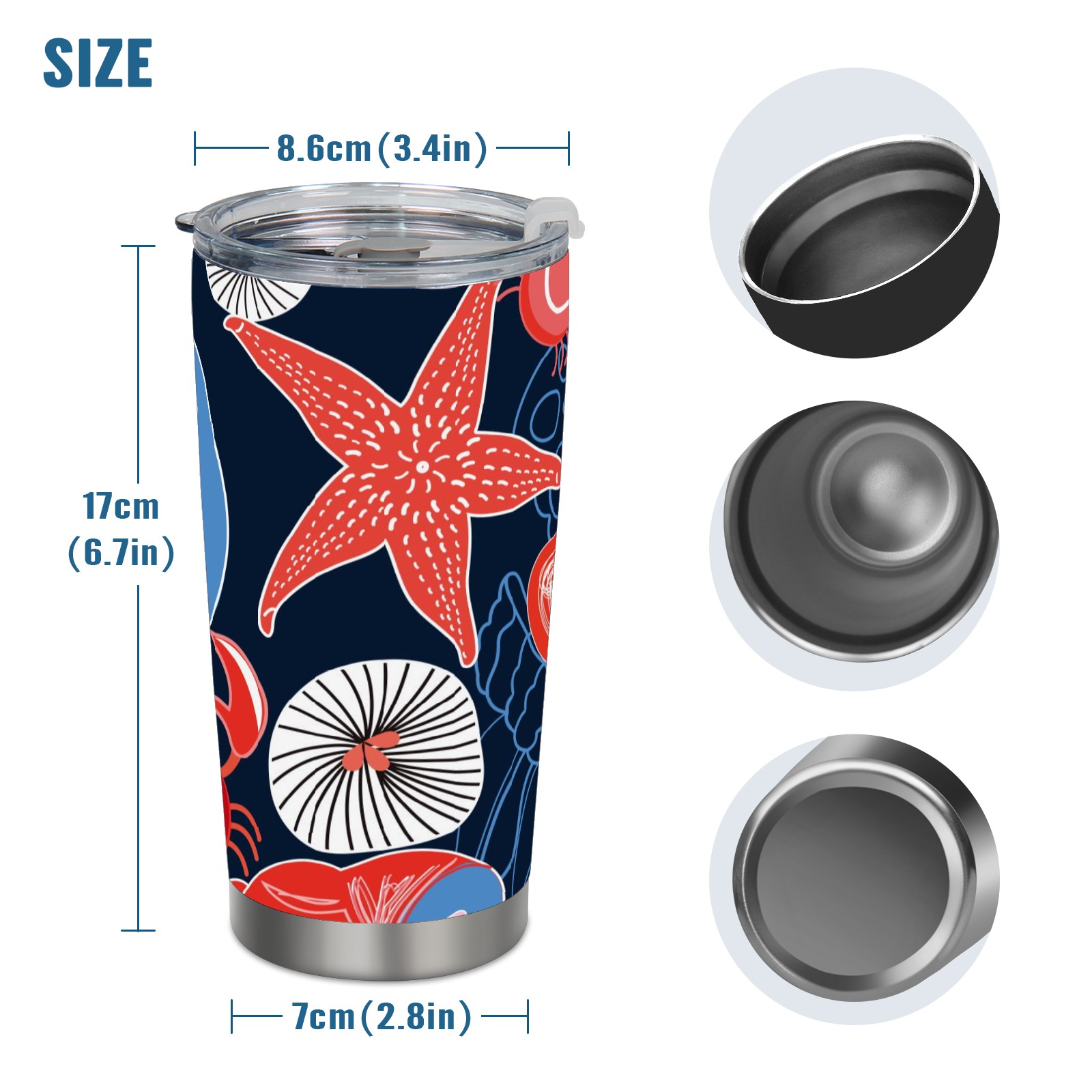 20 oz Tumbler Ocean Biology Starfish Crab Stainless Steel Insulated Tumbler with Lid Double Wall Vacuum Insulated Travel Mug Cup for Coffee Ice Hot Drinks