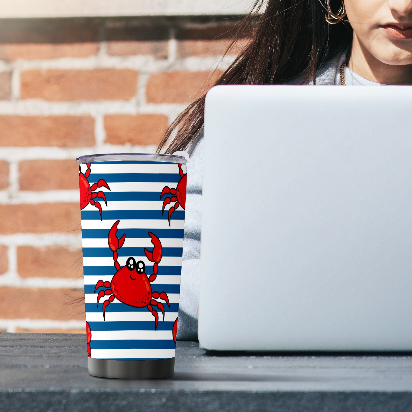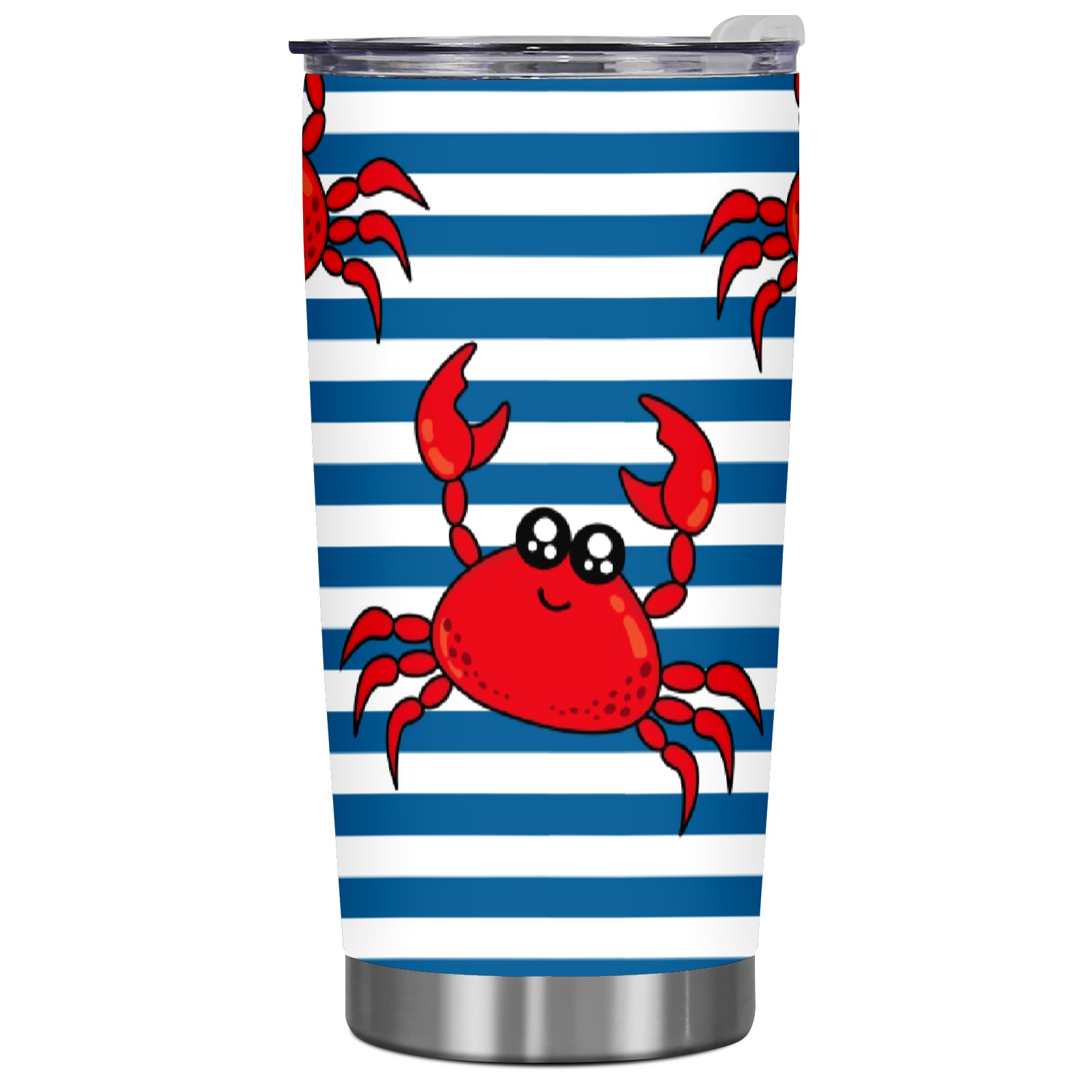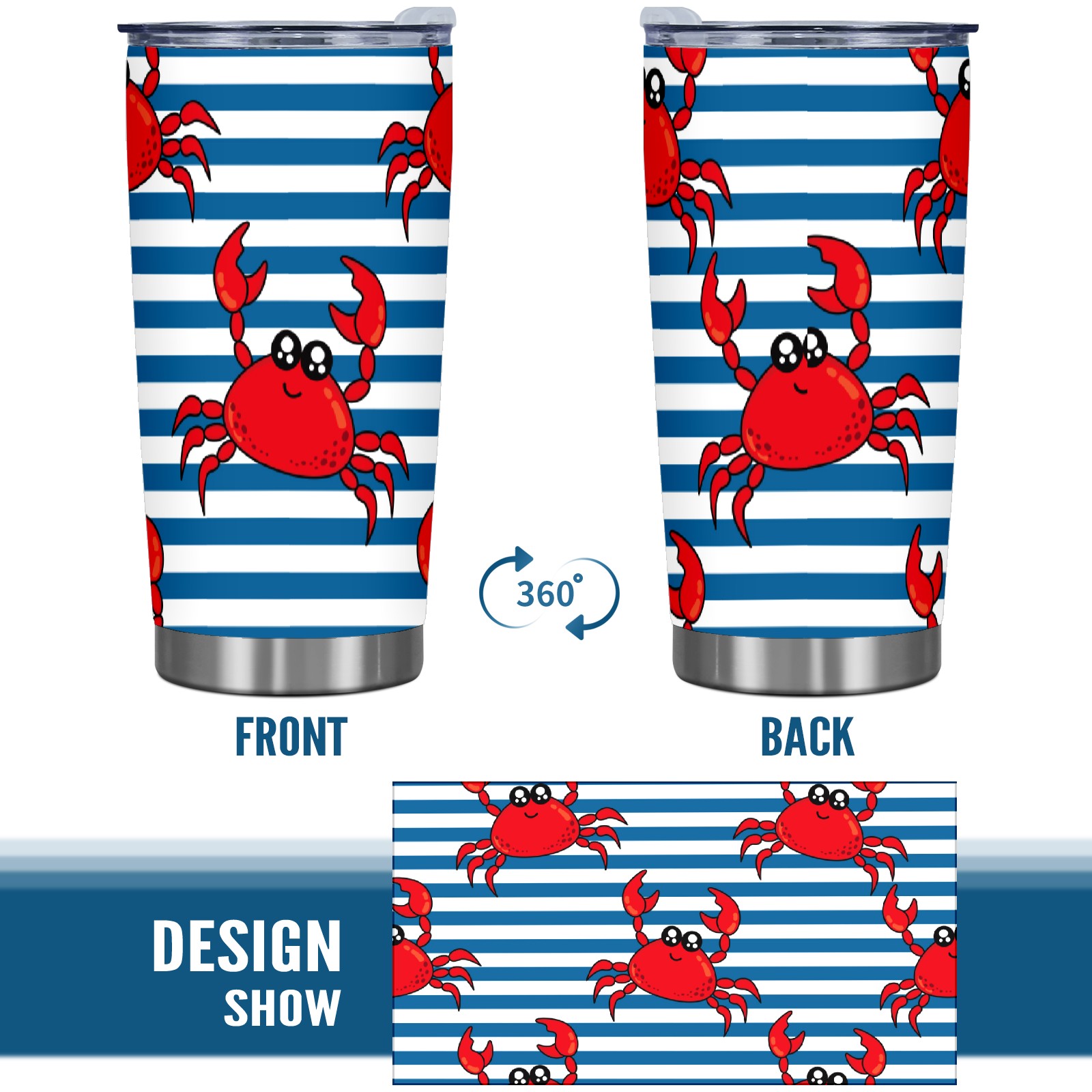 20 oz Tumbler Crab Blue Stripe Stainless Steel Insulated Tumbler with Lid Double Wall Vacuum Insulated Travel Mug Cup for Coffee Ice Hot Drinks