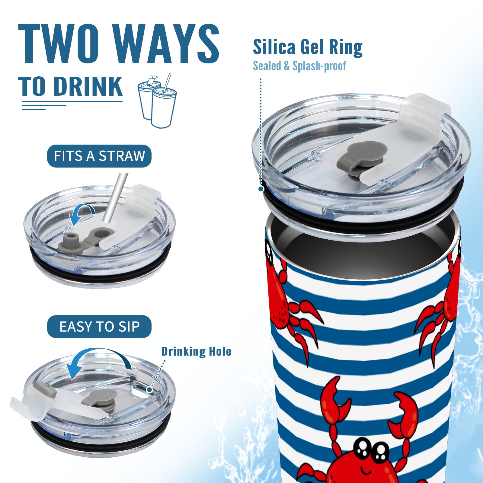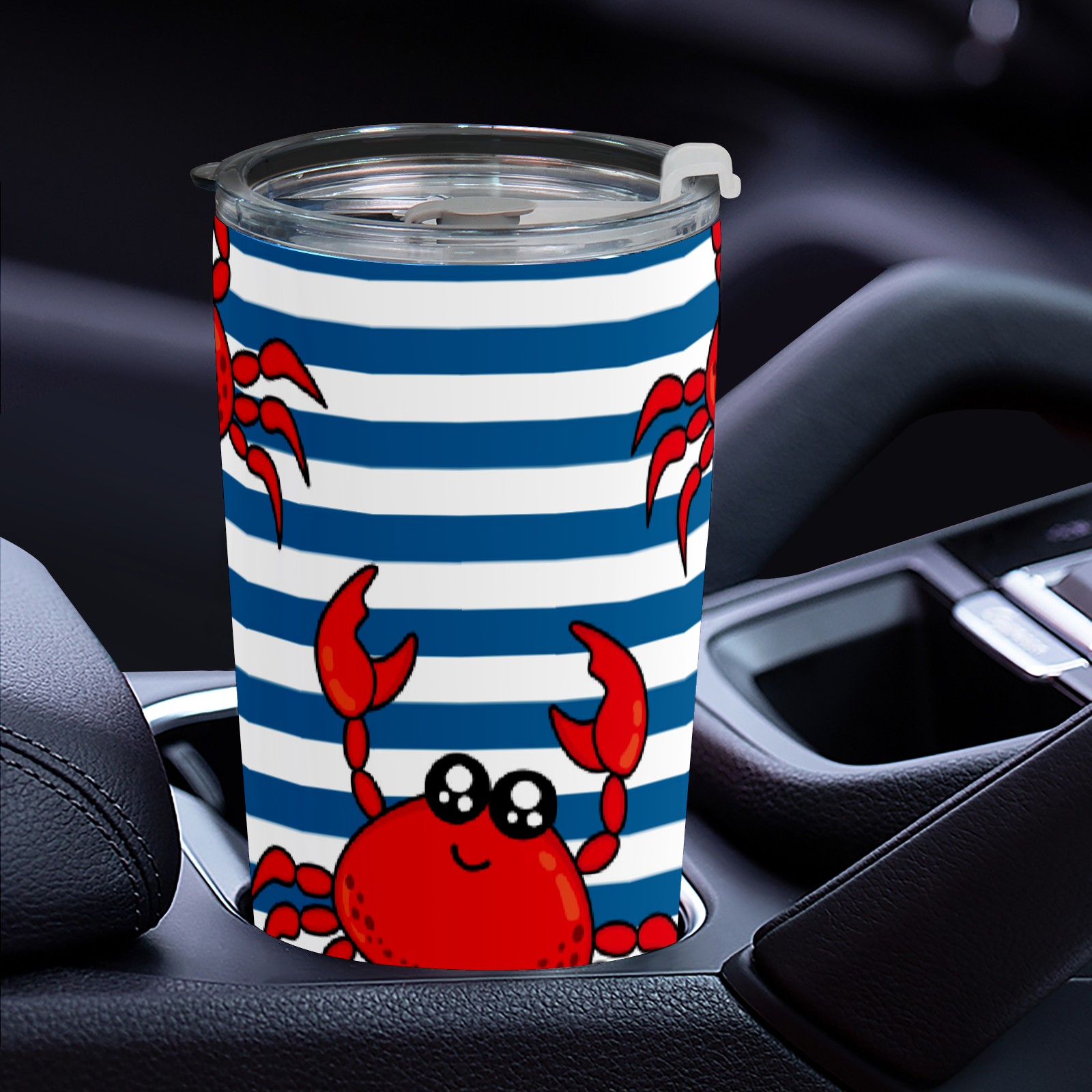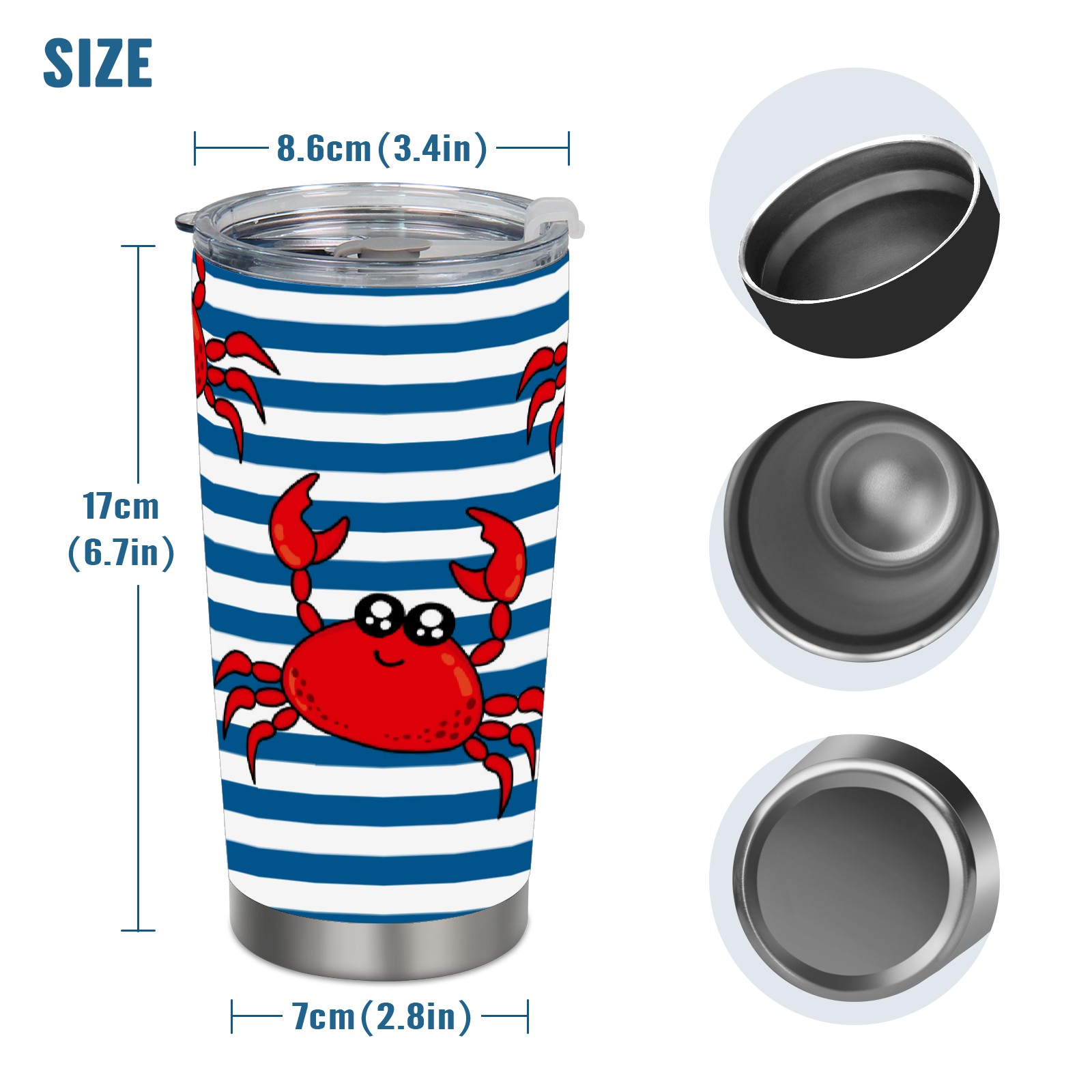 20 oz Tumbler Crab Blue Stripe Stainless Steel Insulated Tumbler with Lid Double Wall Vacuum Insulated Travel Mug Cup for Coffee Ice Hot Drinks
