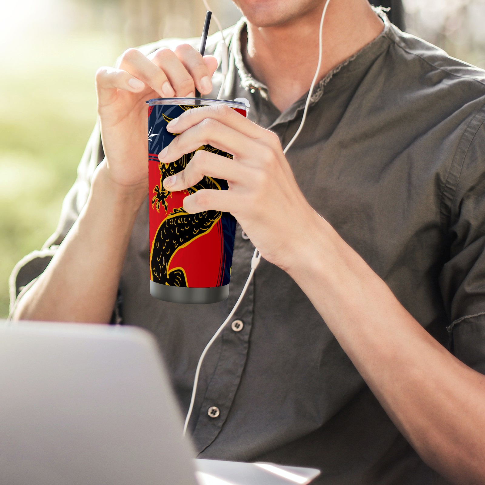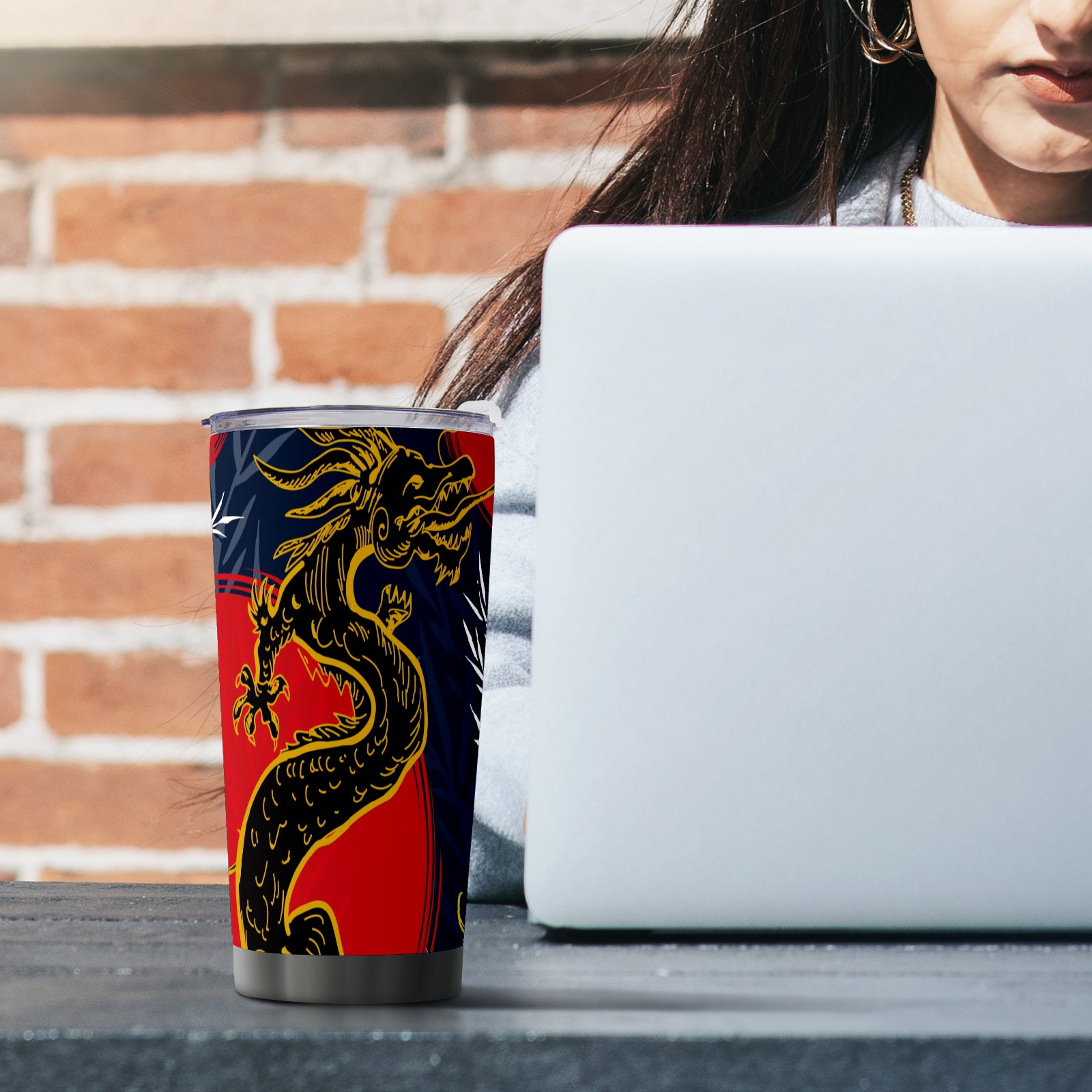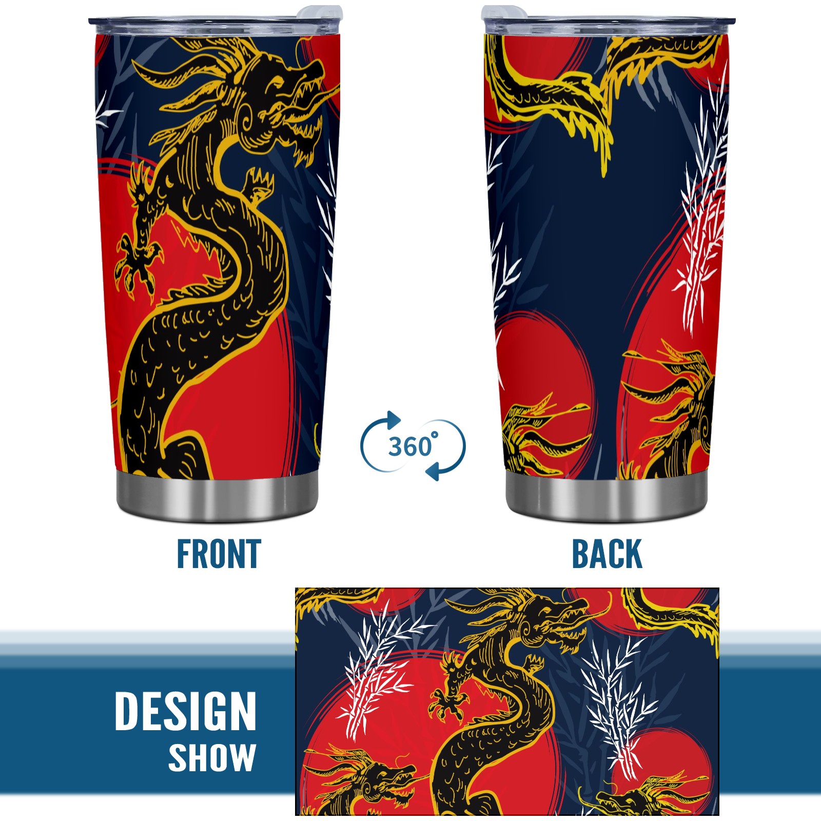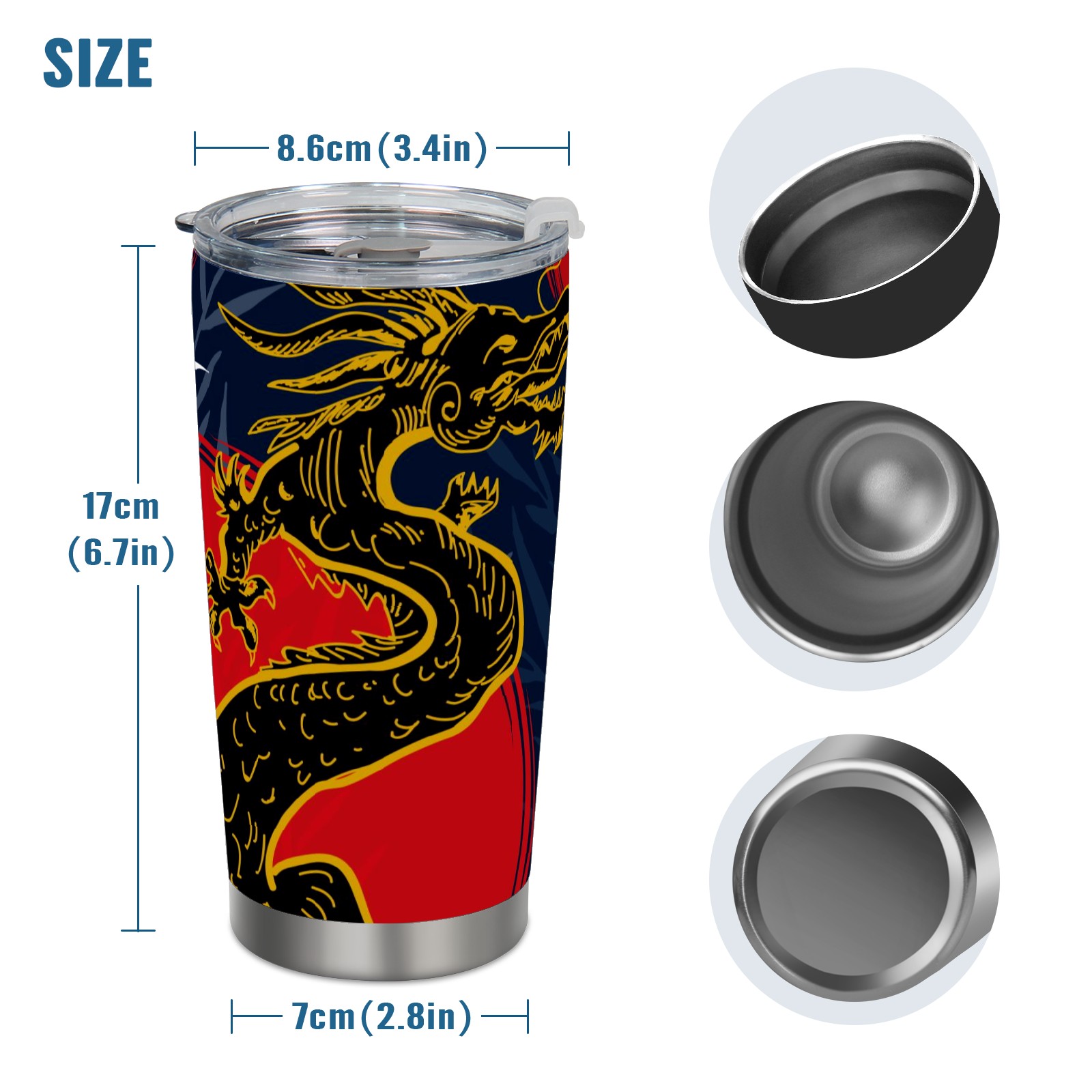 20 oz Tumbler Chinese Dragon Red Moon Stainless Steel Insulated Tumbler with Lid Double Wall Vacuum Insulated Travel Mug Cup for Coffee Ice Hot Drinks