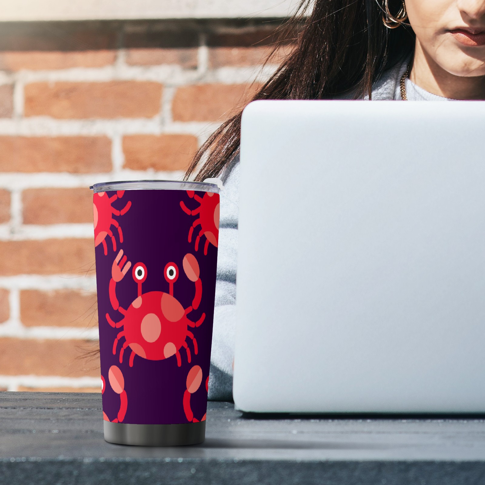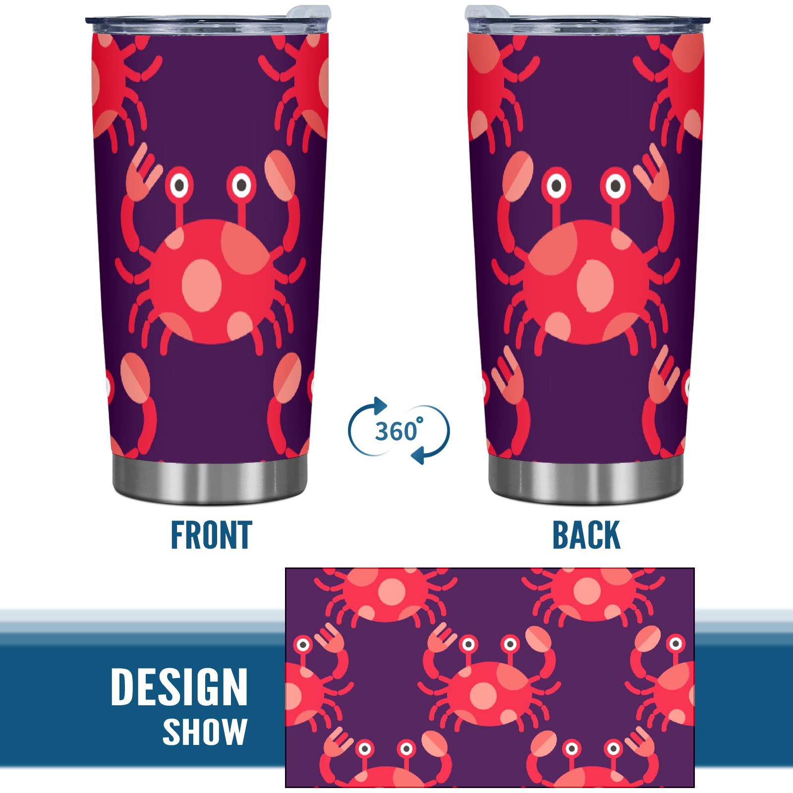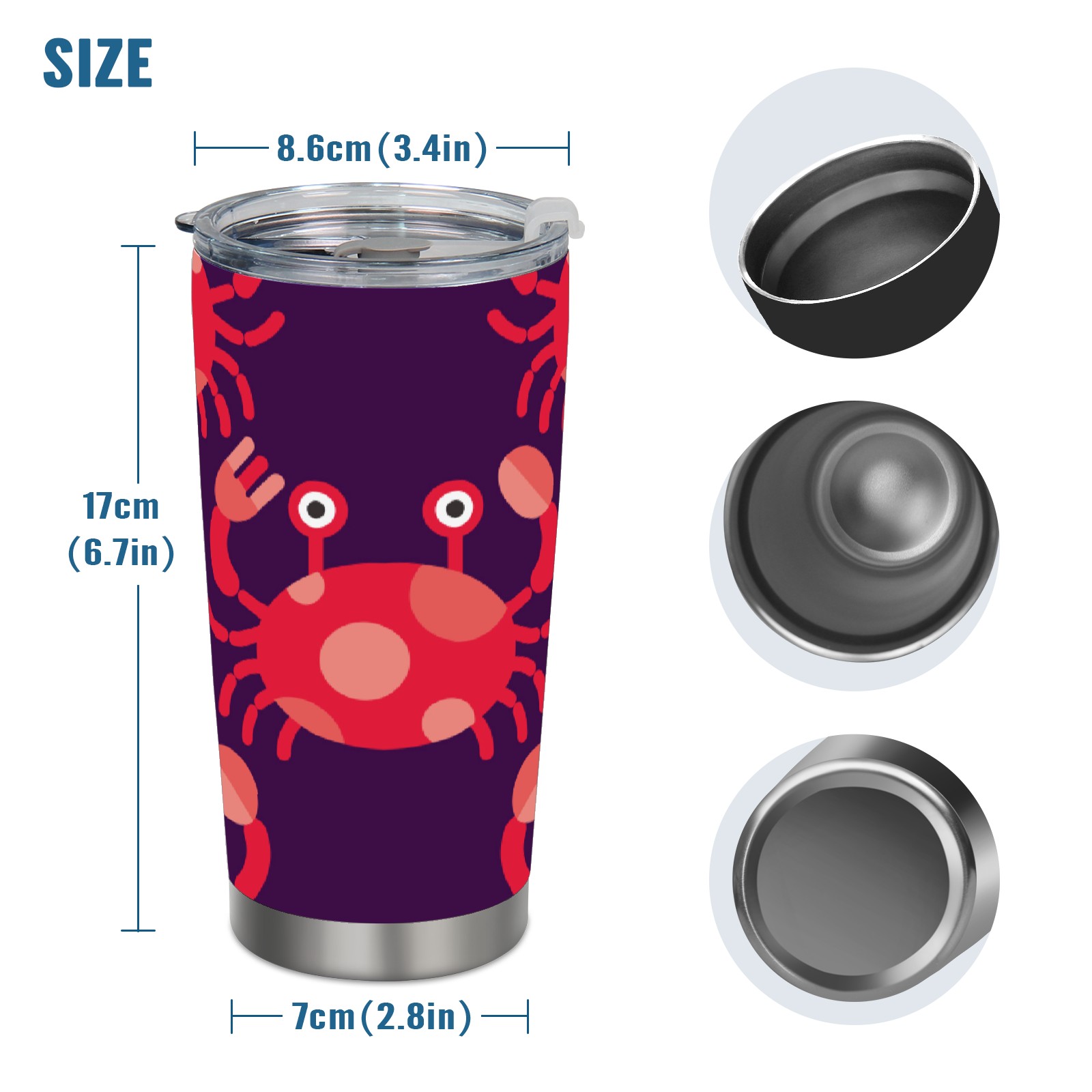 20 oz Tumbler Cartoon Red Crab Stainless Steel Insulated Tumbler with Lid Double Wall Vacuum Insulated Travel Mug Cup for Coffee Ice Hot Drinks