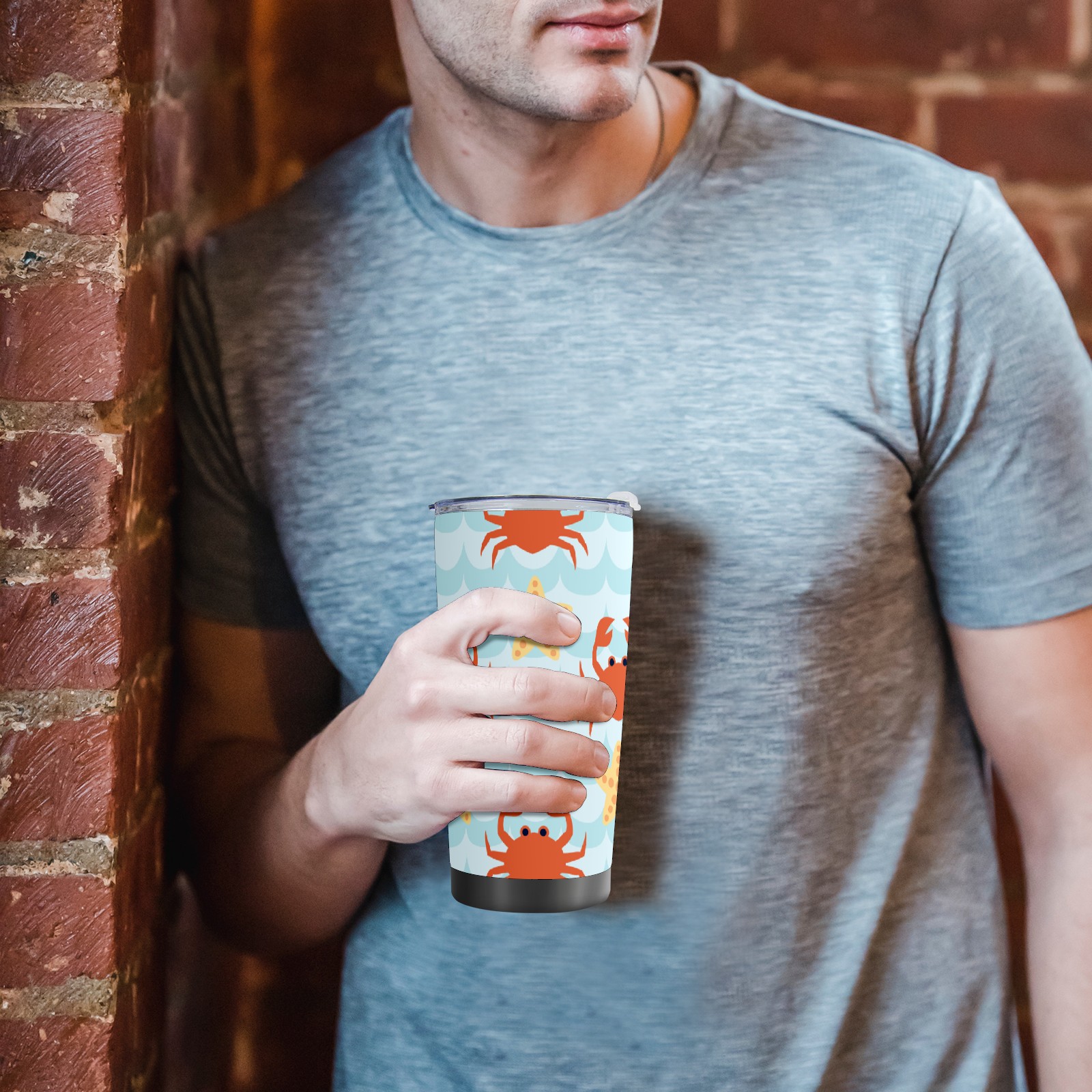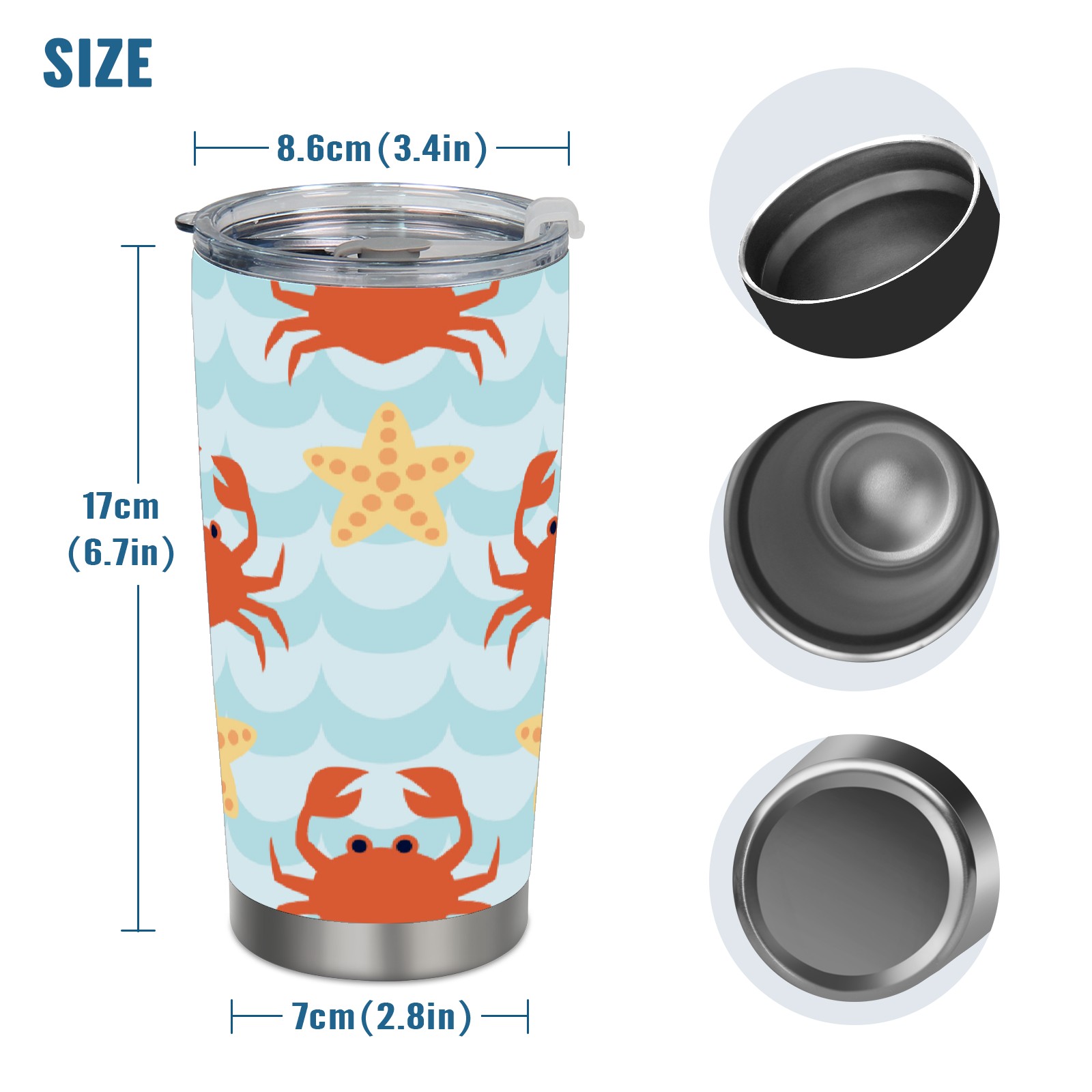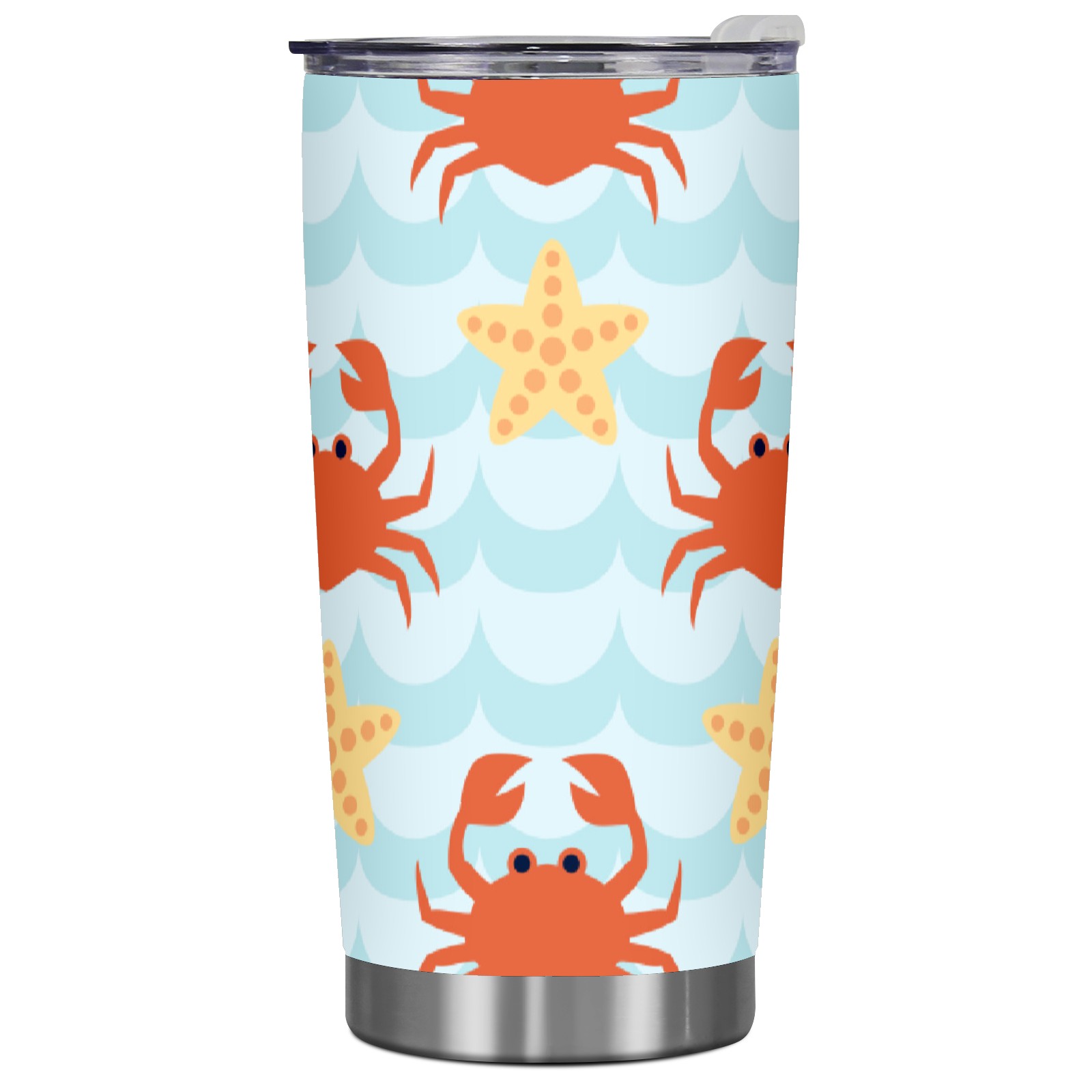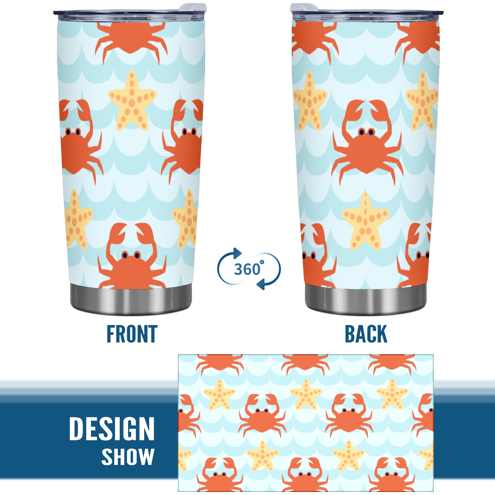 20 oz Tumbler Crab Starfish Sea Wave Stainless Steel Insulated Tumbler with Lid Double Wall Vacuum Insulated Travel Mug Cup for Coffee Ice Hot Drinks