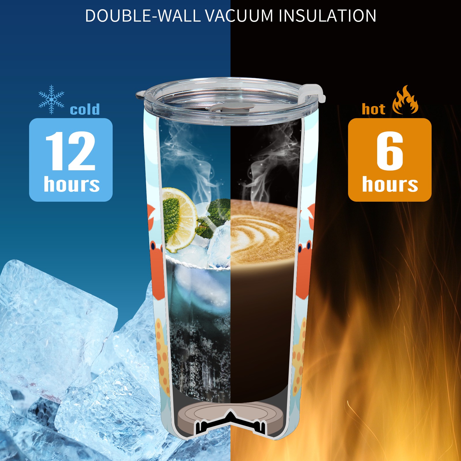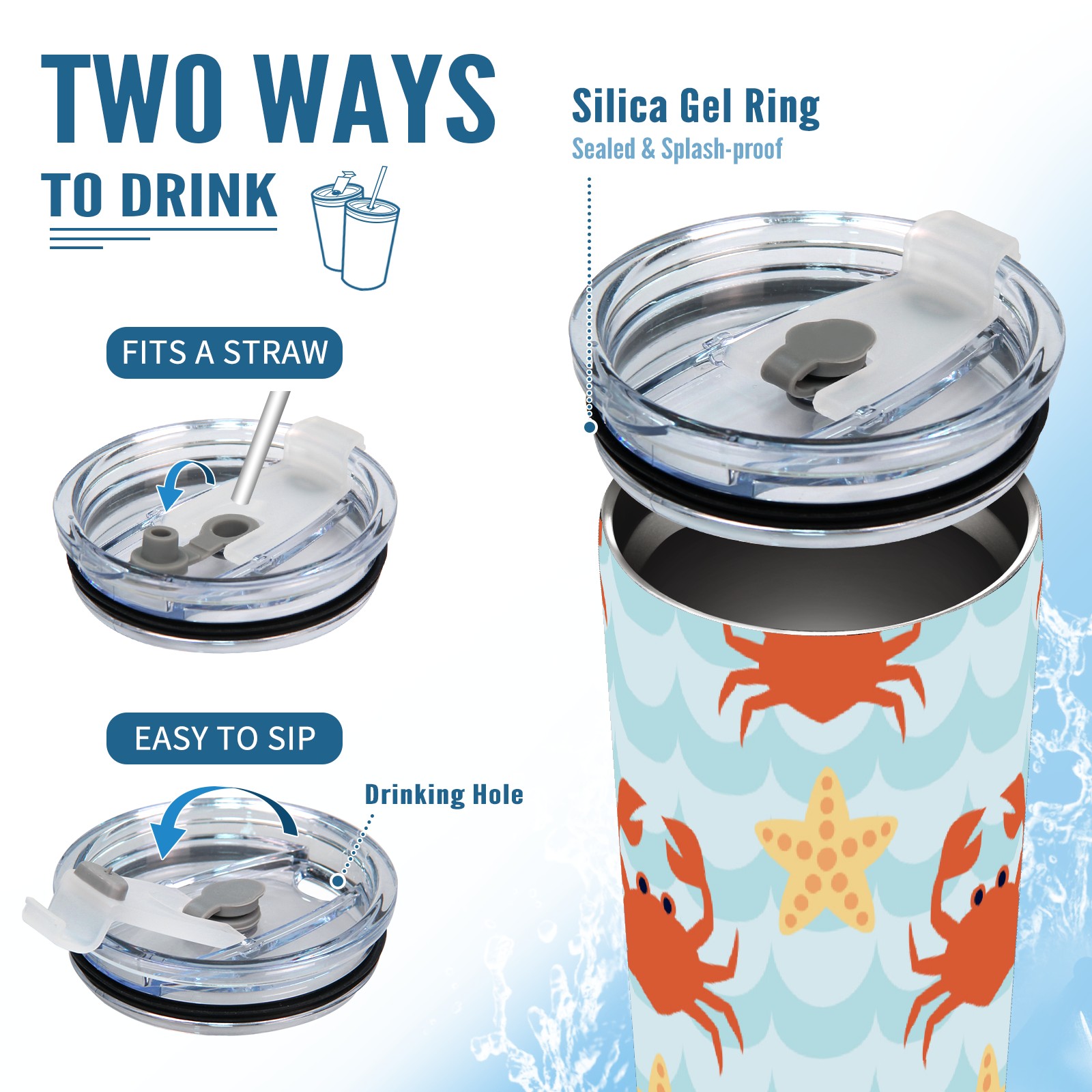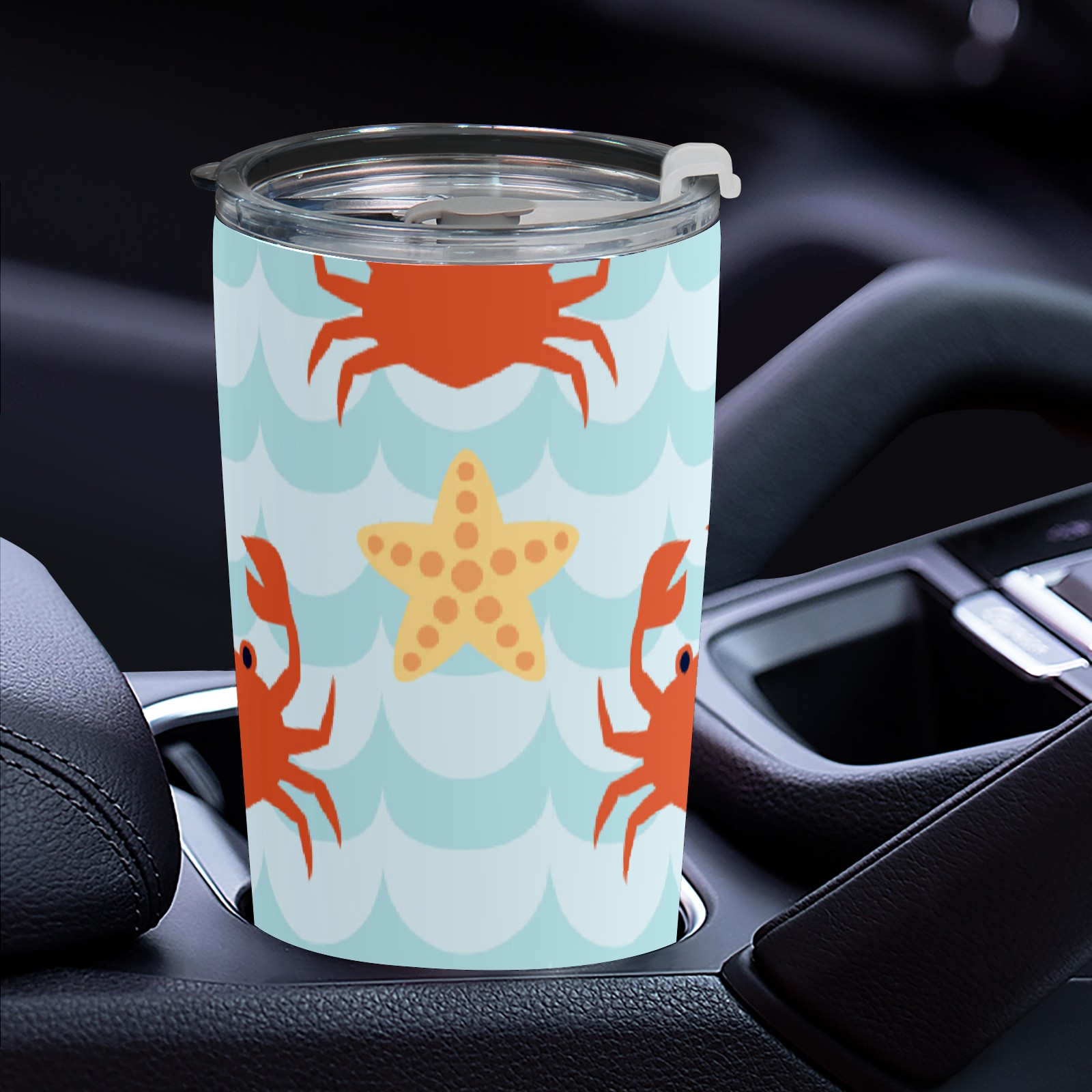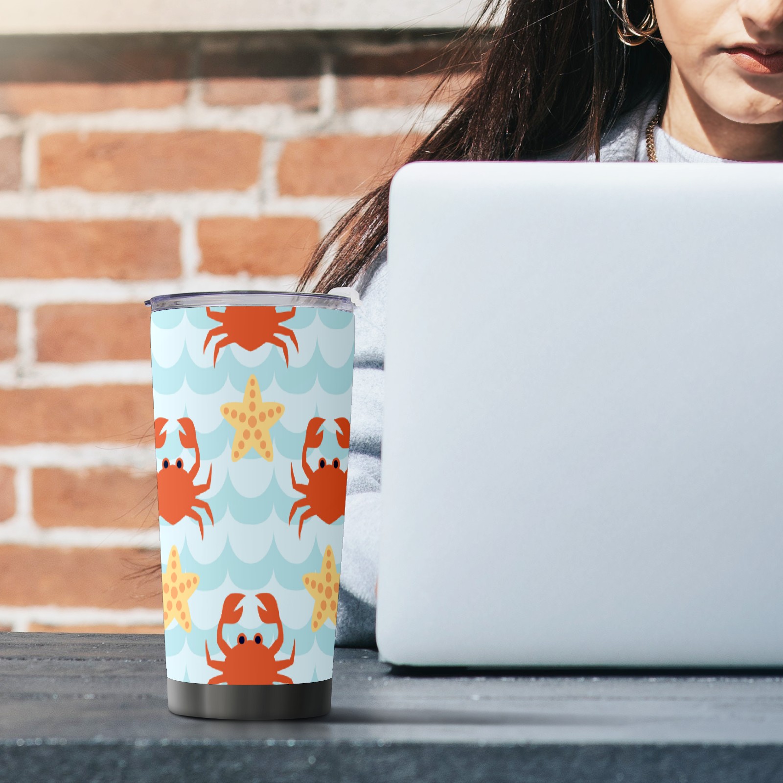 20 oz Tumbler Crab Starfish Sea Wave Stainless Steel Insulated Tumbler with Lid Double Wall Vacuum Insulated Travel Mug Cup for Coffee Ice Hot Drinks