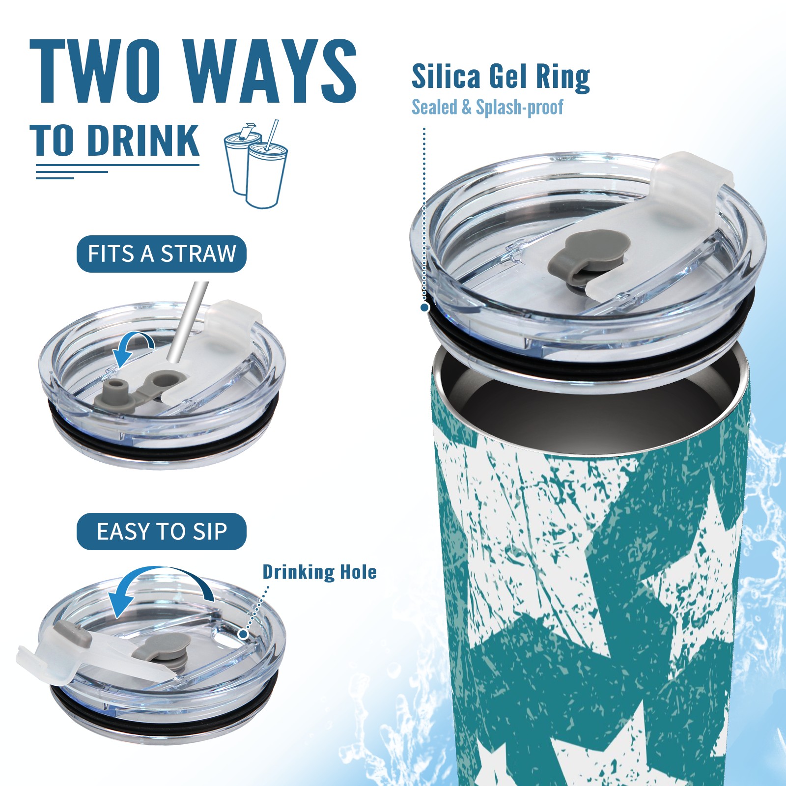 <p>20 Ounce Stainless Steel Vacuum Insulated Tumbler Travel Cup</p> <p>Our stainless steel tumbler uses vacuum insulation technology, effectively keeping your beverages hot or cold for hours</p> <p>The travel tumbler is made from food-grade 304 stainless steel, with a smooth interior that is easy to clean</p> <p>The insulated tumbler features a leak-proof design, ensuring no spills even on bumpy roads, and is suitable for various car cup holders</p> <p>The travel mugs tumblers suitable for all occasions, at home, parties, school, office, travel, beach, or outdoor activities</p>