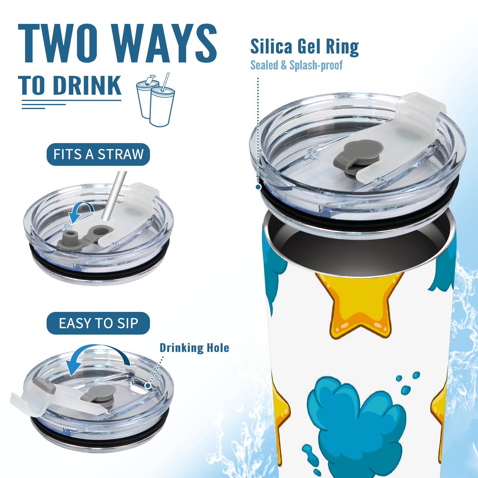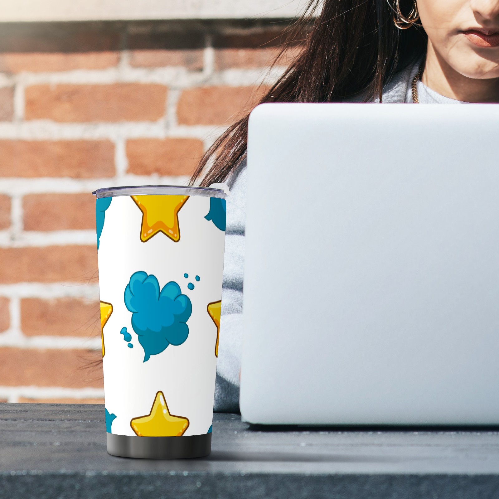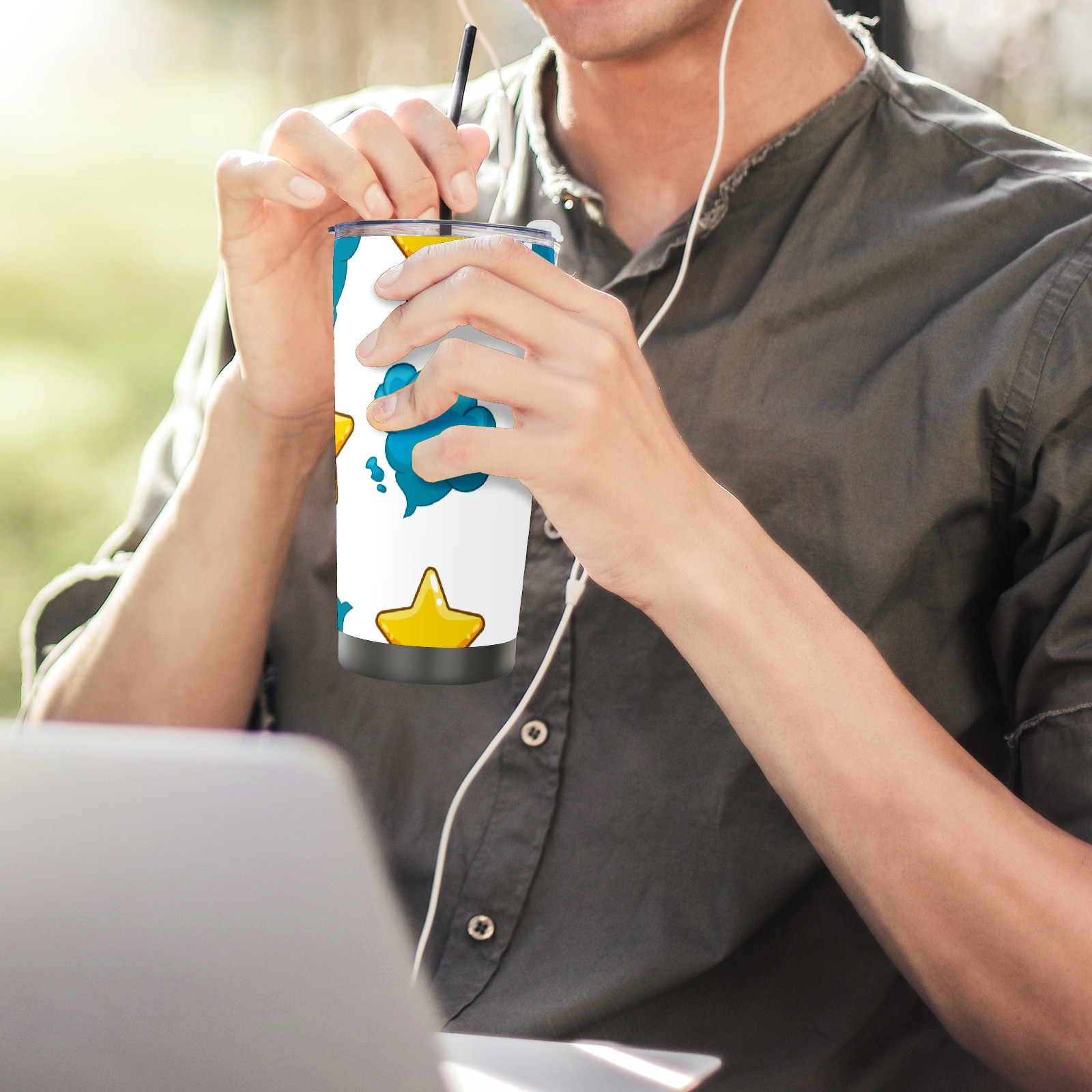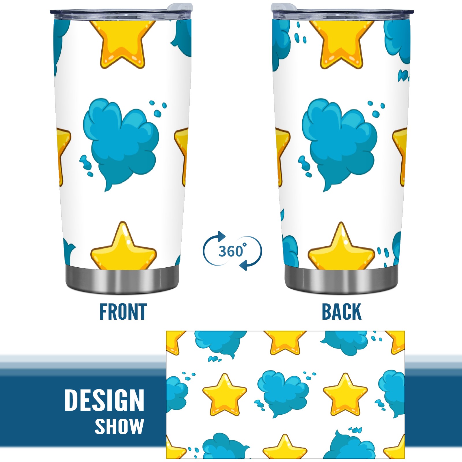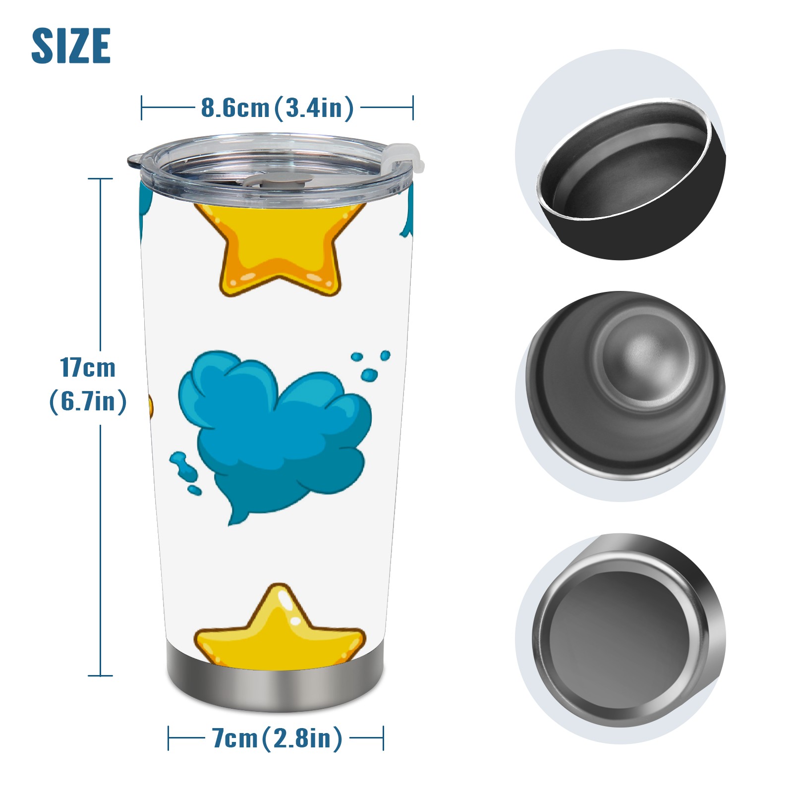 20 oz Tumbler Yellow Star Blue Cloud Stainless Steel Insulated Tumbler with Lid Double Wall Vacuum Insulated Travel Mug Cup for Coffee Ice Hot Drinks