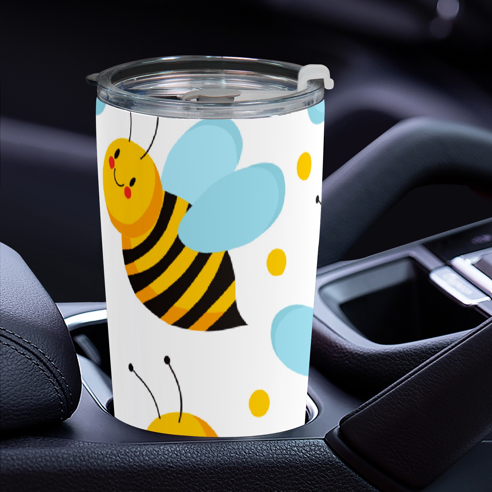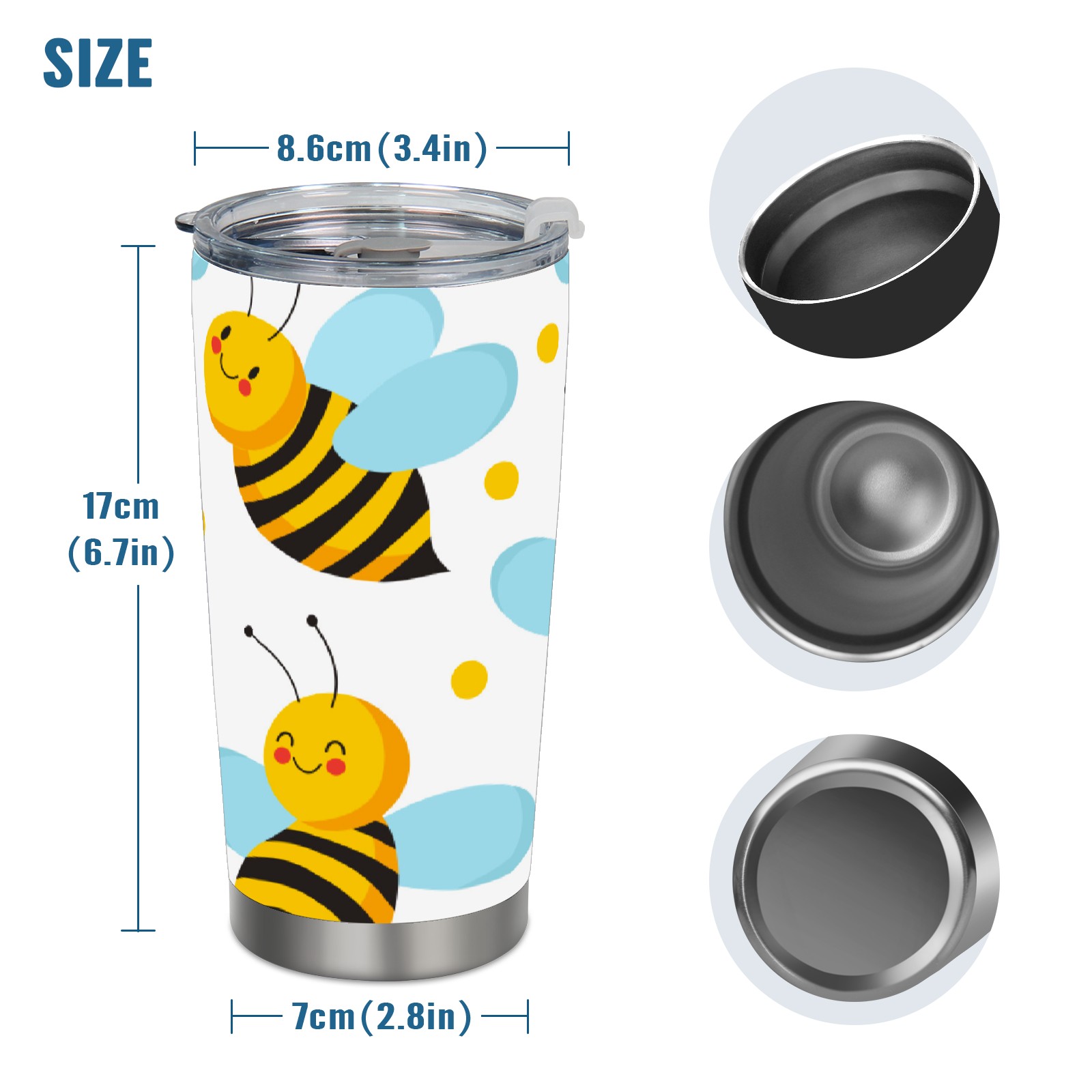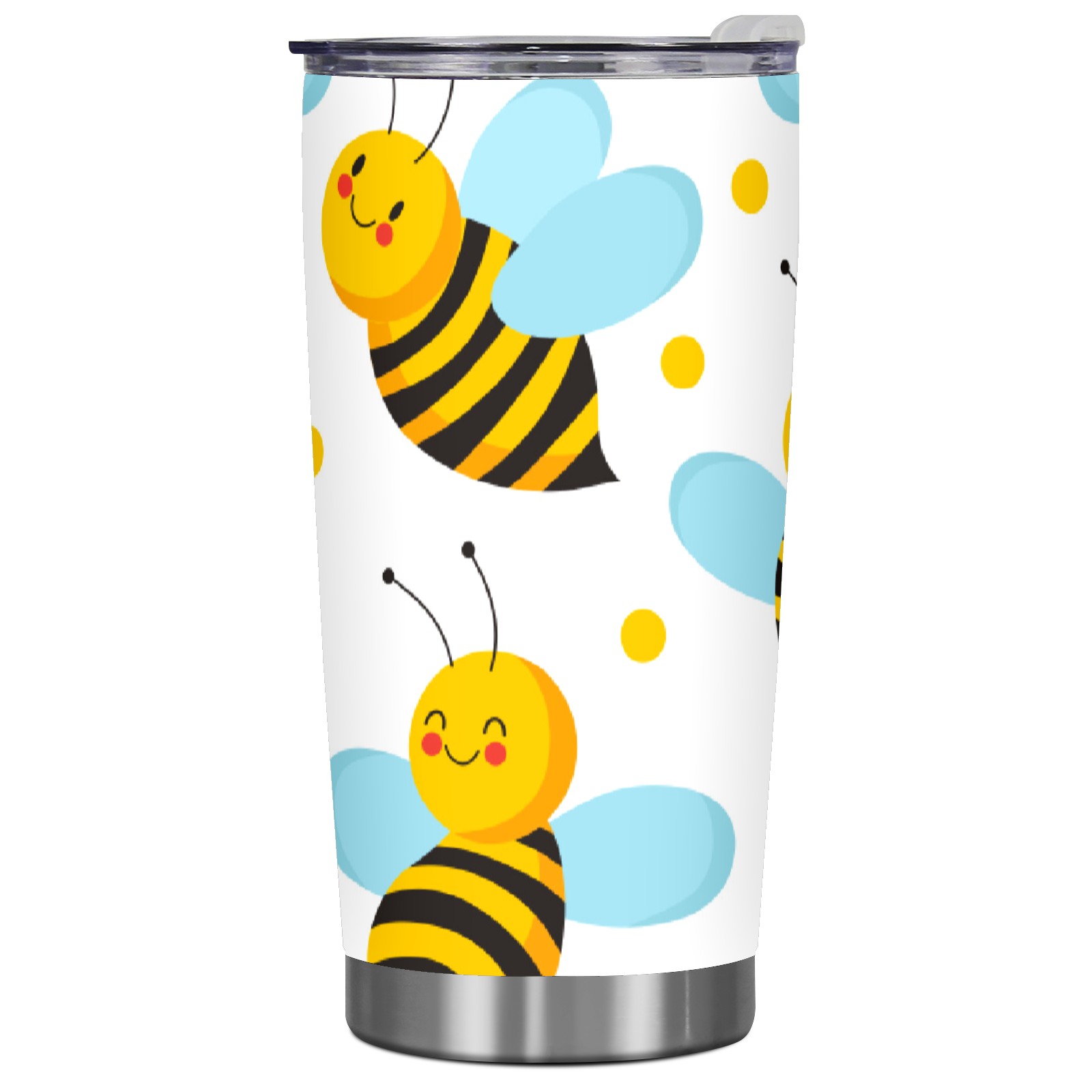 20 oz Tumbler Cute Yellow Bee Blue Wings Stainless Steel Insulated Tumbler with Lid Double Wall Vacuum Insulated Travel Mug Cup for Coffee Ice Hot Drinks