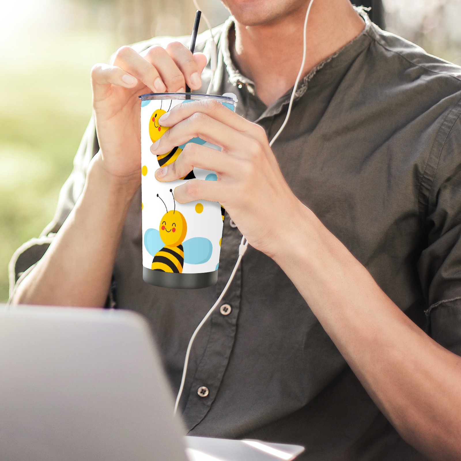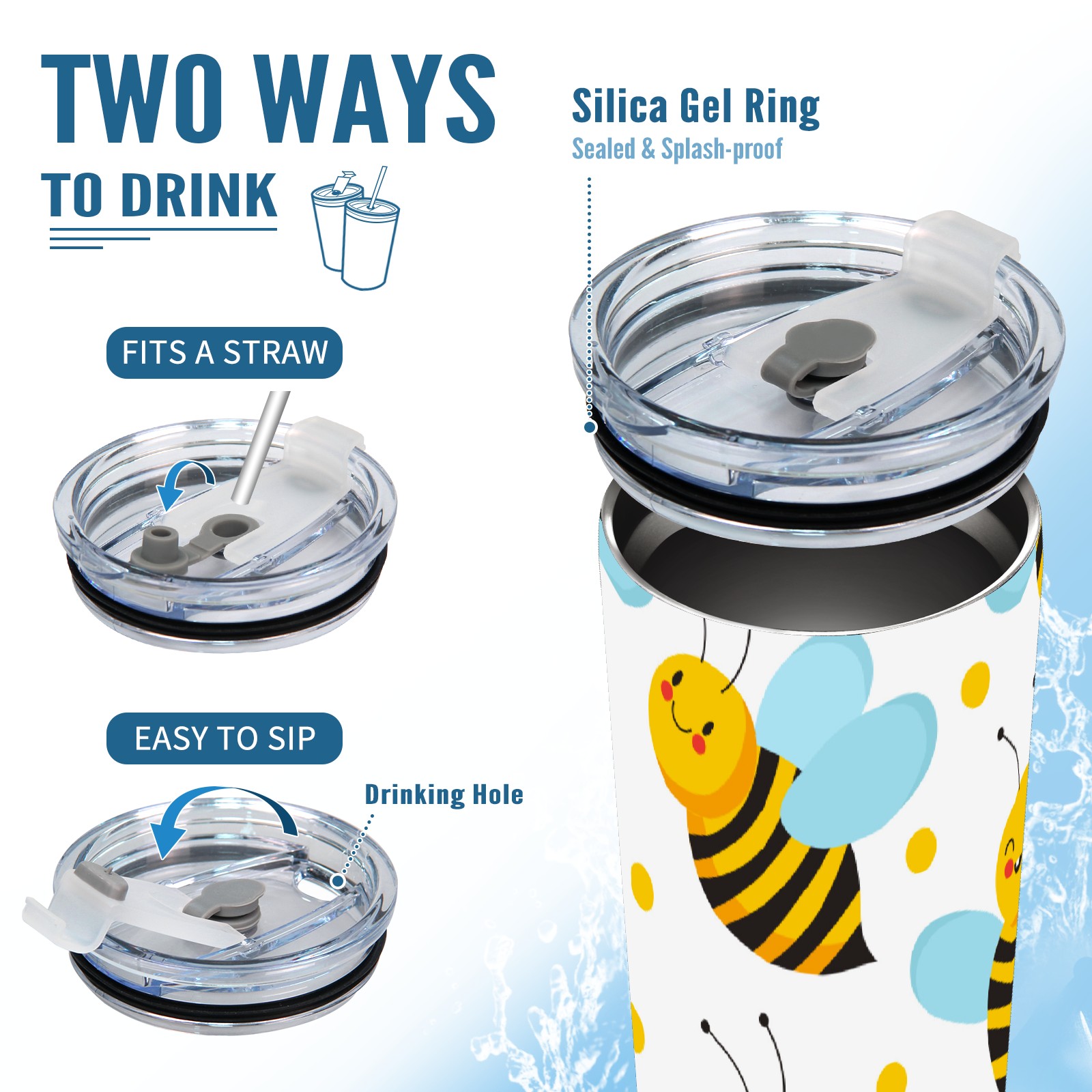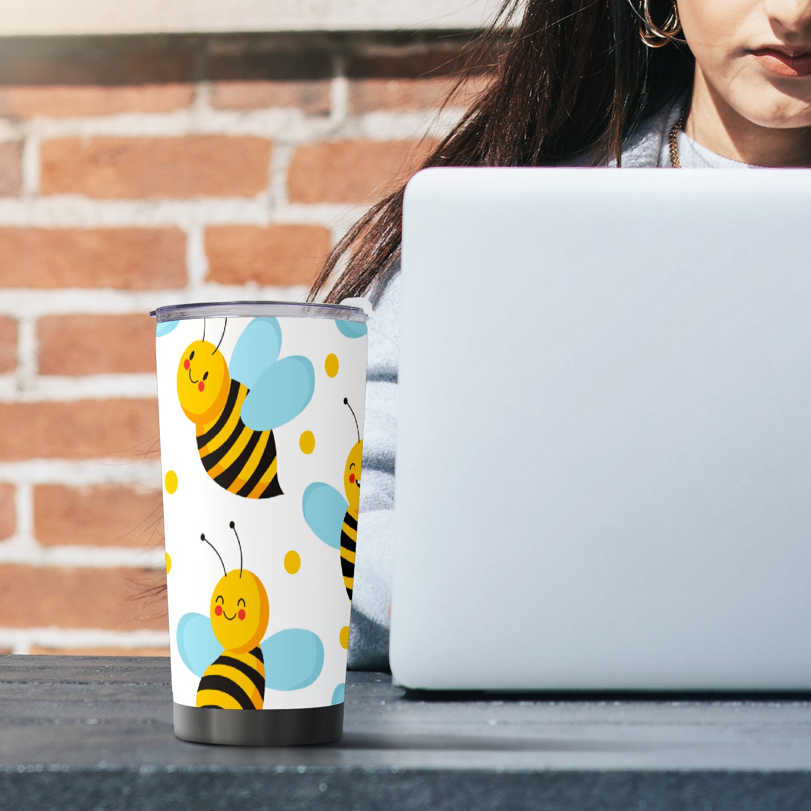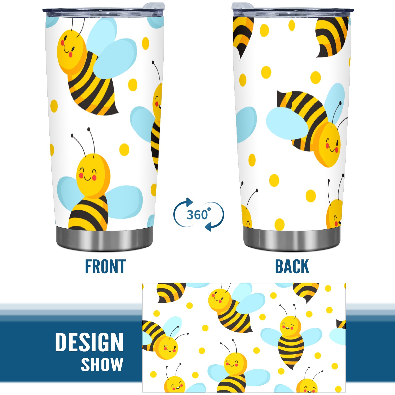 20 oz Tumbler Cute Yellow Bee Blue Wings Stainless Steel Insulated Tumbler with Lid Double Wall Vacuum Insulated Travel Mug Cup for Coffee Ice Hot Drinks