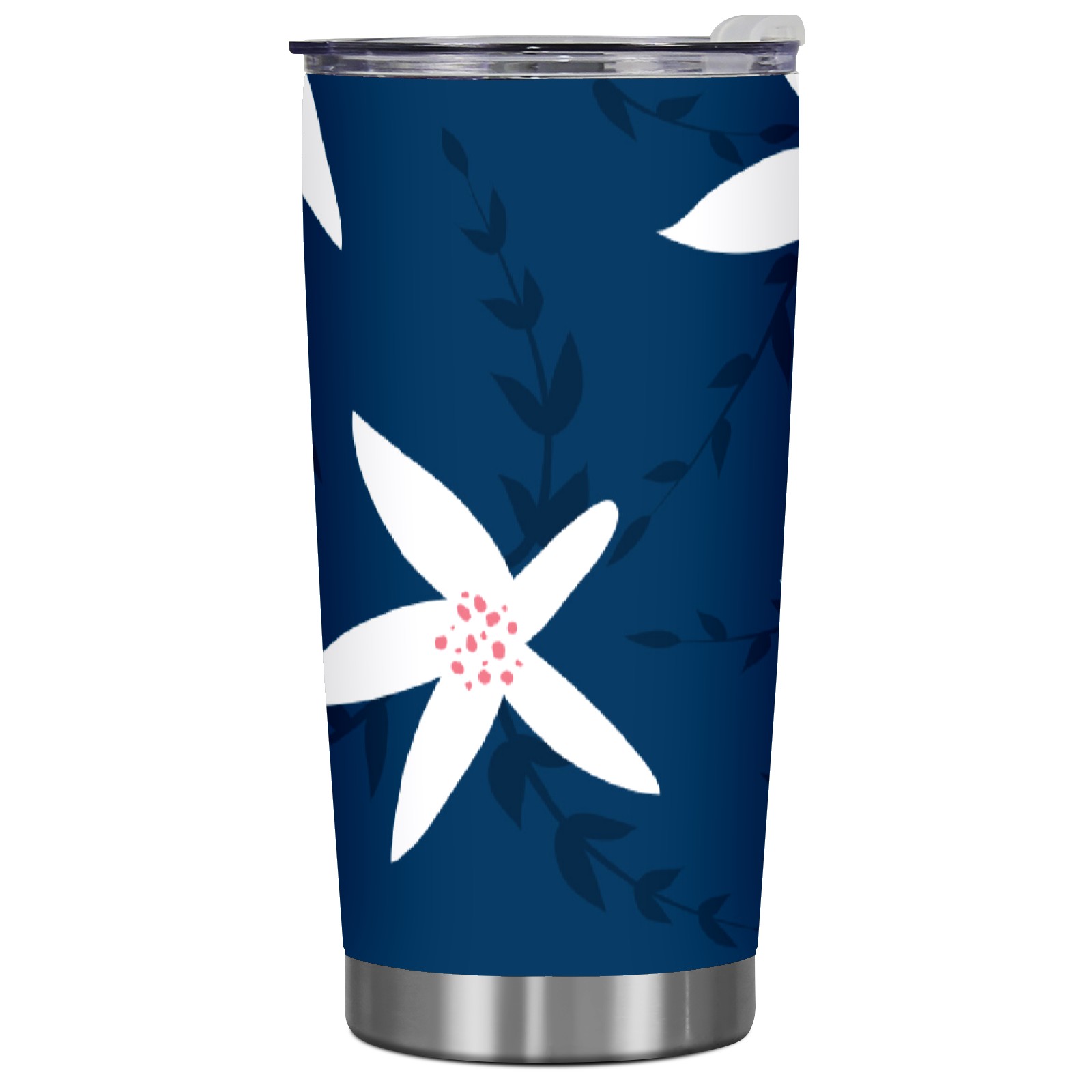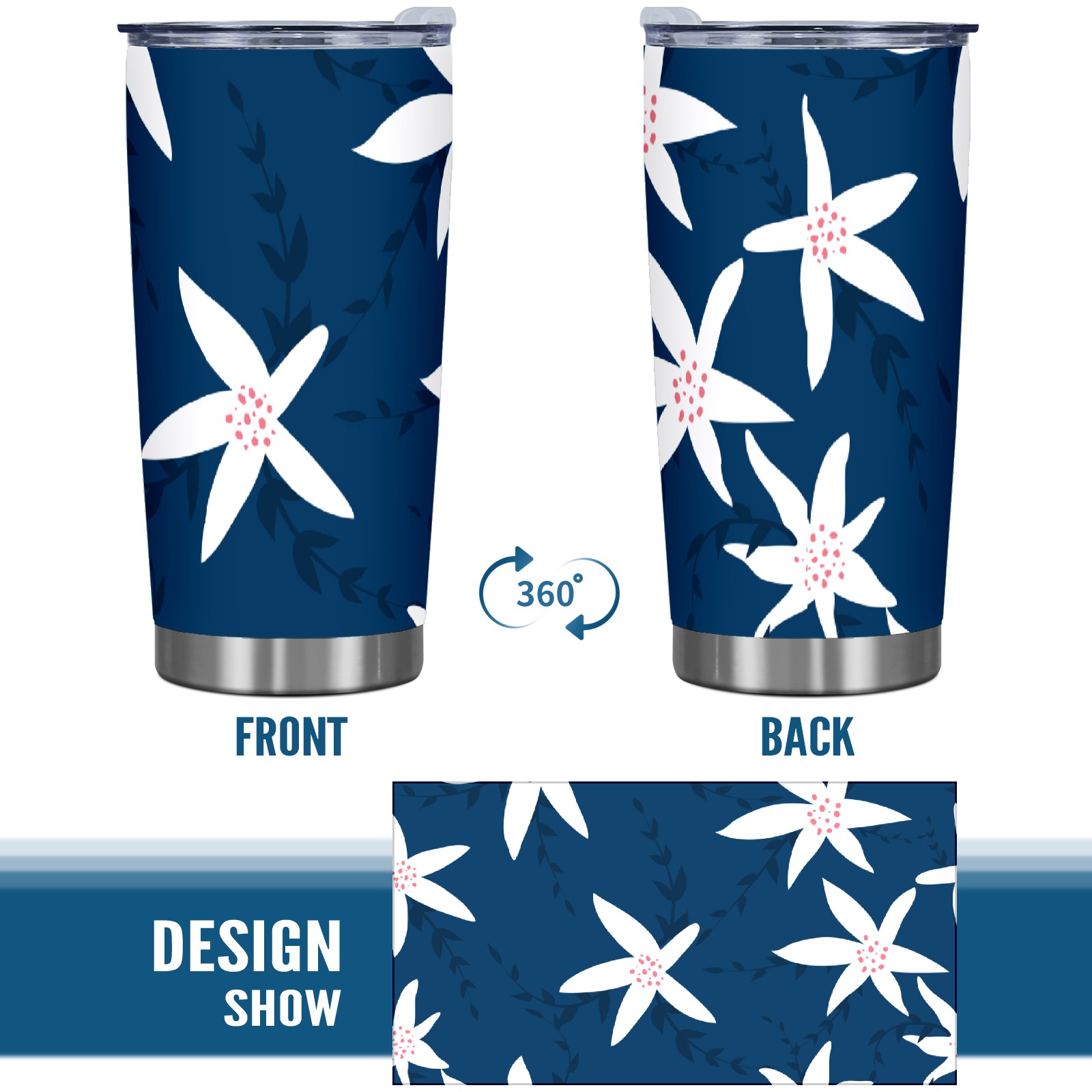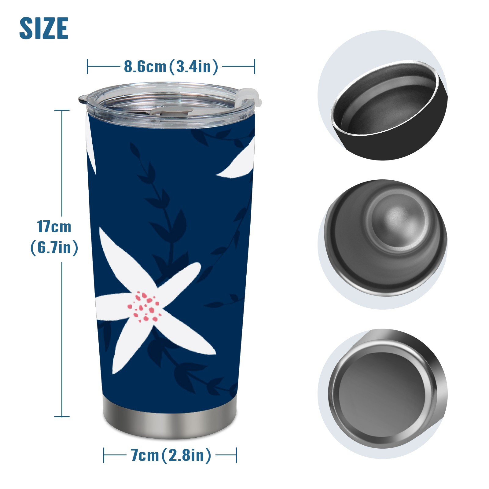 20 oz Tumbler Flowers Blue Pattern Stainless Steel Insulated Tumbler with Lid Double Wall Vacuum Insulated Travel Mug Cup for Coffee Ice Hot Drinks