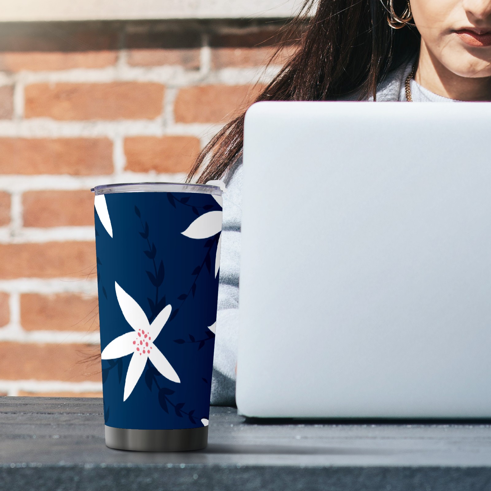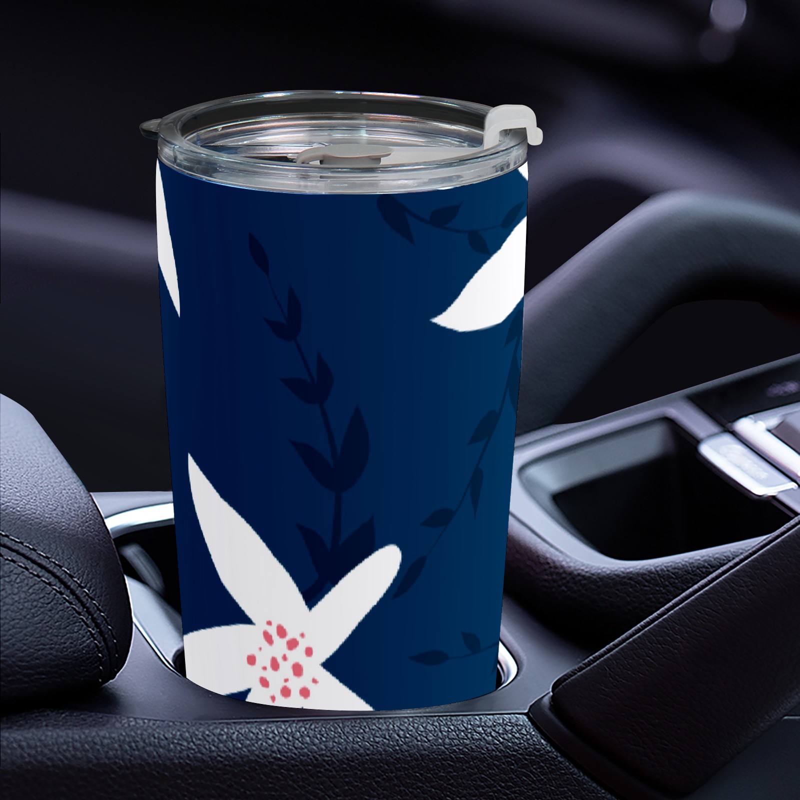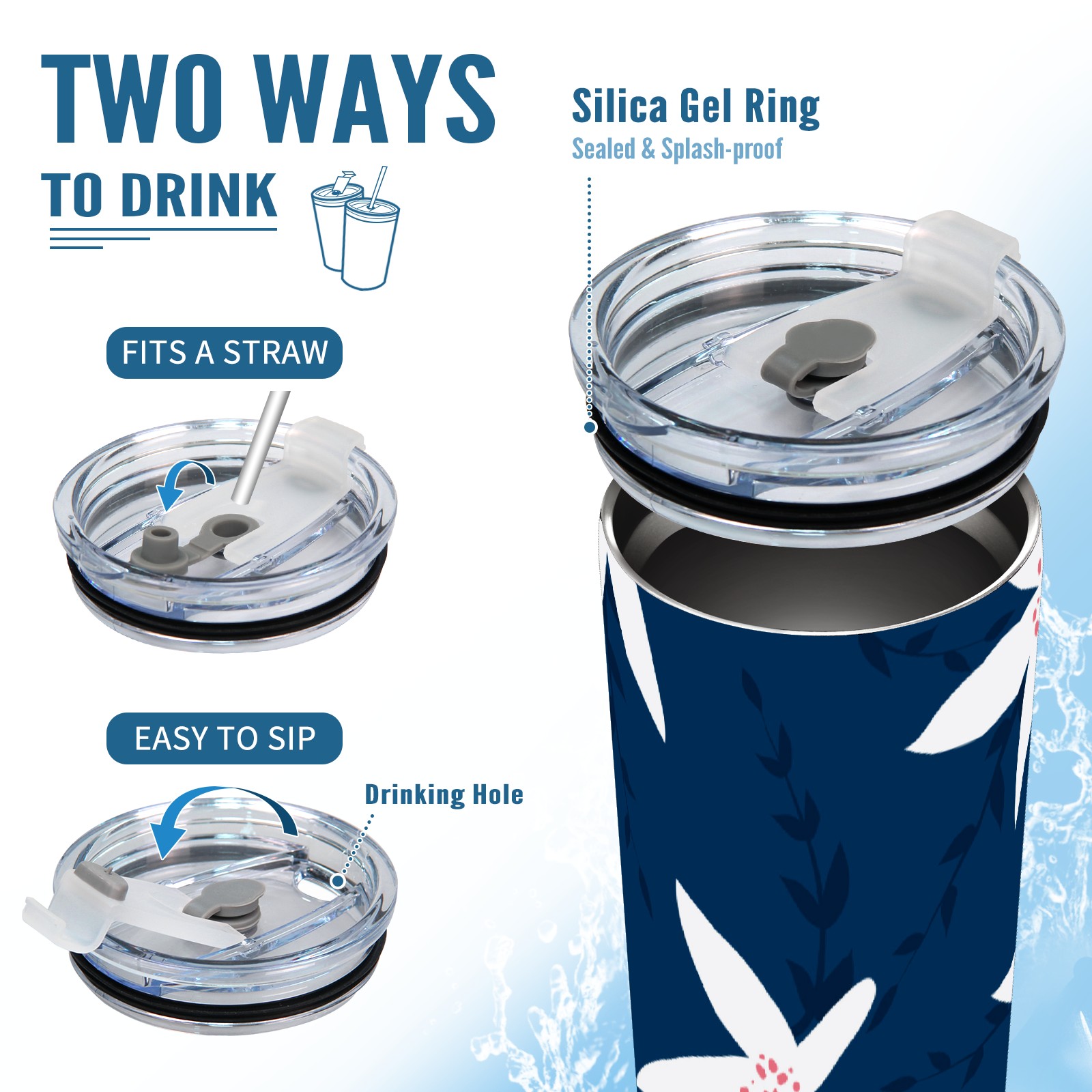20 oz Tumbler Flowers Blue Pattern Stainless Steel Insulated Tumbler with Lid Double Wall Vacuum Insulated Travel Mug Cup for Coffee Ice Hot Drinks