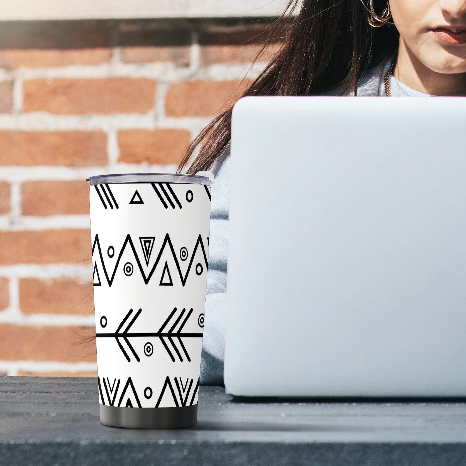 20 oz Tumbler Creative Black Lines Pattern Stainless Steel Insulated Tumbler with Lid Double Wall Vacuum Insulated Travel Mug Cup for Coffee Ice Hot Drinks