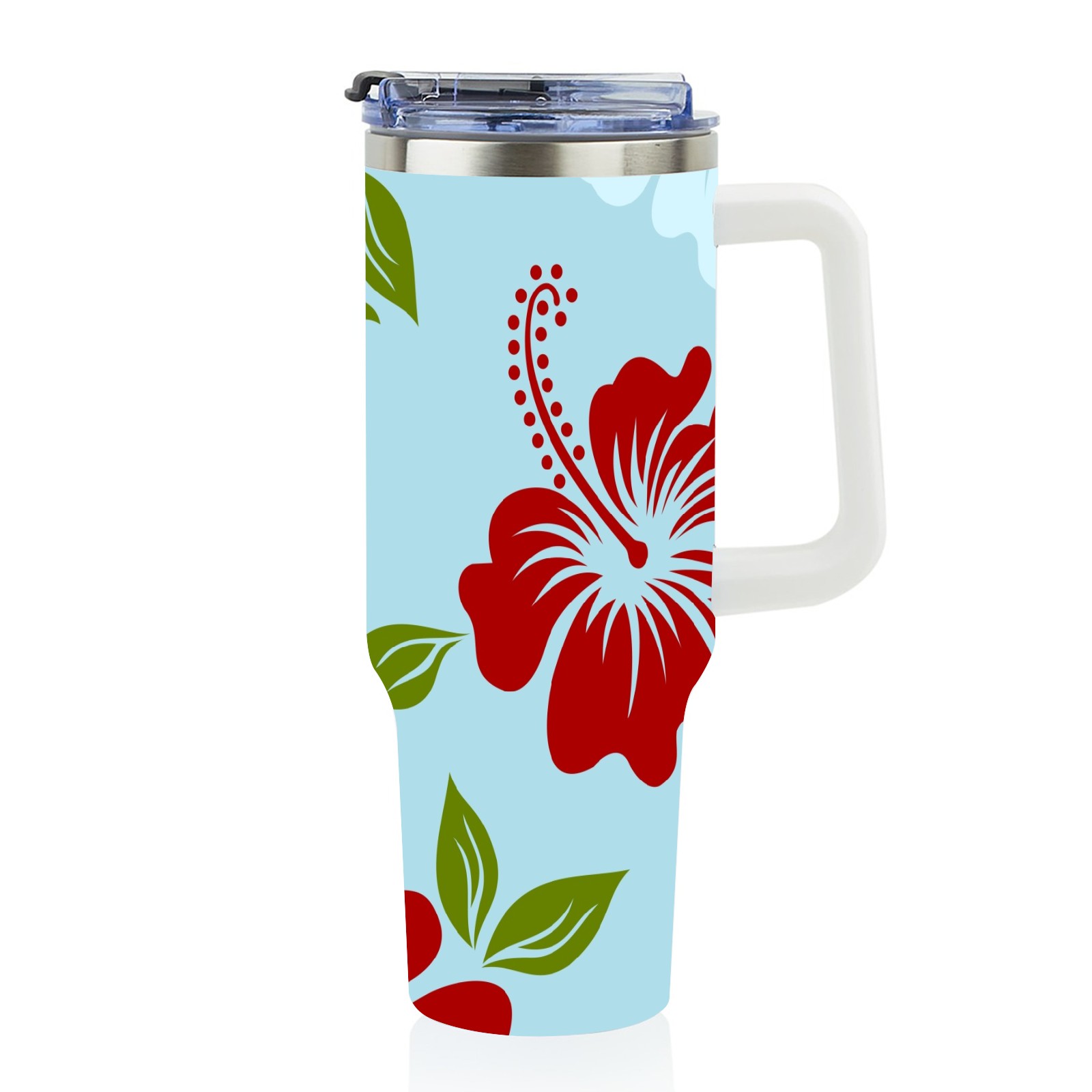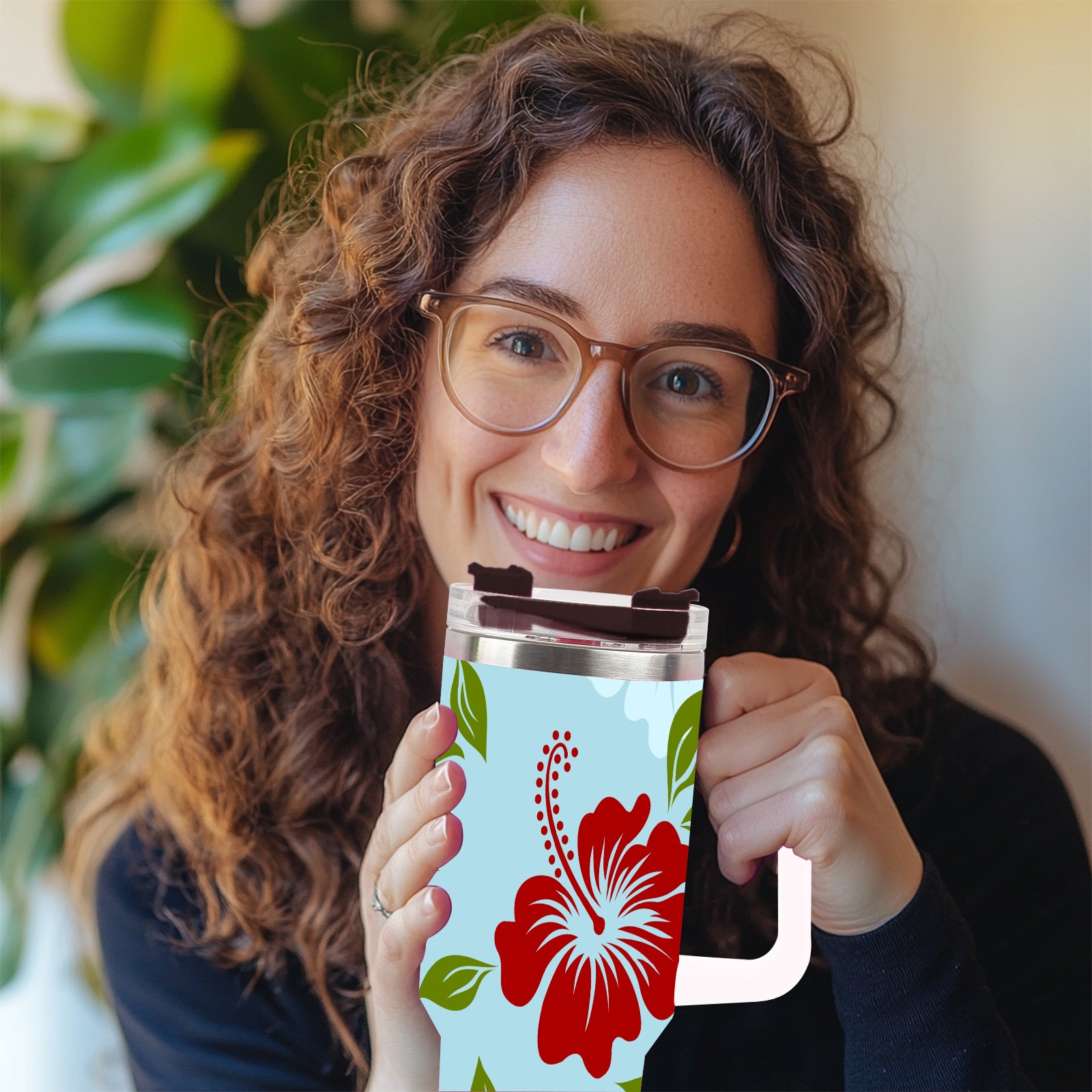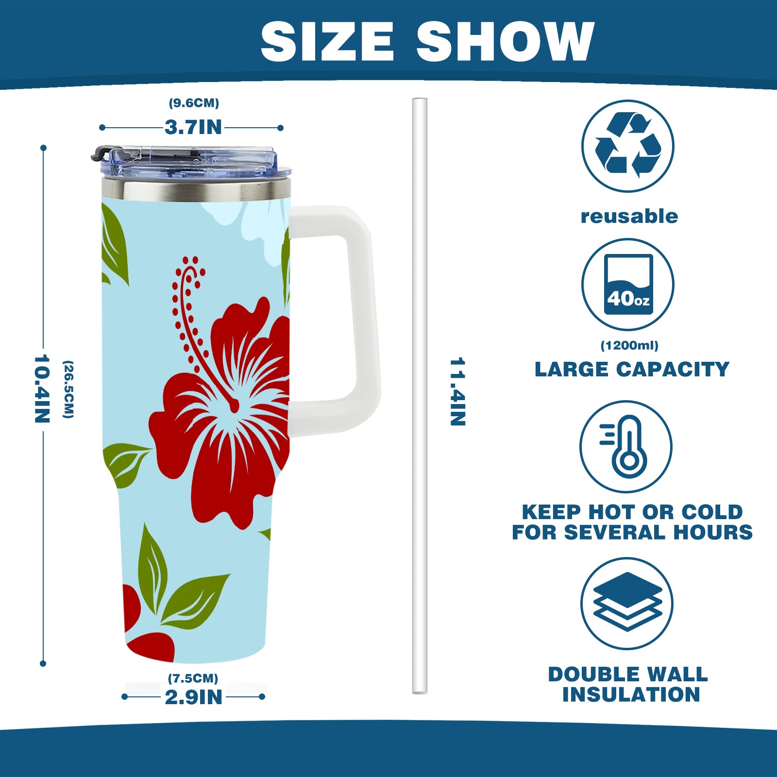 40oz Flower Leaf Colorful thermos with lid and straw, leak-proof stainless steel, with handle, spill-proof bottle, convenient for travel(pink)