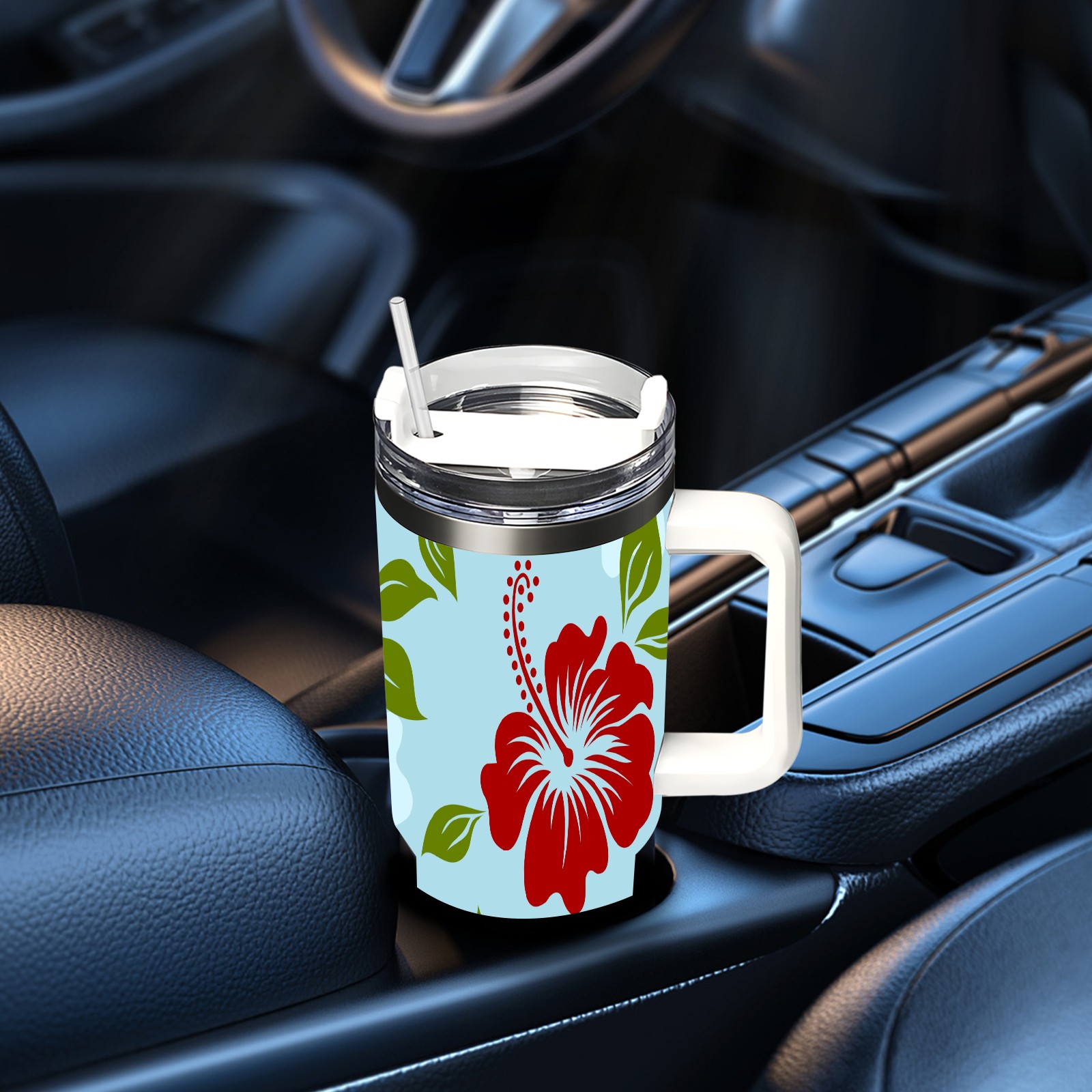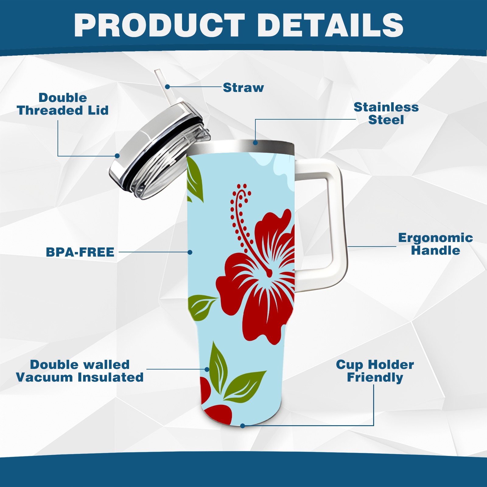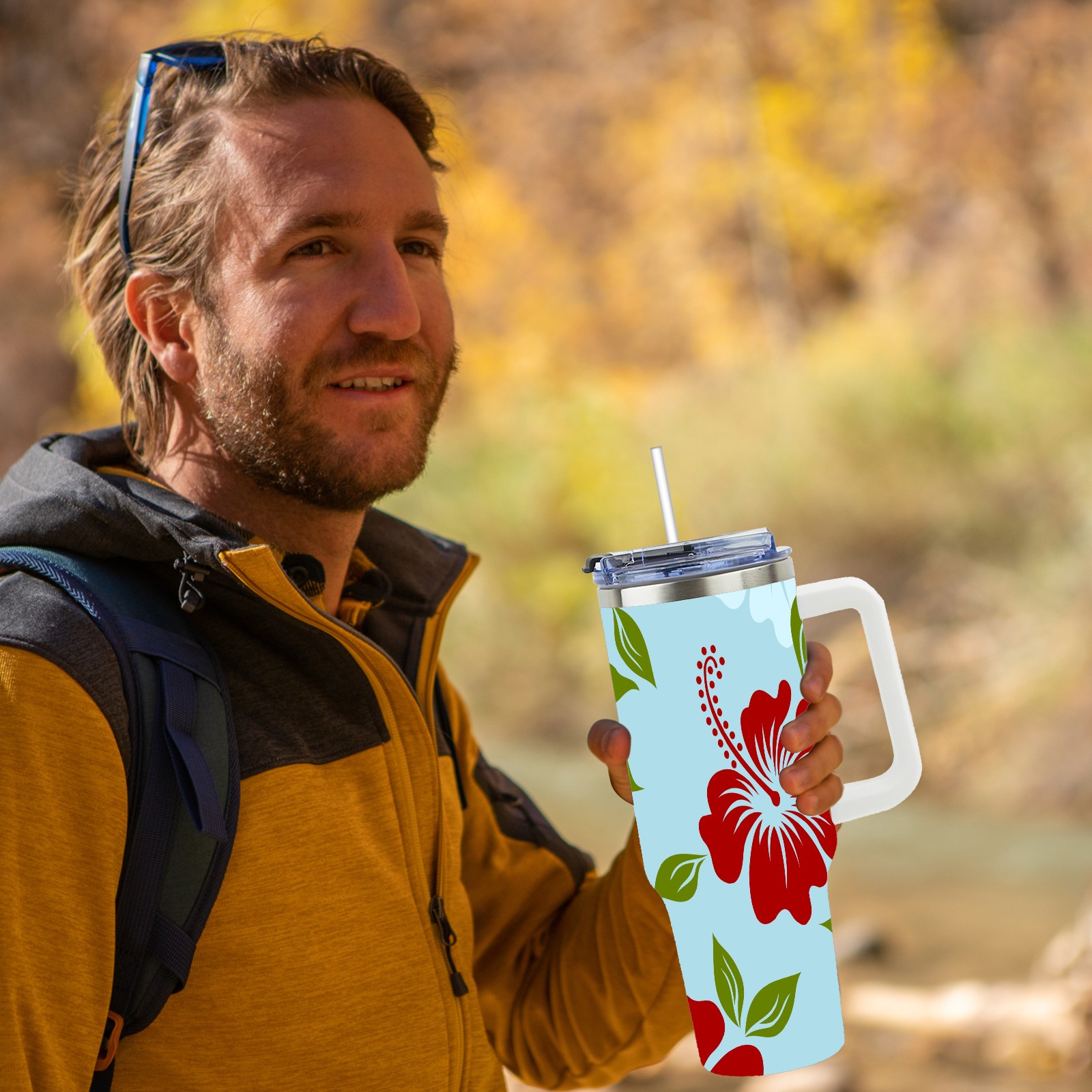 40oz Flower Leaf Colorful thermos with lid and straw, leak-proof stainless steel, with handle, spill-proof bottle, convenient for travel(pink)