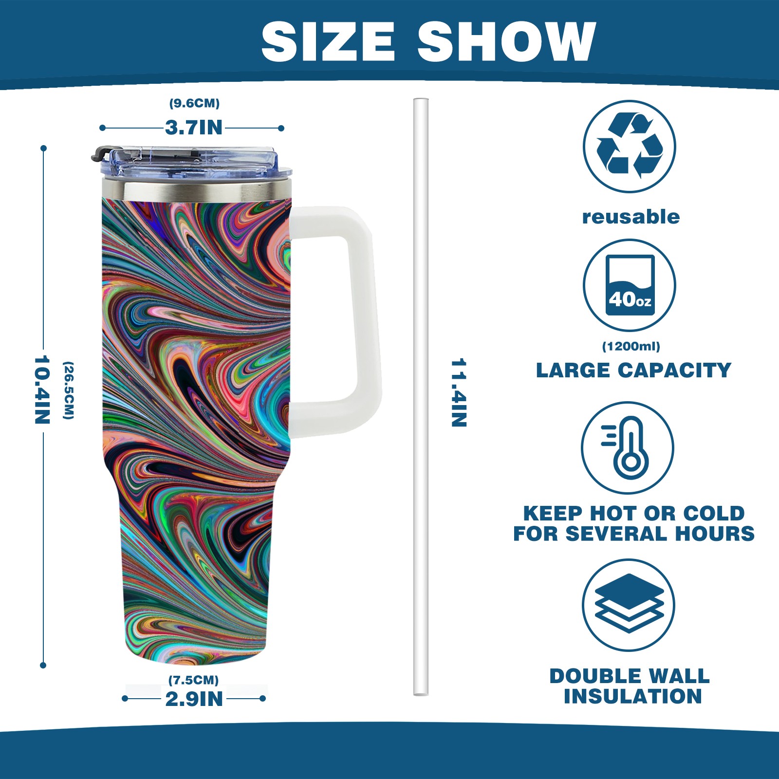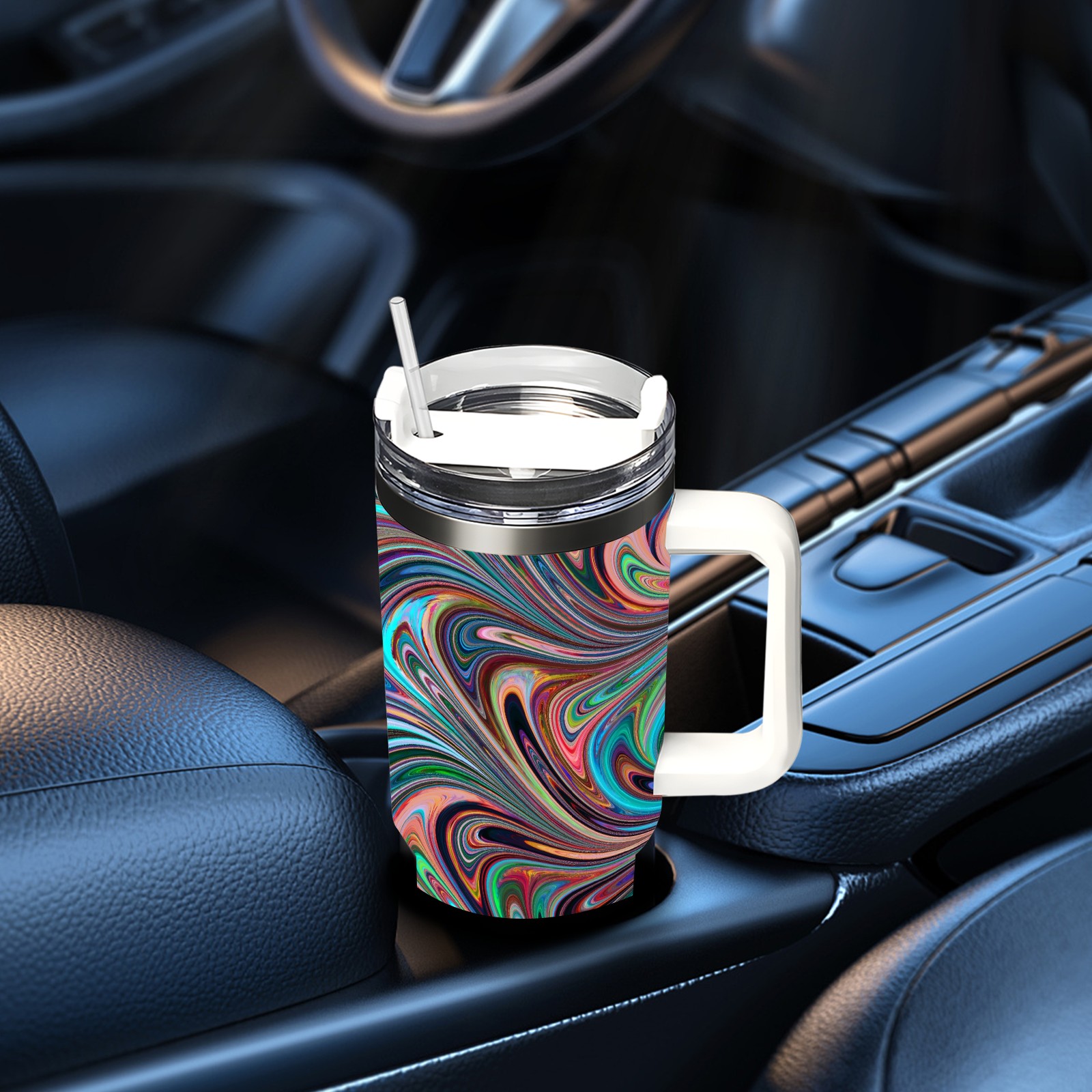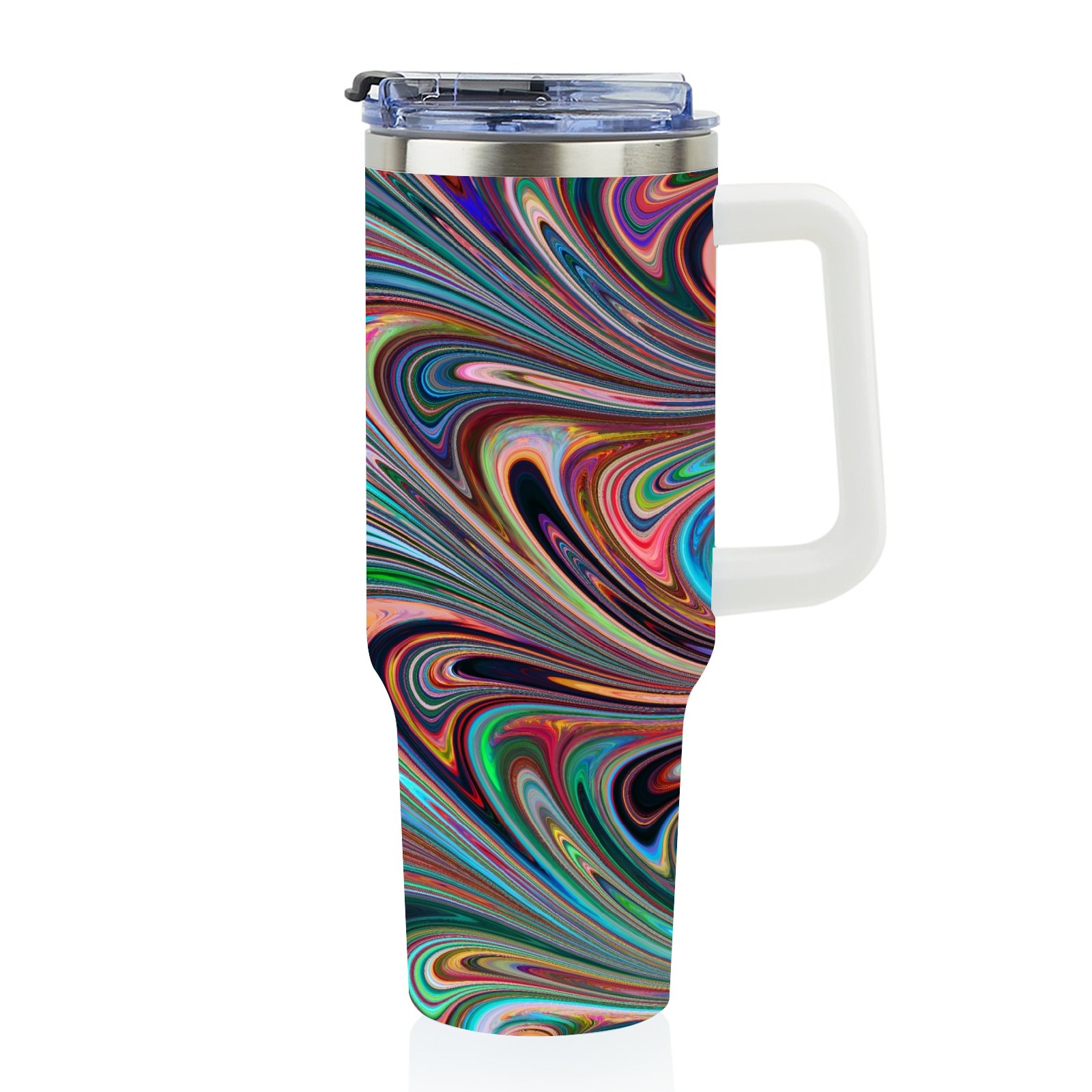 40oz Marble Colorful Texture thermos with lid and straw, leak-proof stainless steel, with handle, spill-proof bottle, convenient for travel(pink)