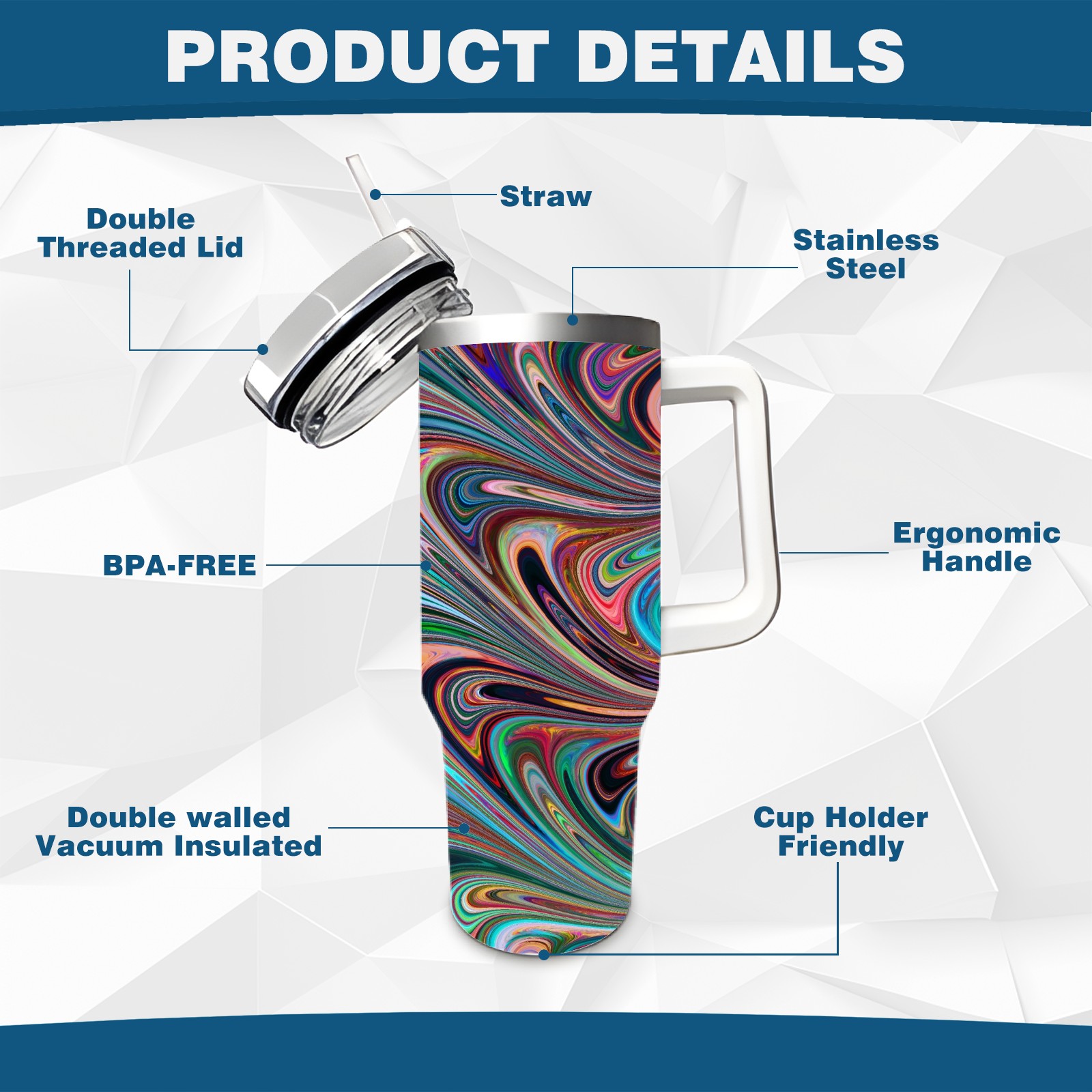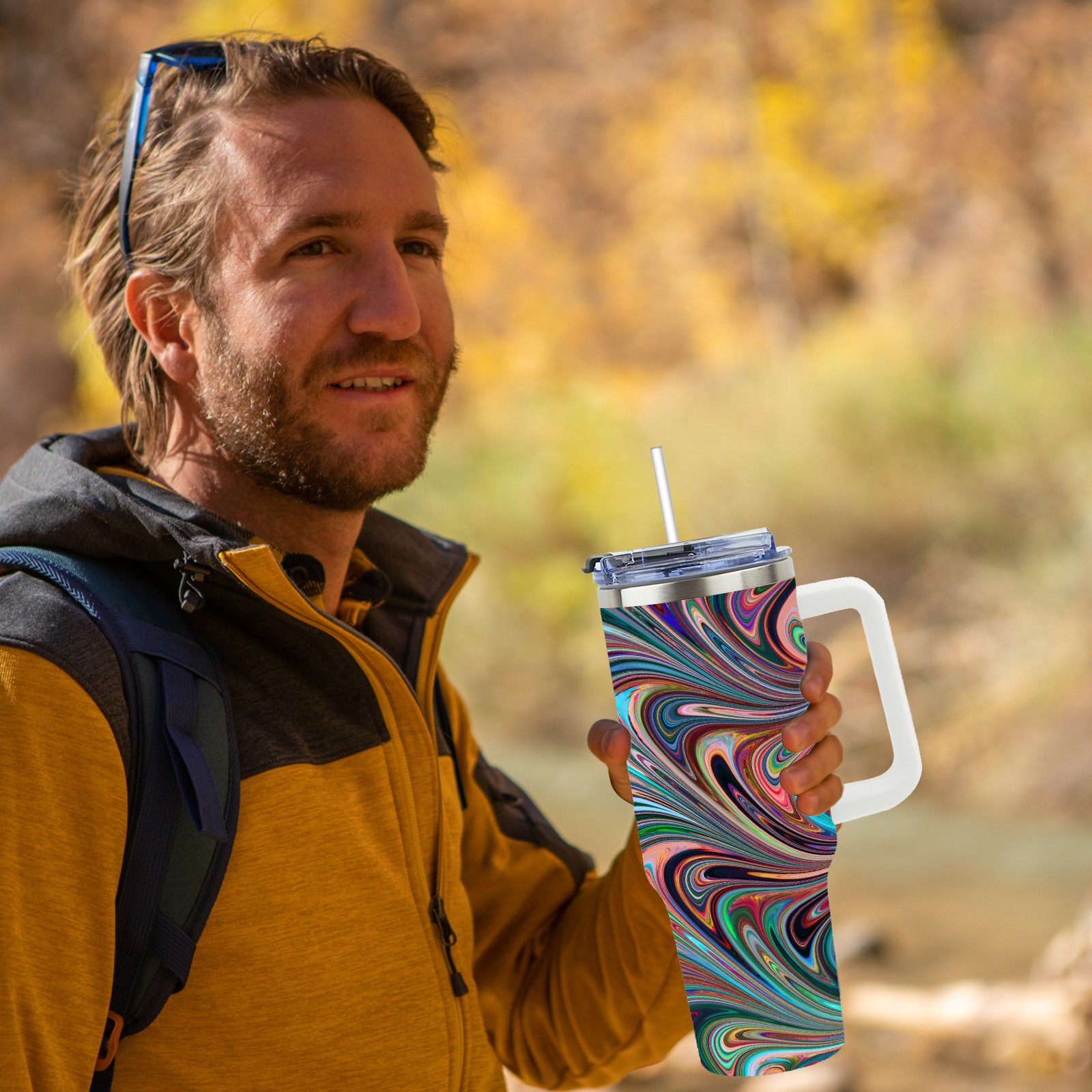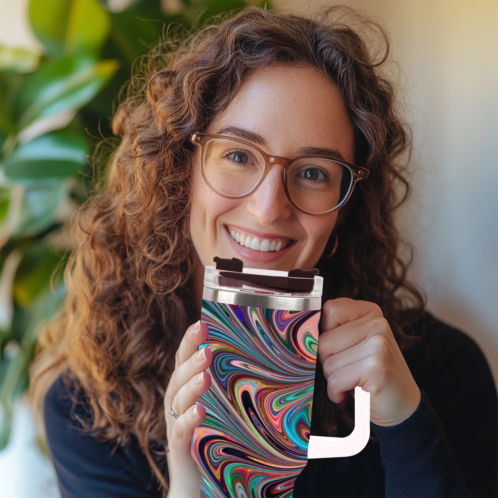 40oz Marble Colorful Texture thermos with lid and straw, leak-proof stainless steel, with handle, spill-proof bottle, convenient for travel(pink)