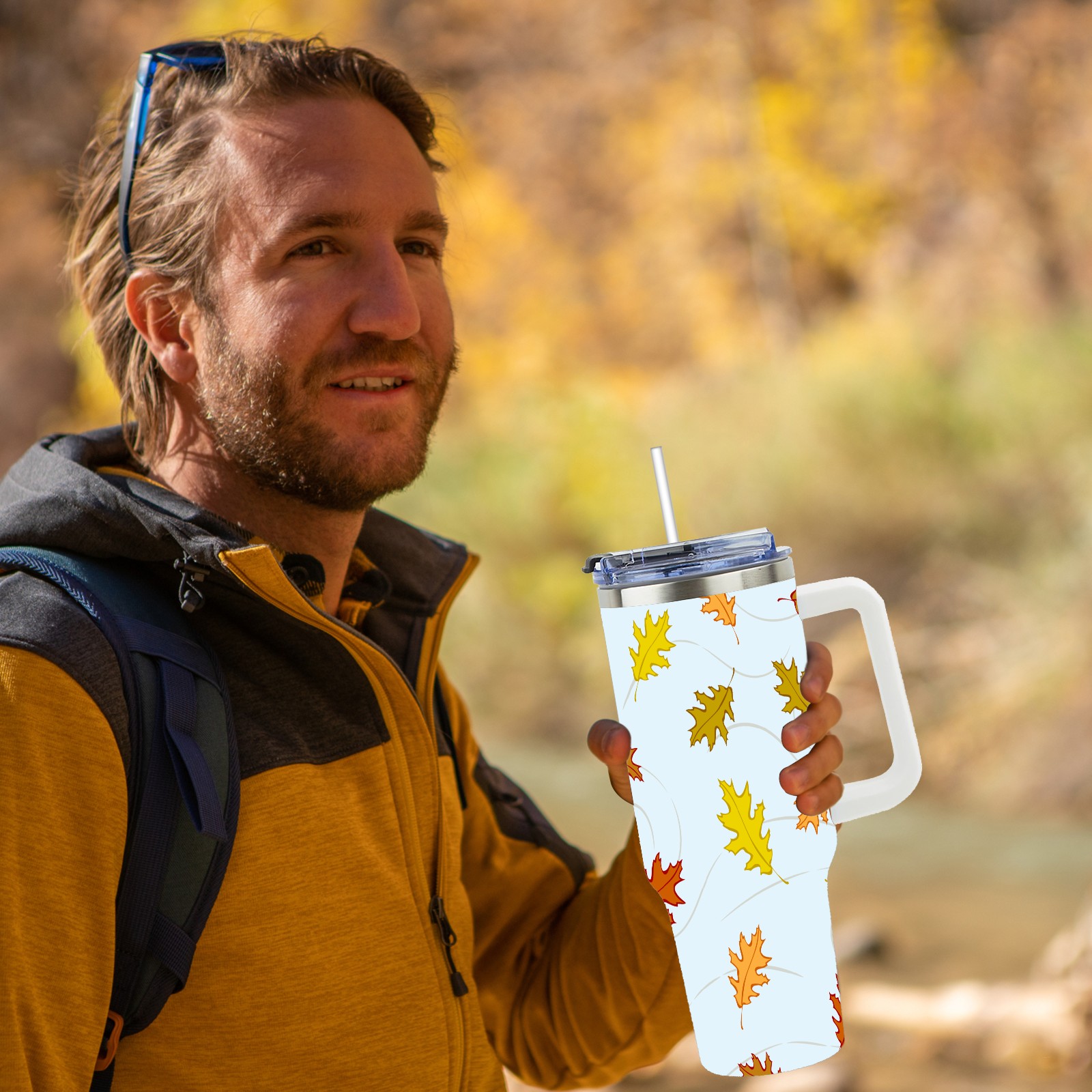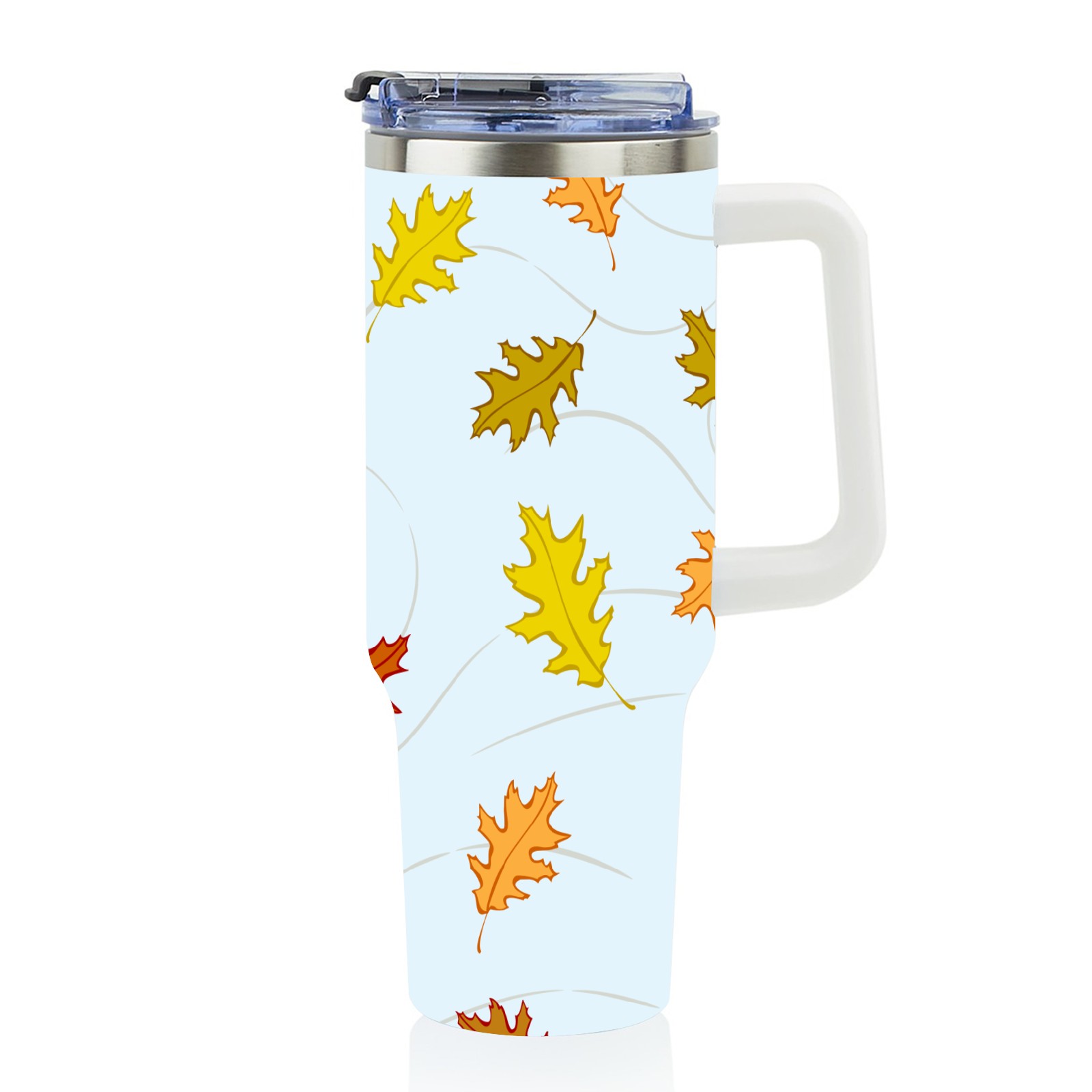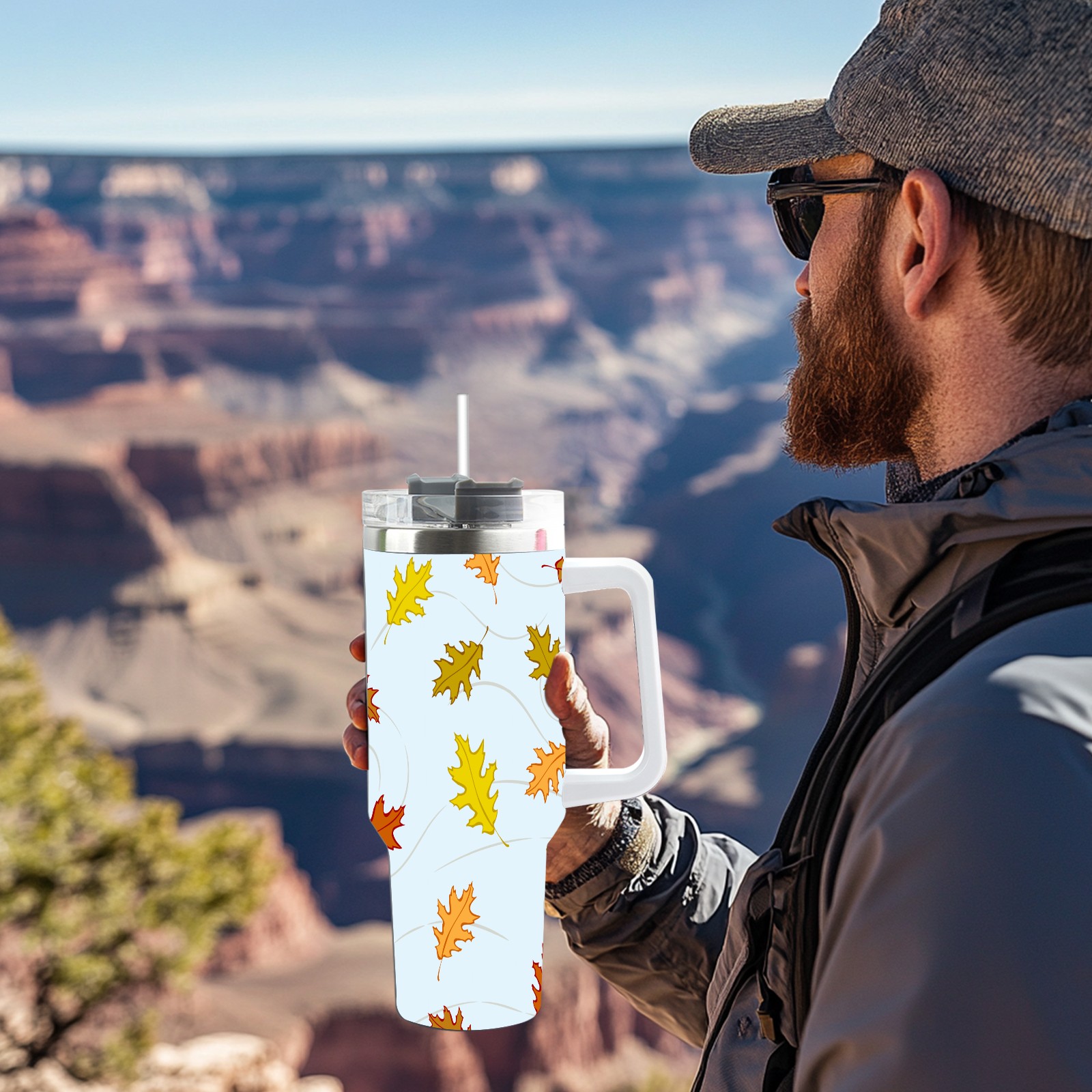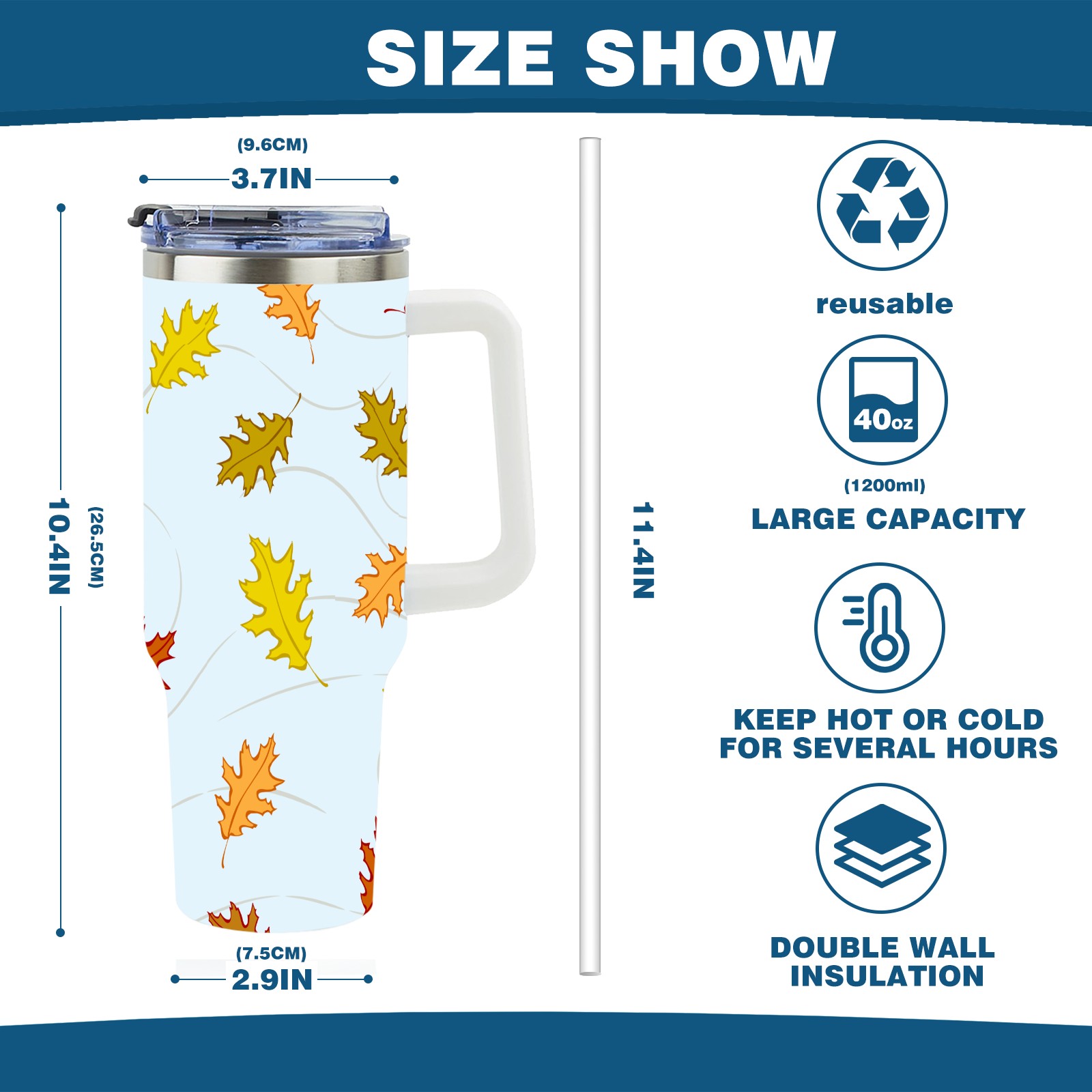 40oz Autumn Leaves Seamless thermos with lid and straw, leak-proof stainless steel, with handle, spill-proof bottle, convenient for travel(pink)