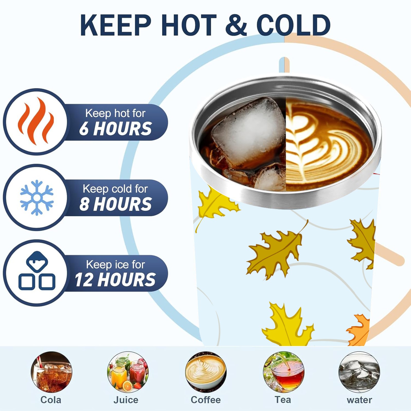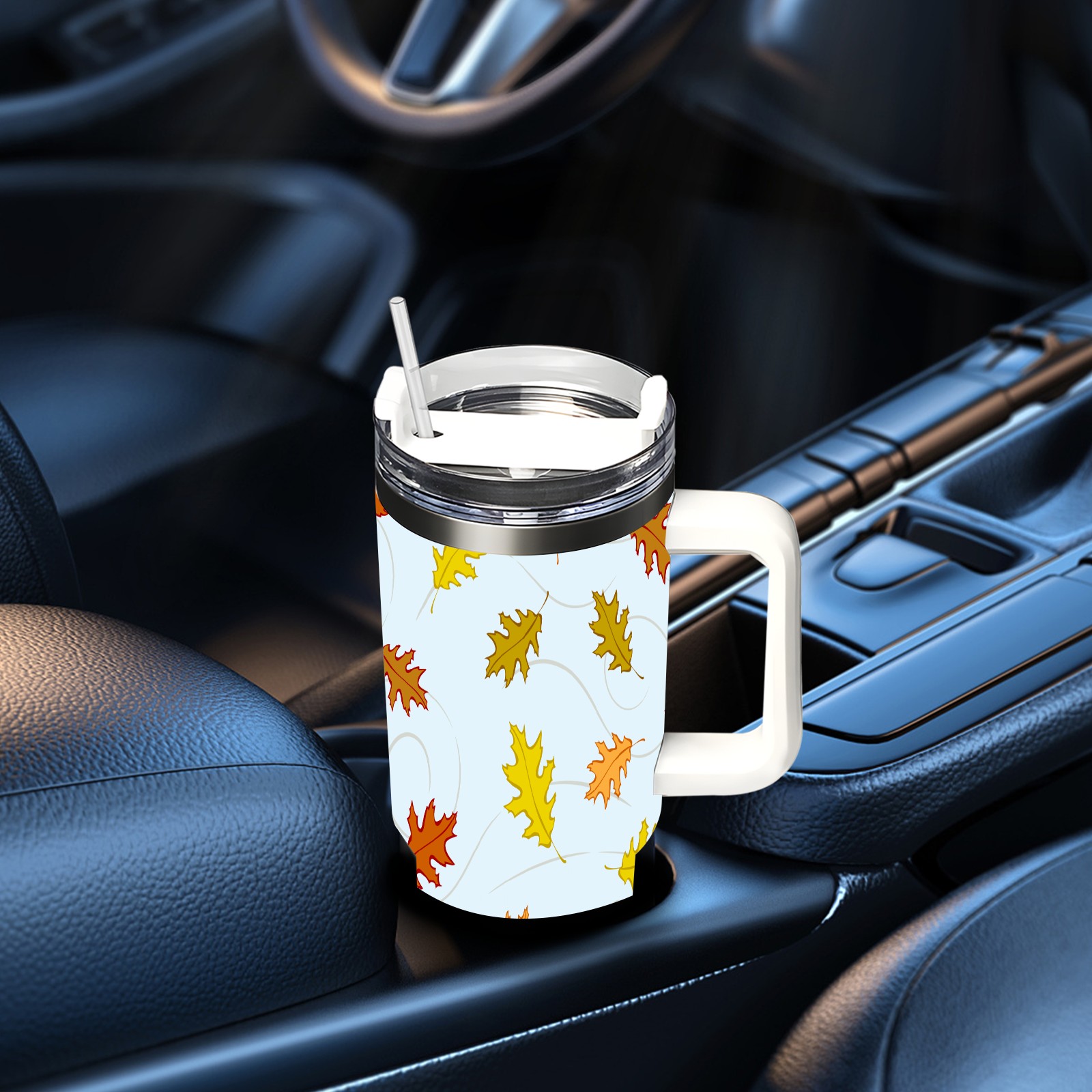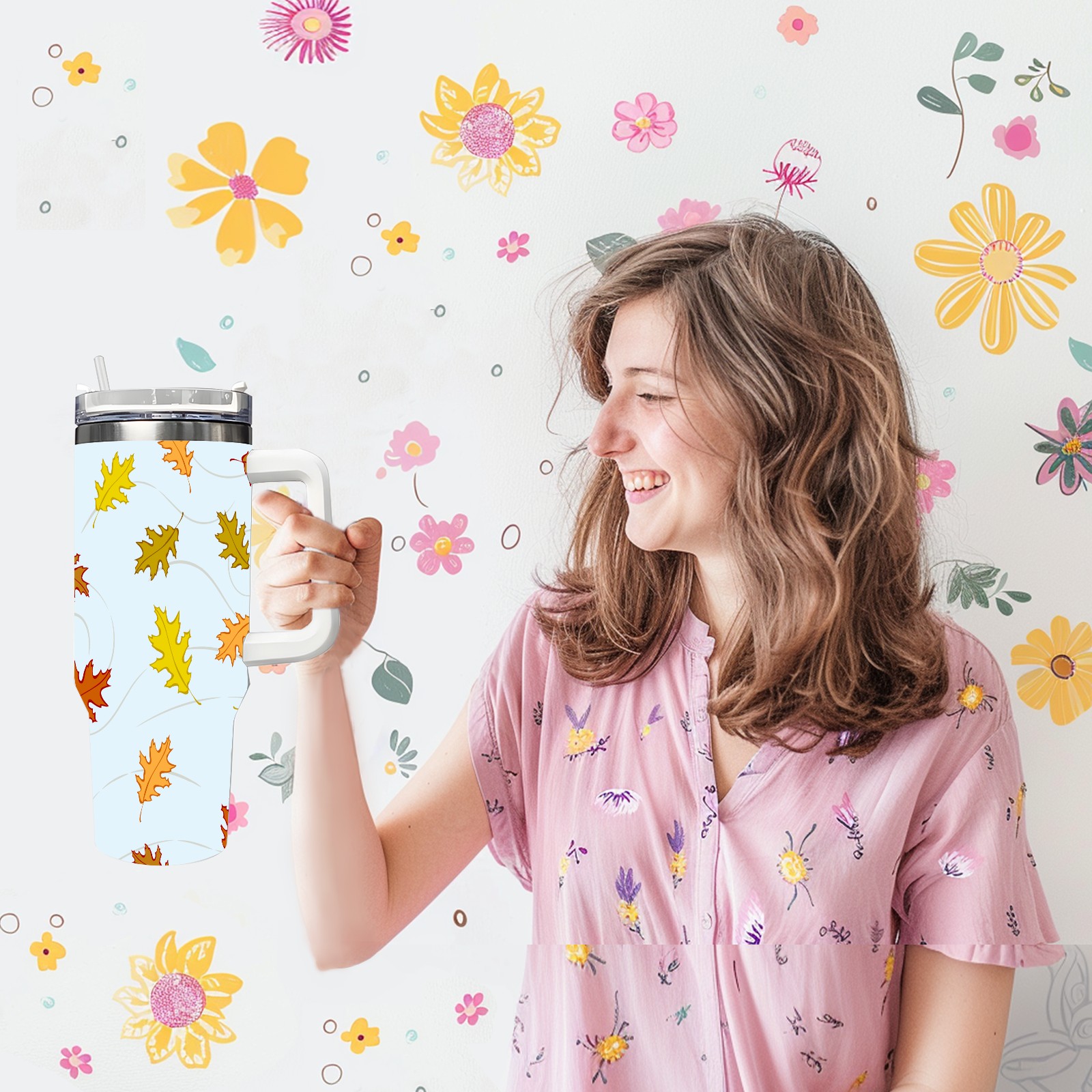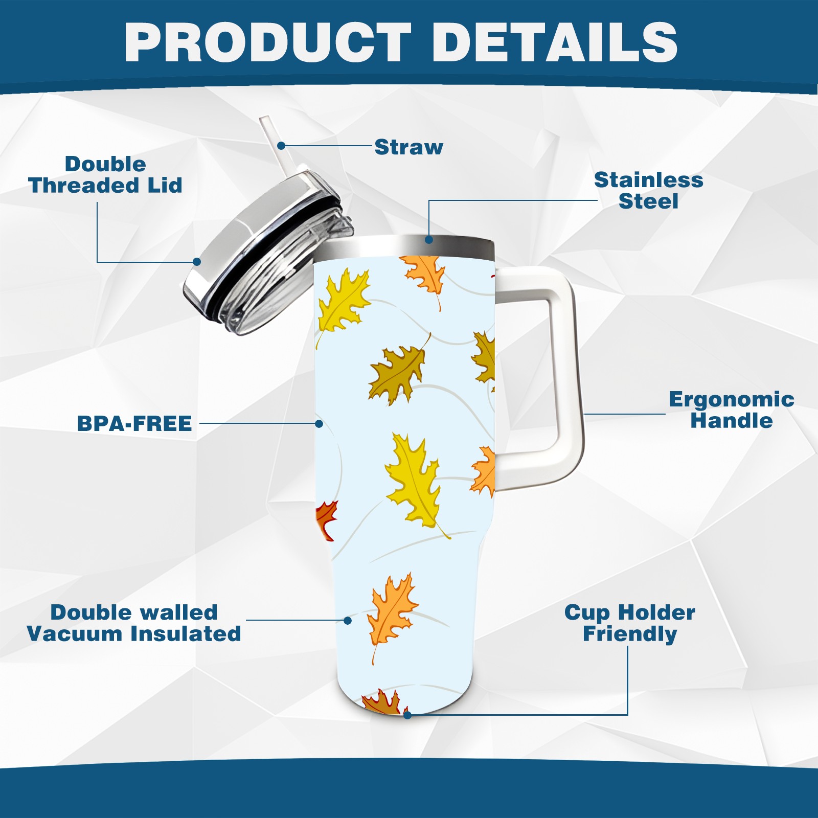 40oz Autumn Leaves Seamless thermos with lid and straw, leak-proof stainless steel, with handle, spill-proof bottle, convenient for travel(pink)