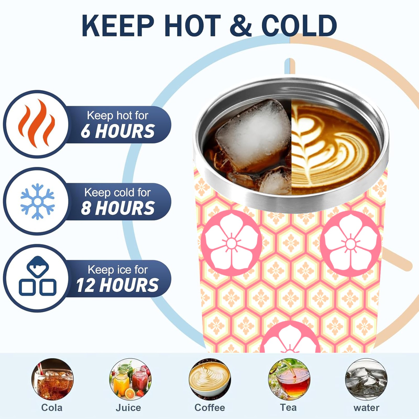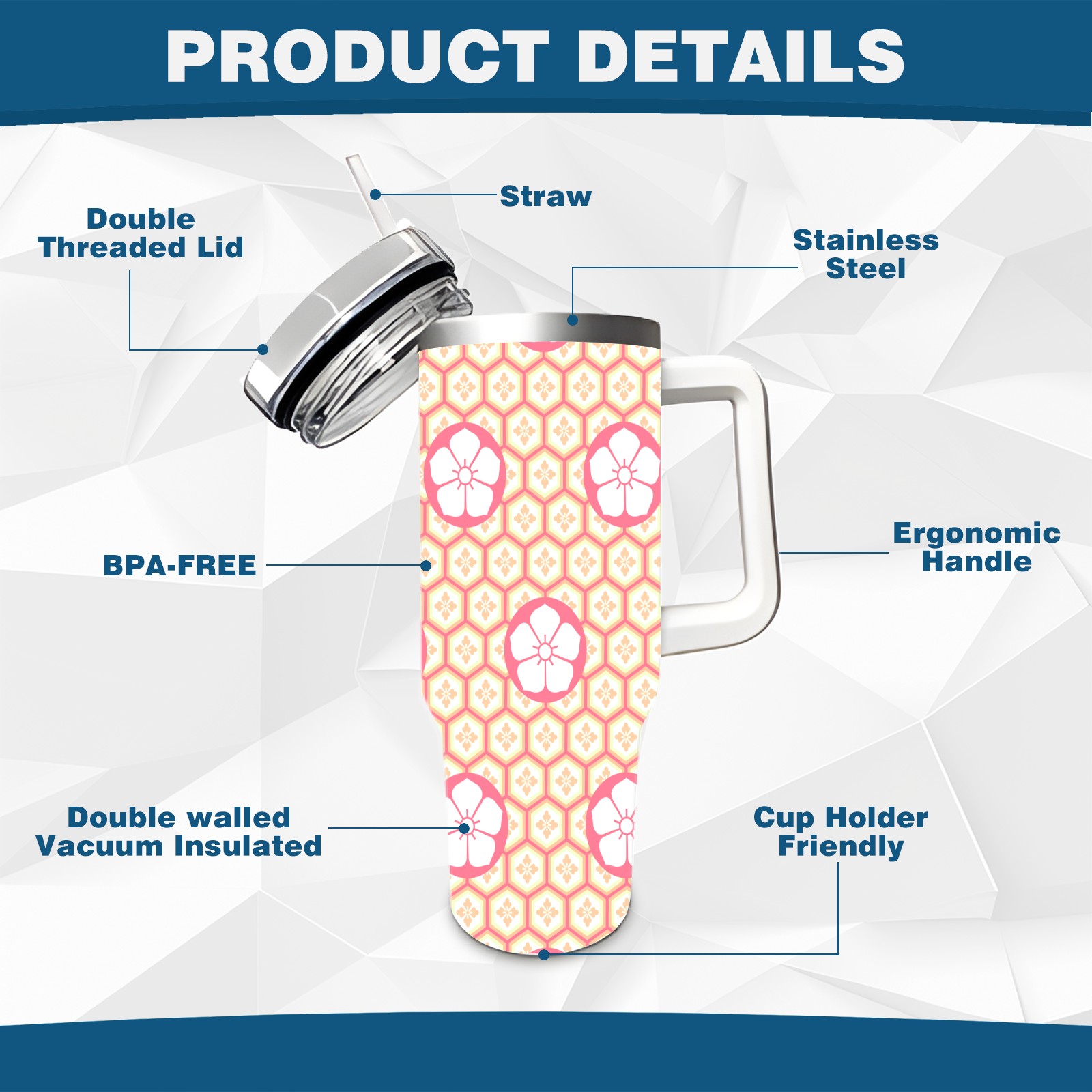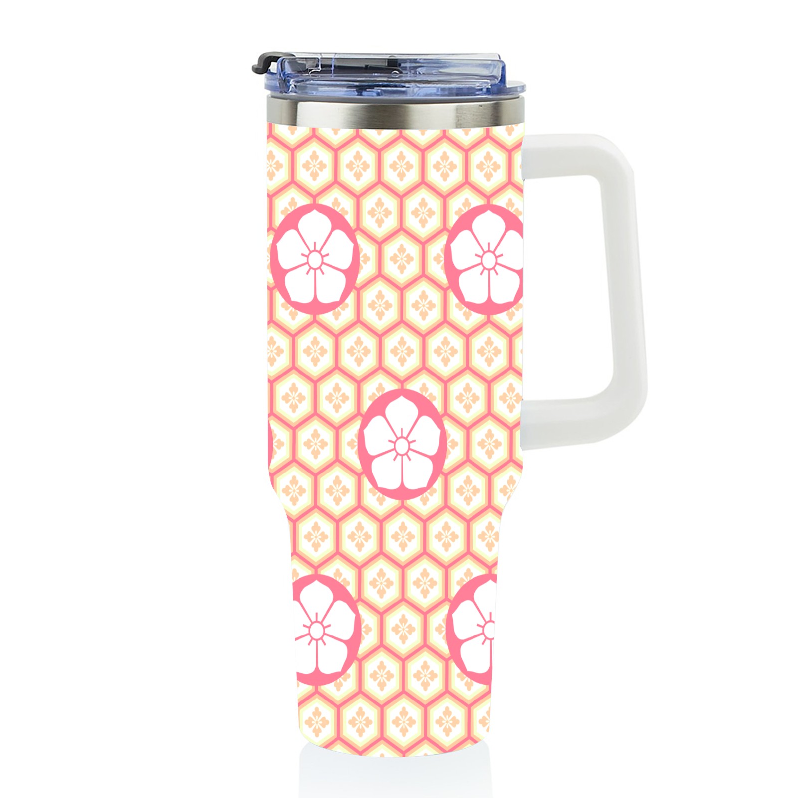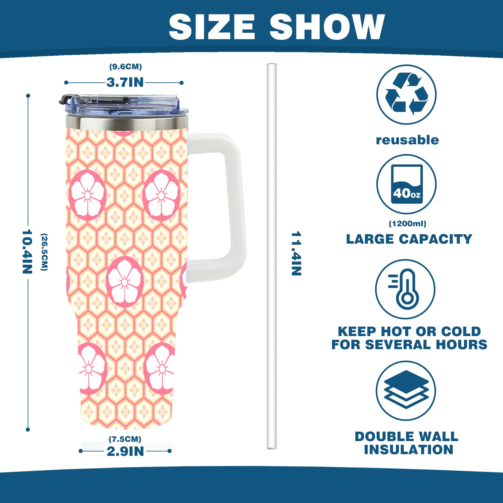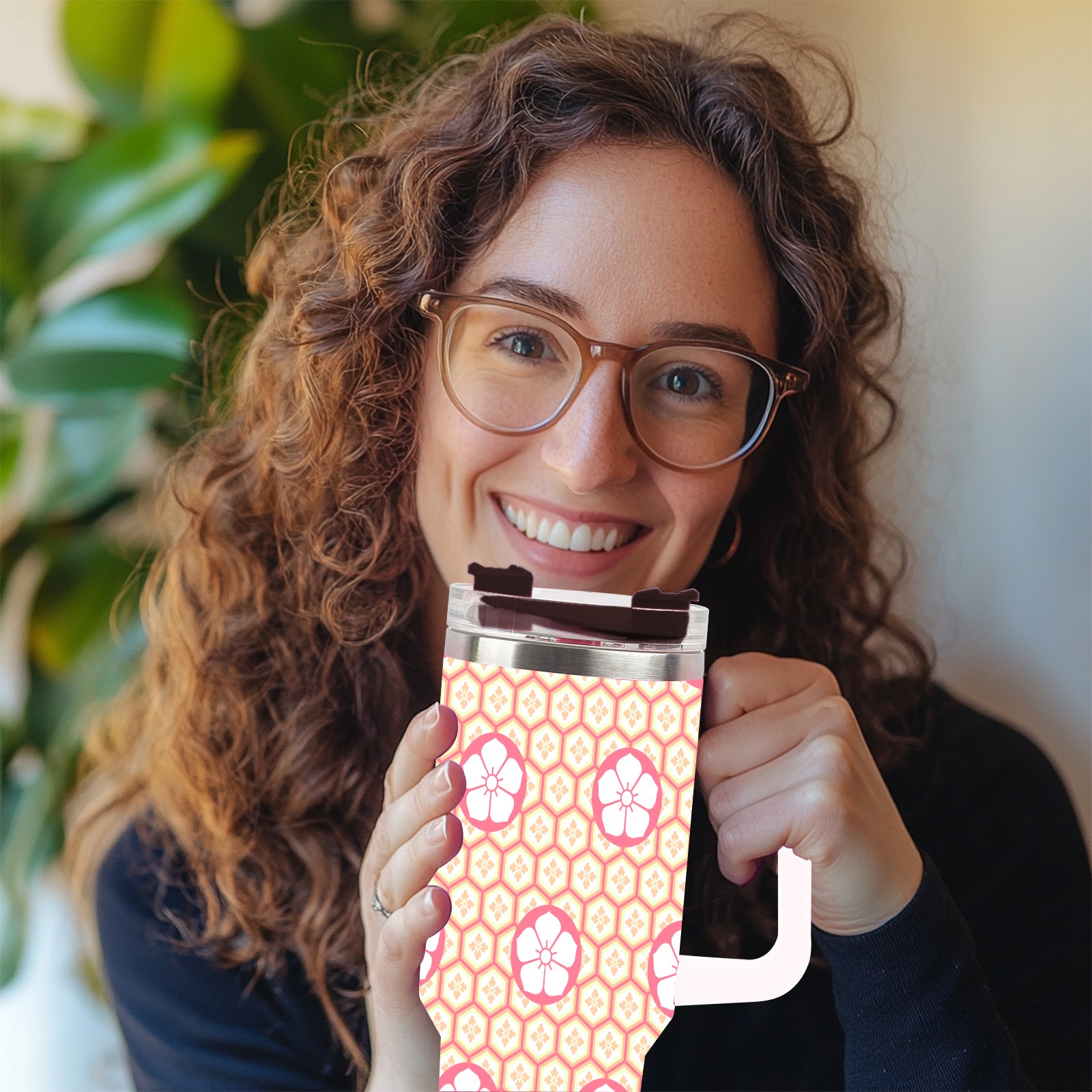 40oz Flower Hexagon Seamless thermos with lid and straw, leak-proof stainless steel, with handle, spill-proof bottle, convenient for travel(pink)