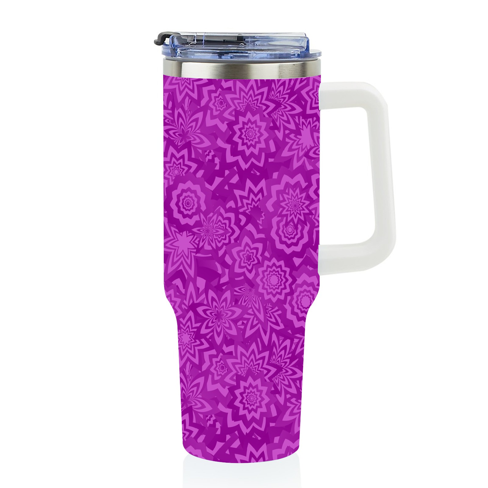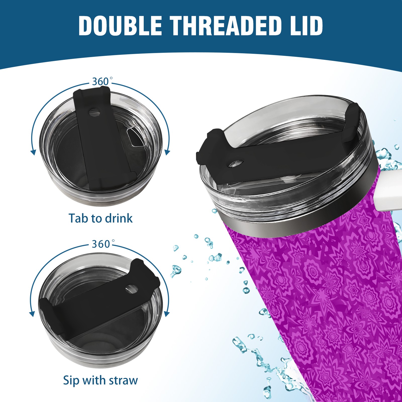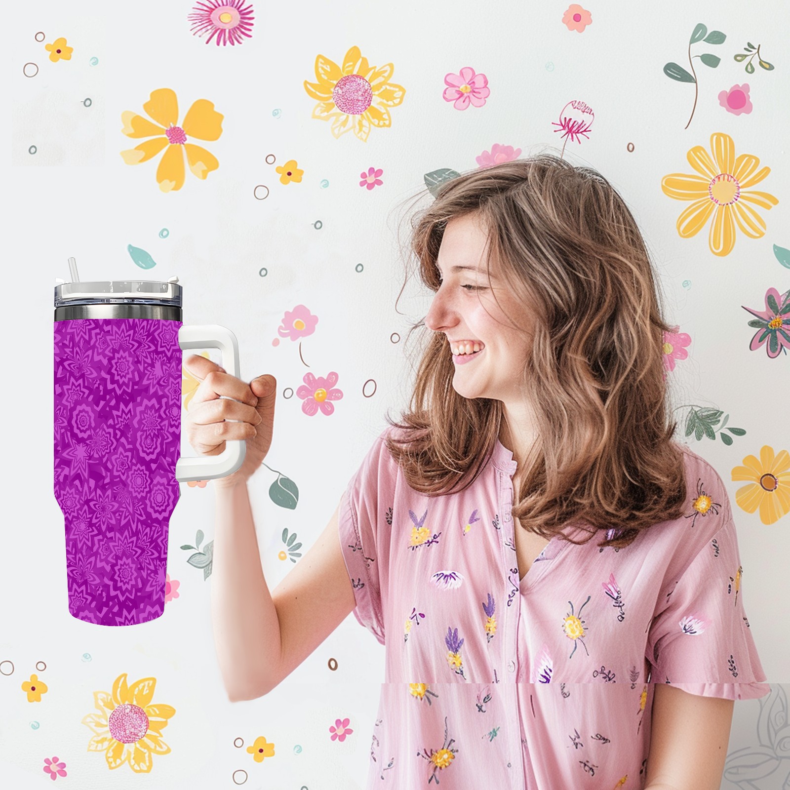 40oz Flower Shapes Purple thermos with lid and straw, leak-proof stainless steel, with handle, spill-proof bottle, convenient for travel(pink)