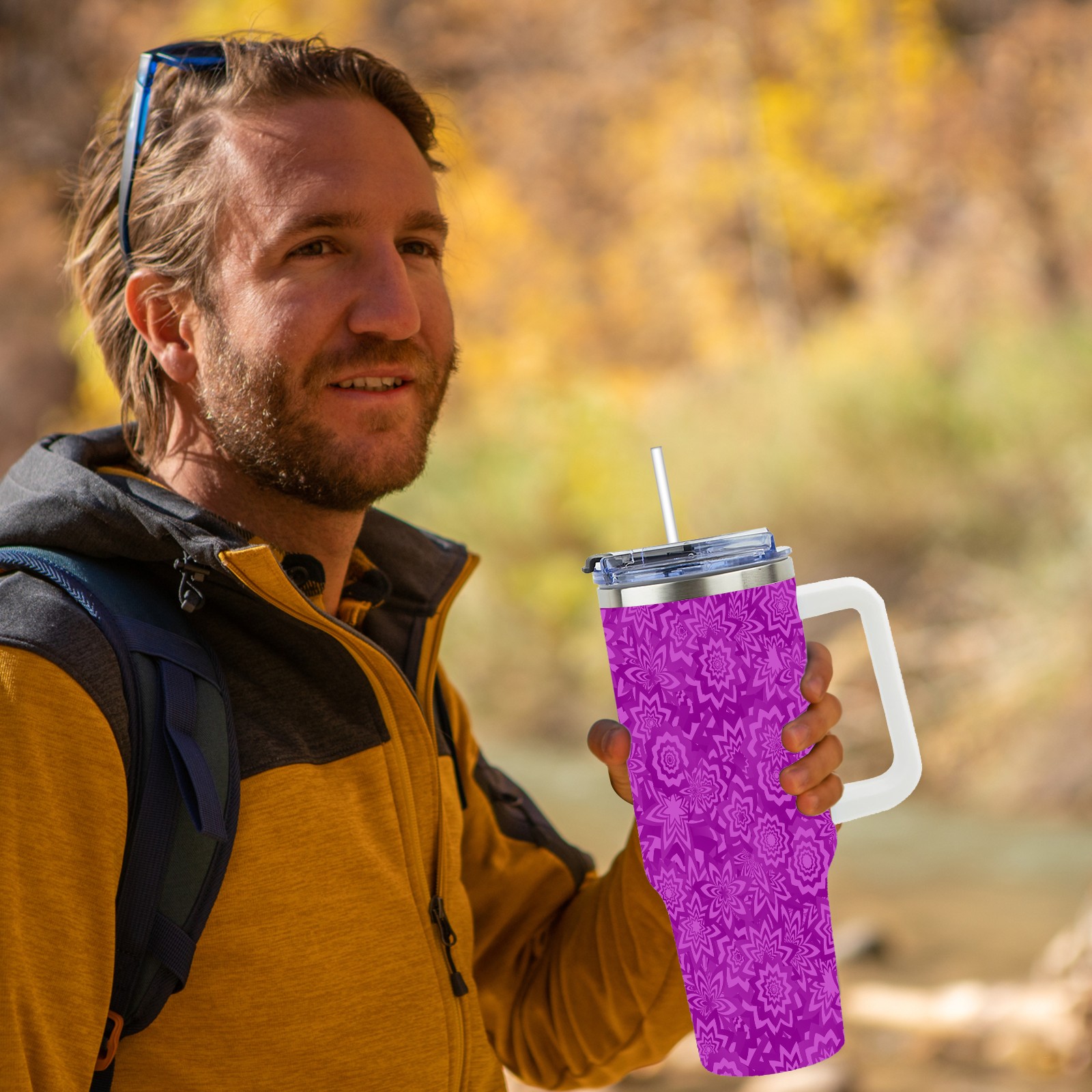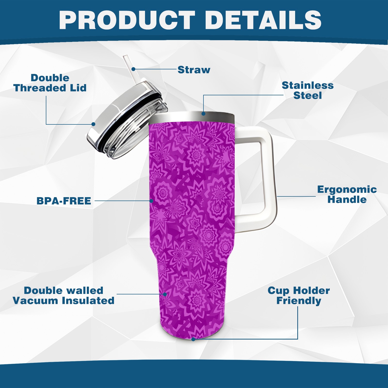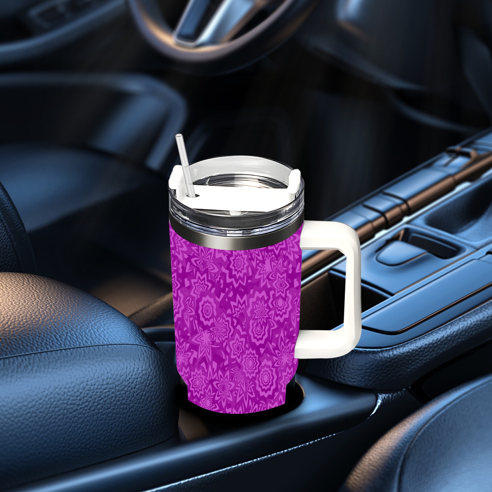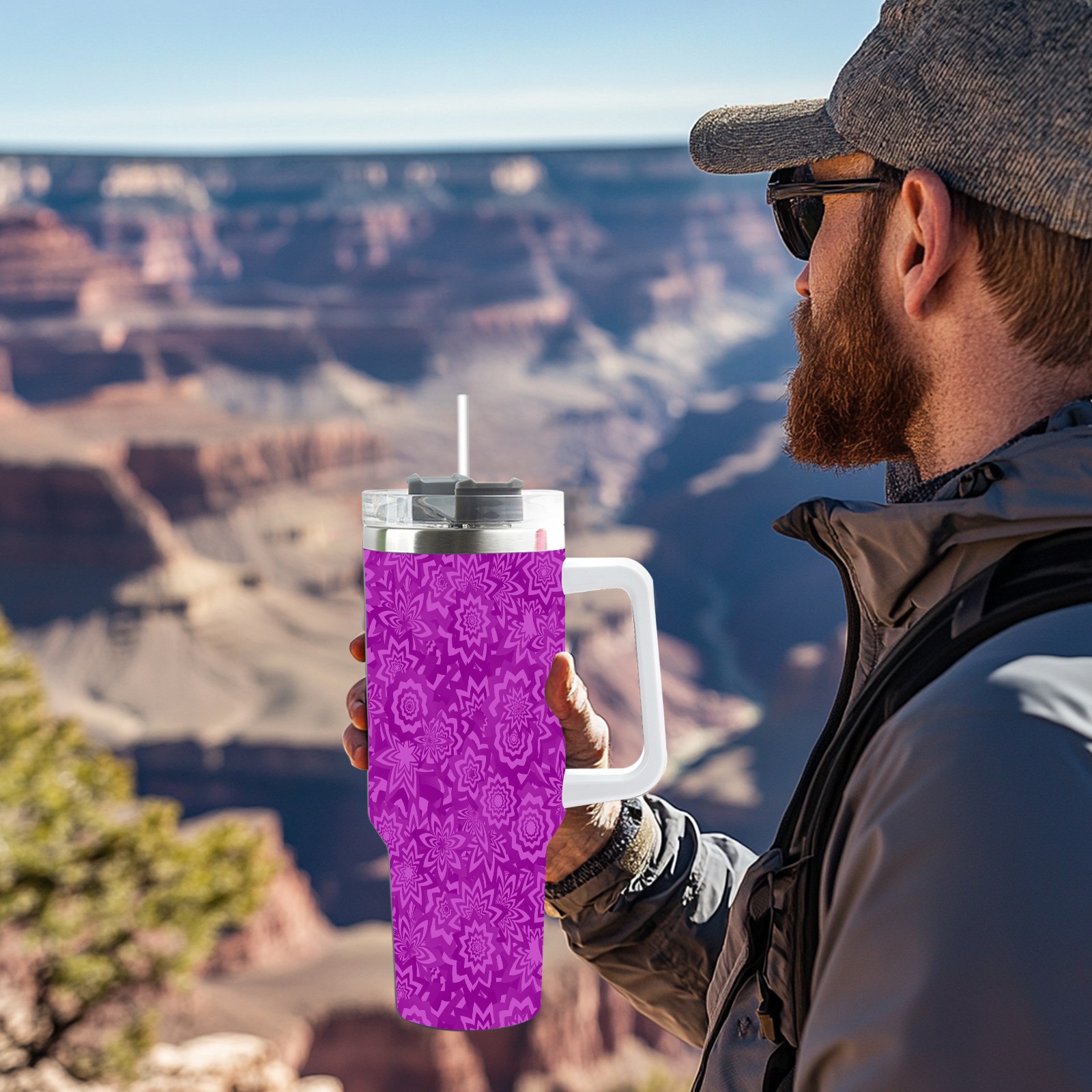 40oz Flower Shapes Purple thermos with lid and straw, leak-proof stainless steel, with handle, spill-proof bottle, convenient for travel(pink)