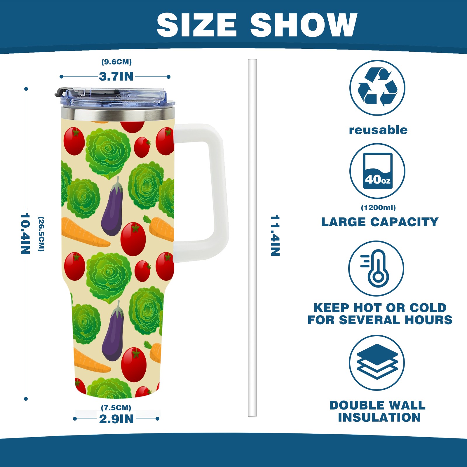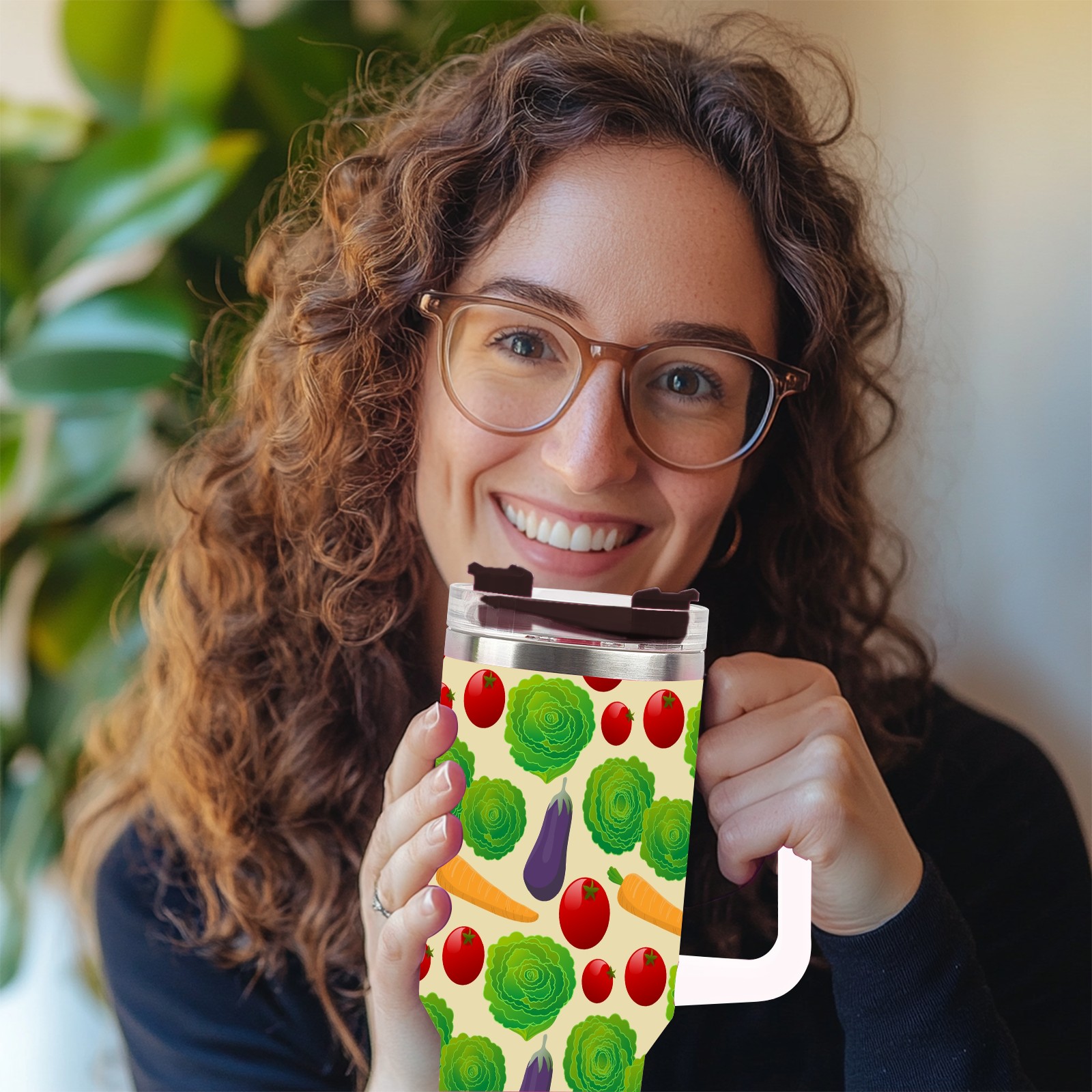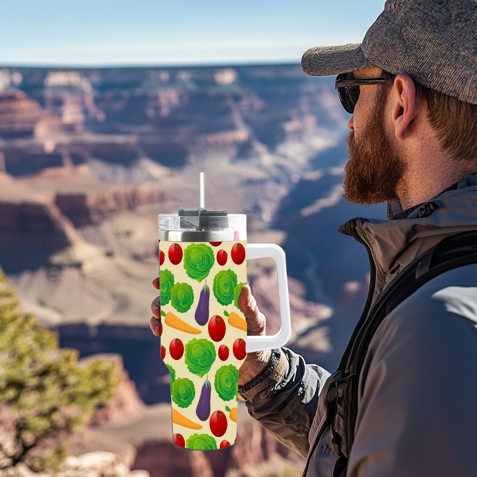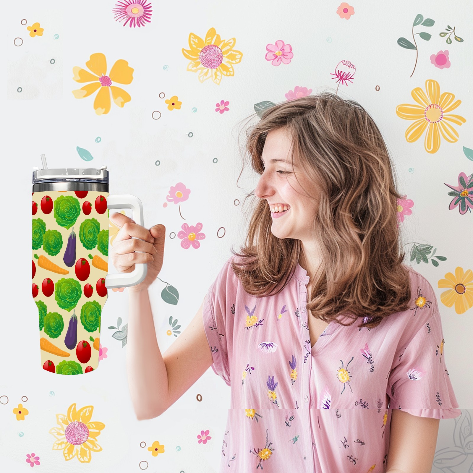 40oz Vegetables Seamless Colorful thermos with lid and straw, leak-proof stainless steel, with handle, spill-proof bottle, convenient for travel(pink)