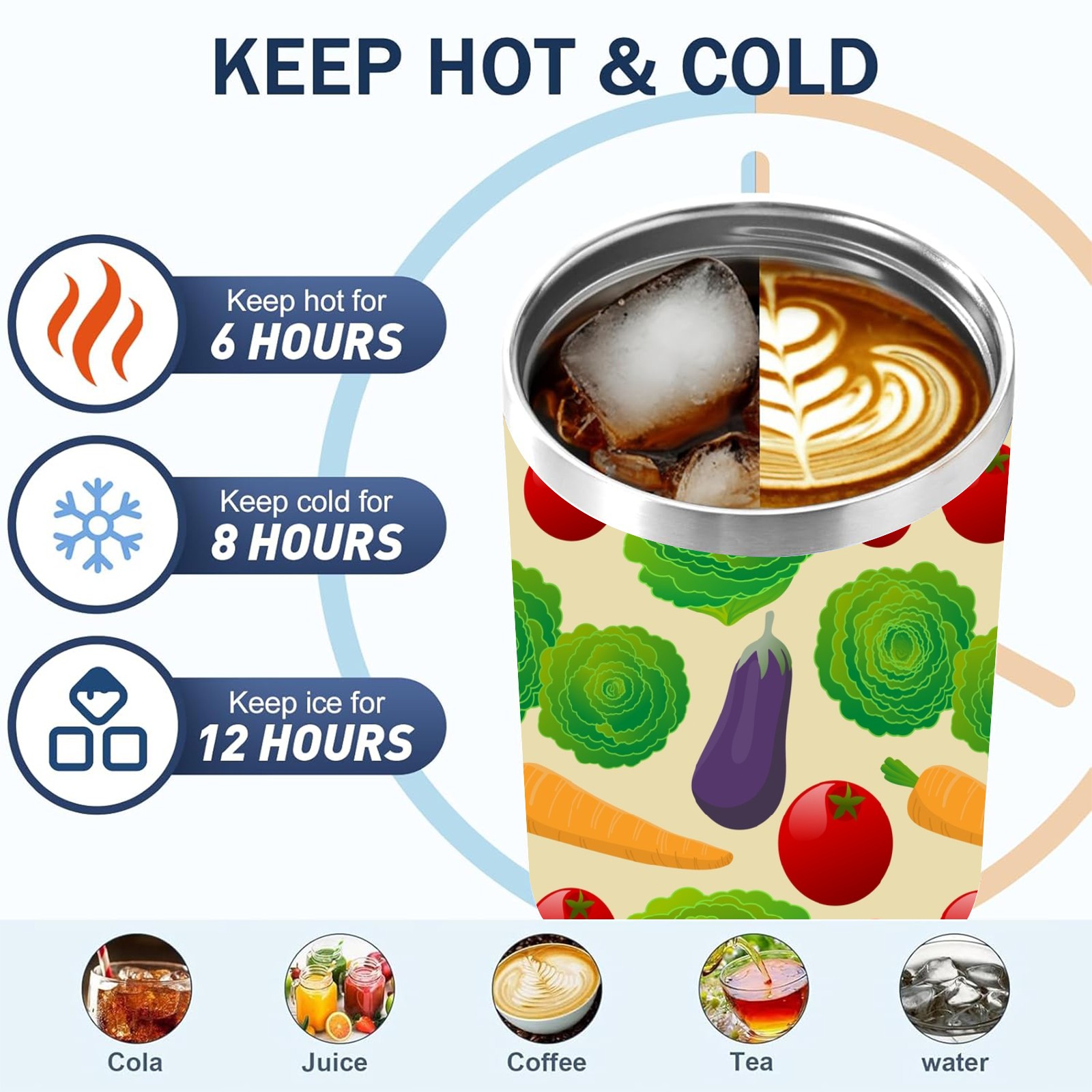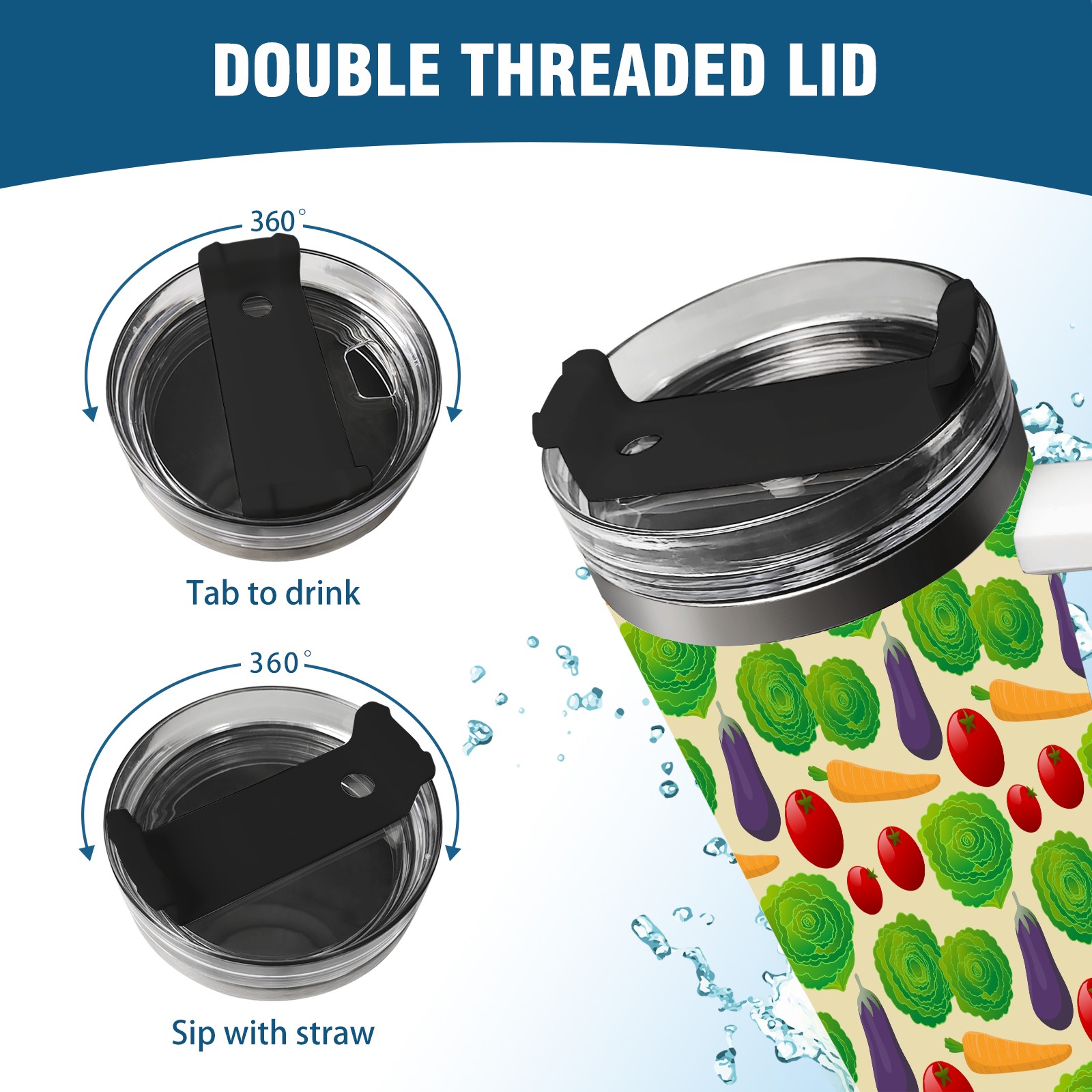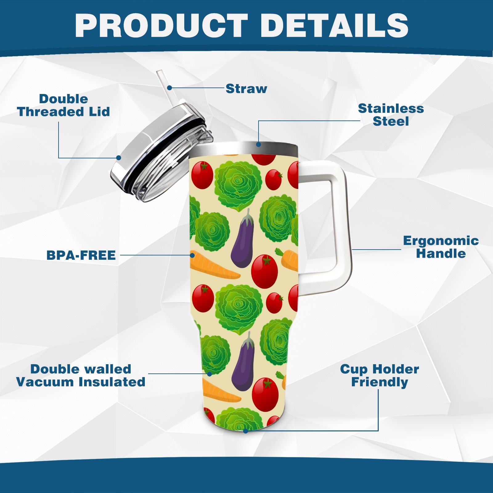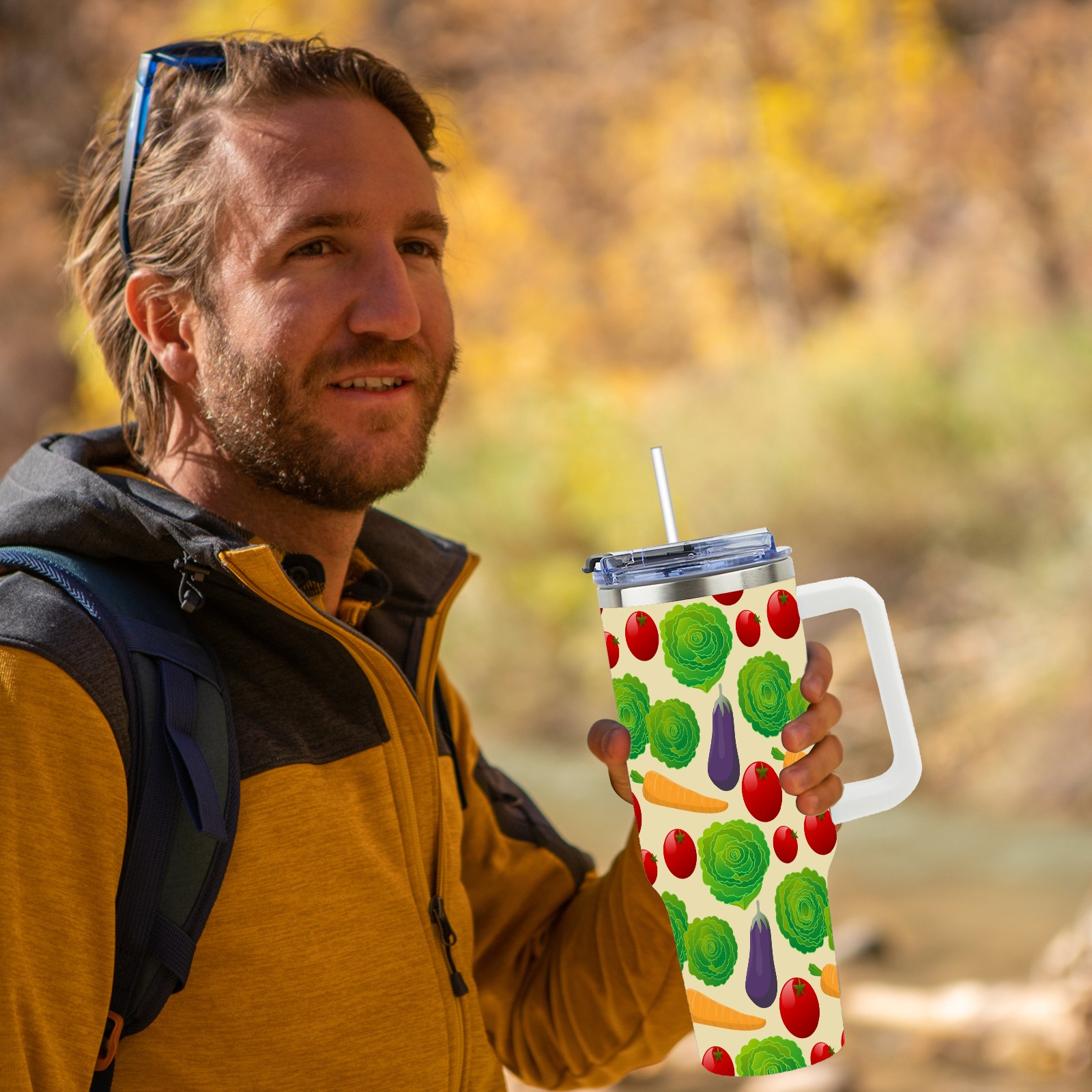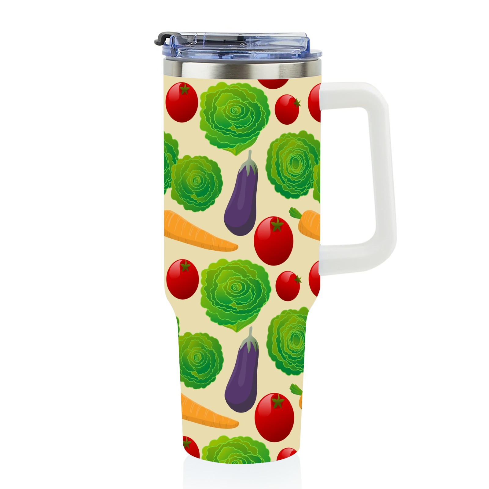 40oz Vegetables Seamless Colorful thermos with lid and straw, leak-proof stainless steel, with handle, spill-proof bottle, convenient for travel(pink)