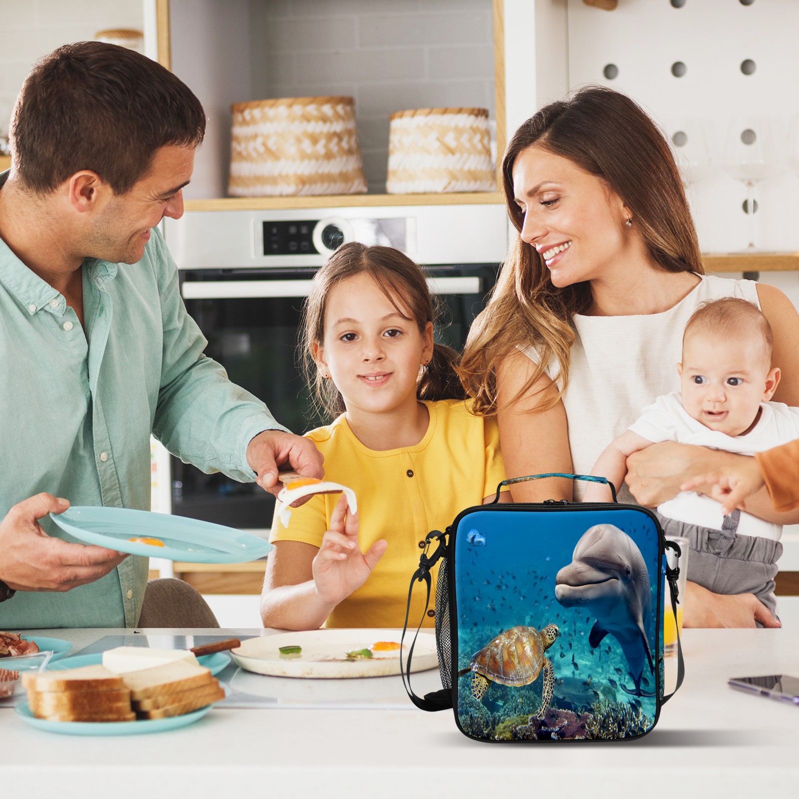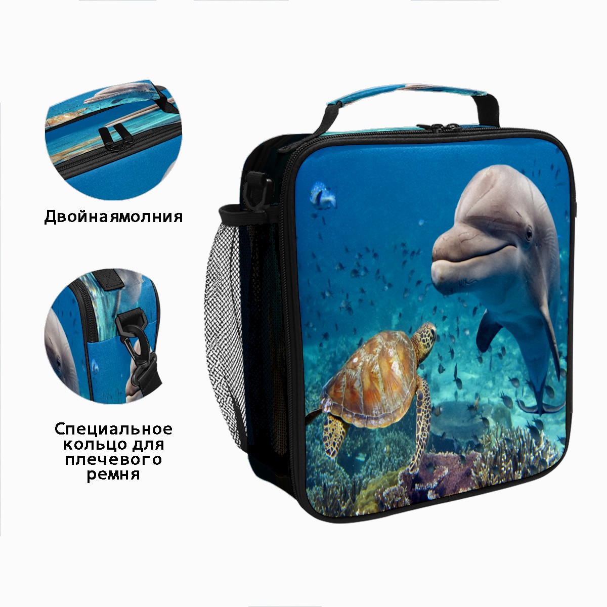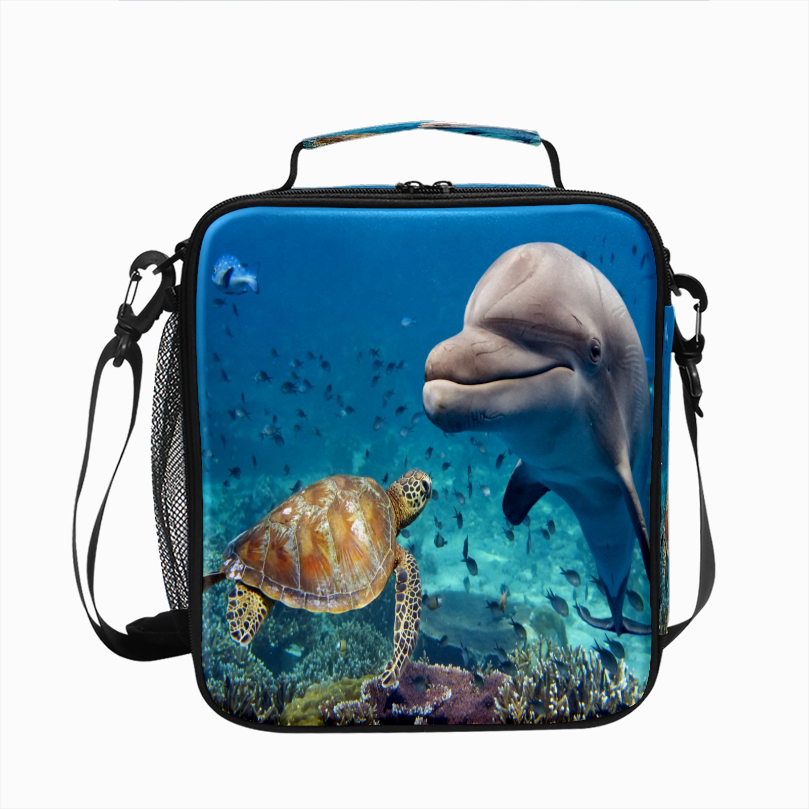 方形餐包 Sea Fish Turtle Dolphin Coral