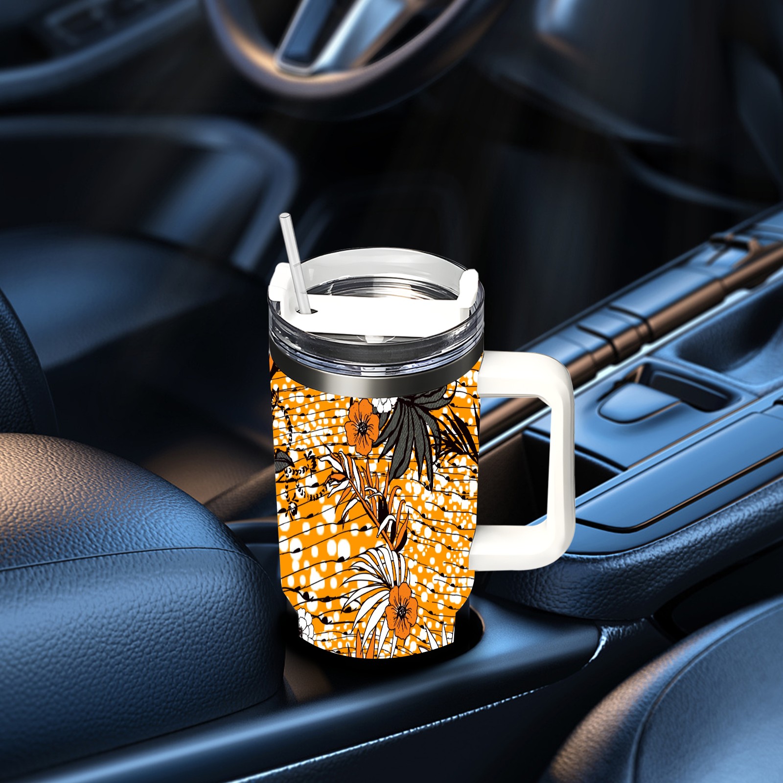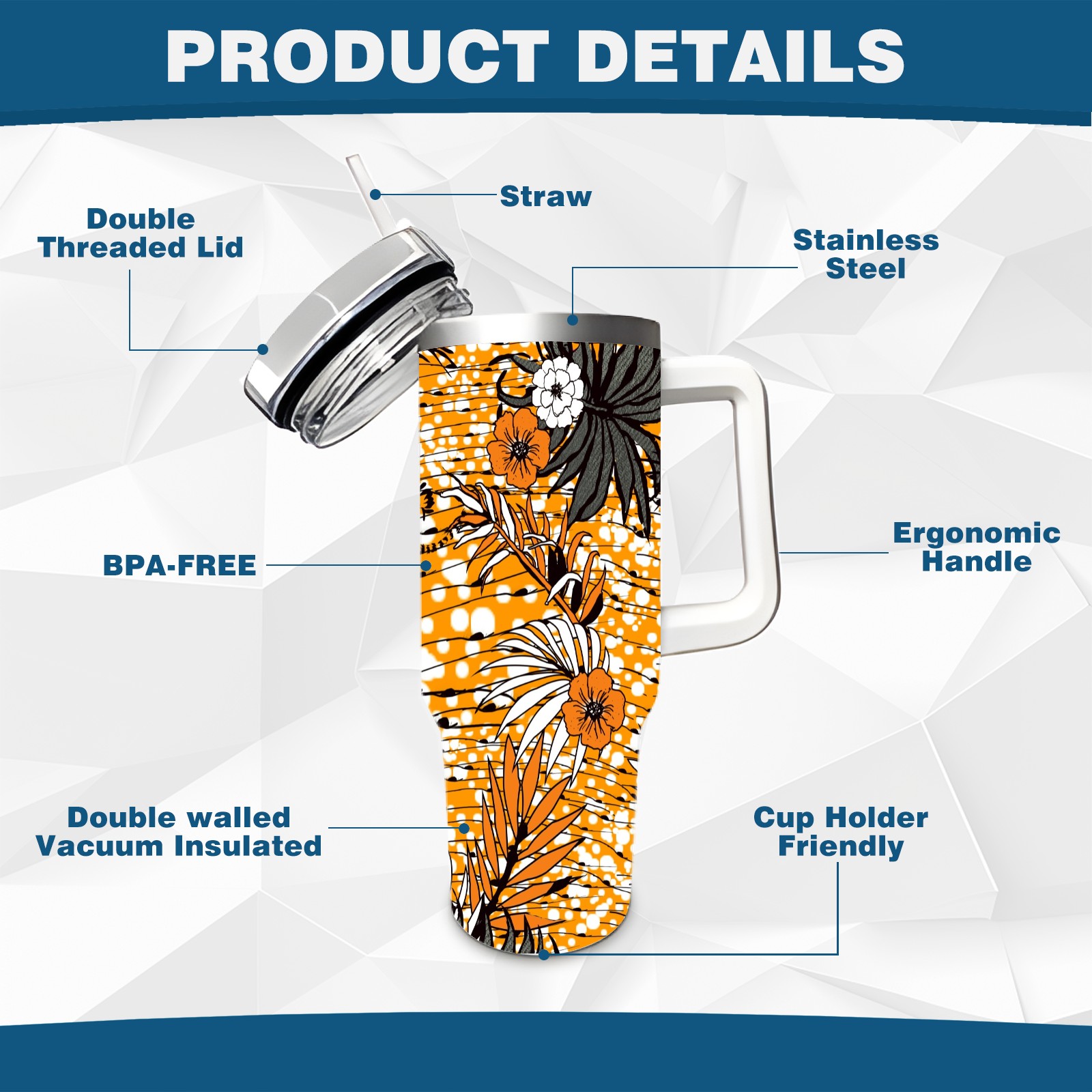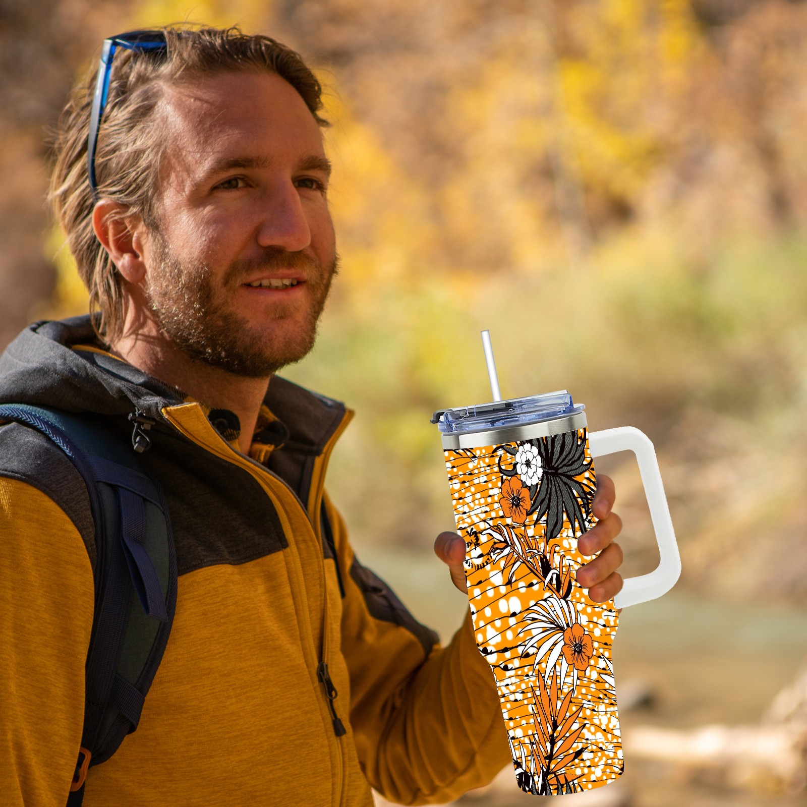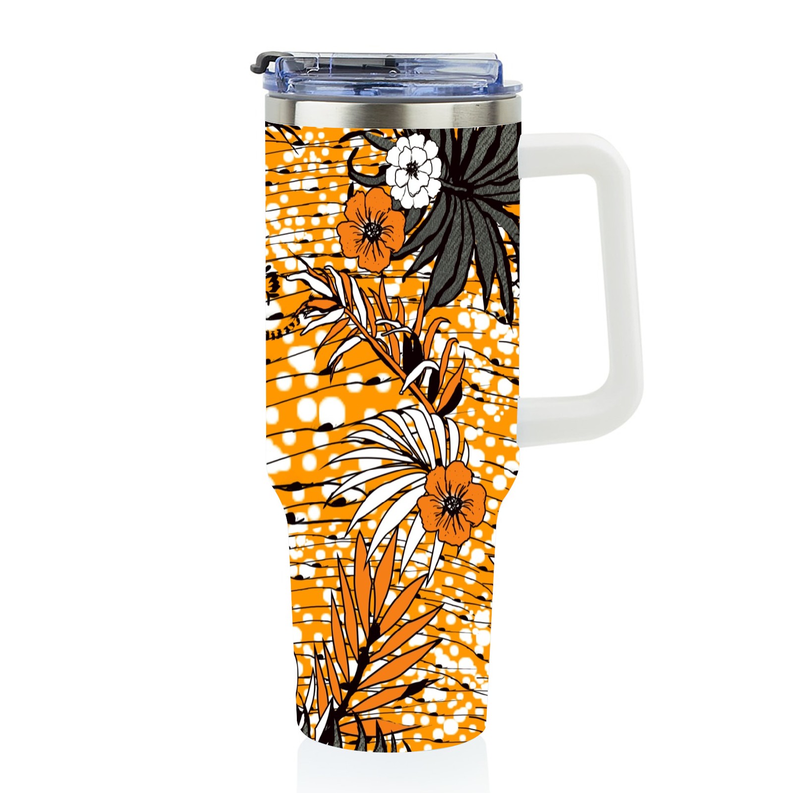 40oz Leaf Flower Seamless thermos with lid and straw, leak-proof stainless steel, with handle, spill-proof bottle, convenient for travel(pink)