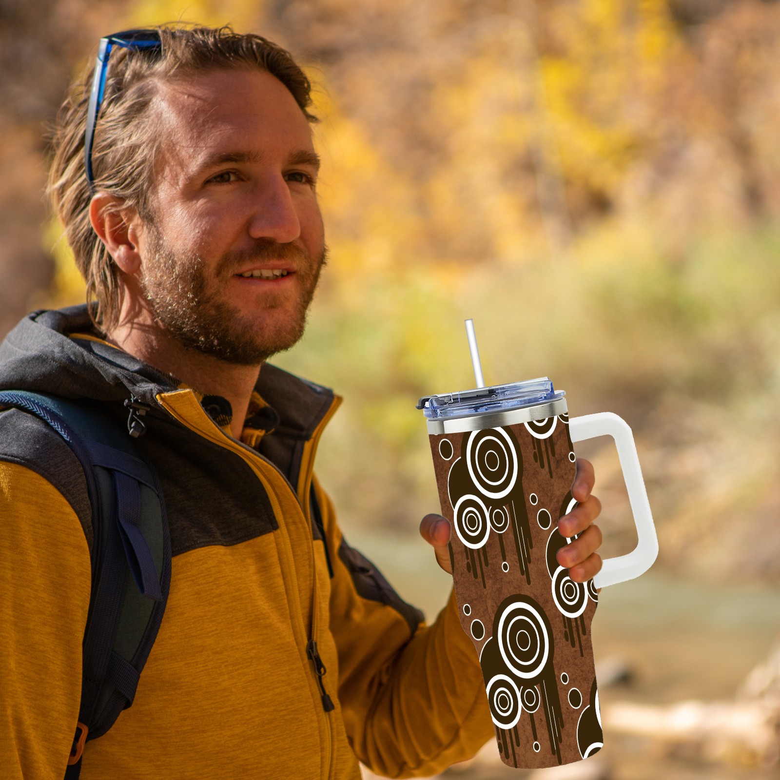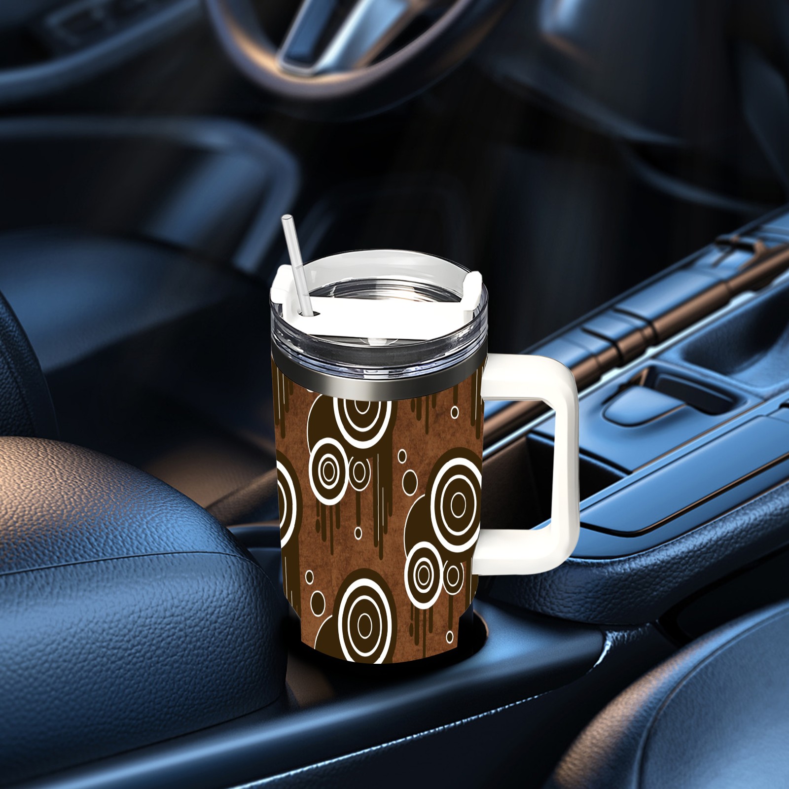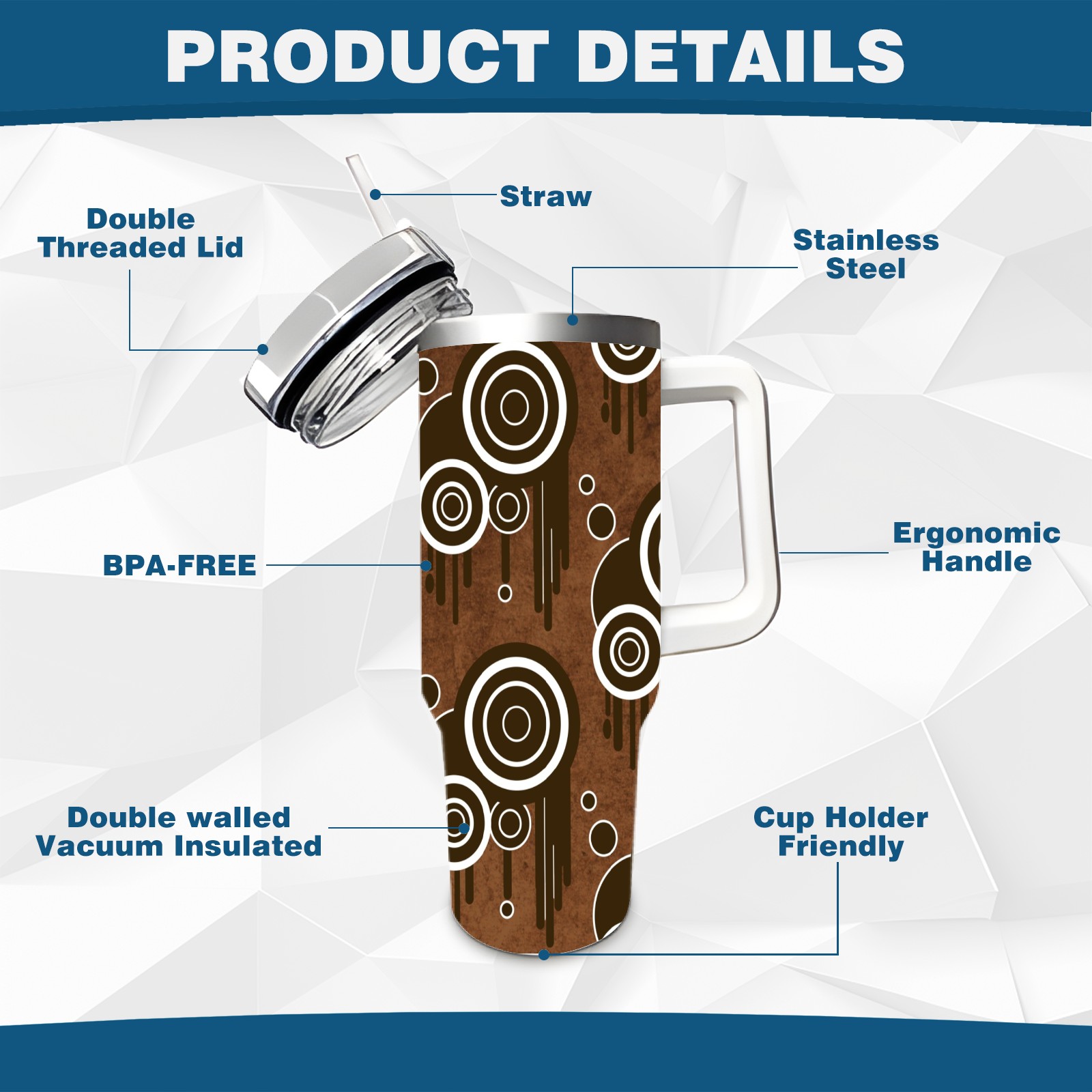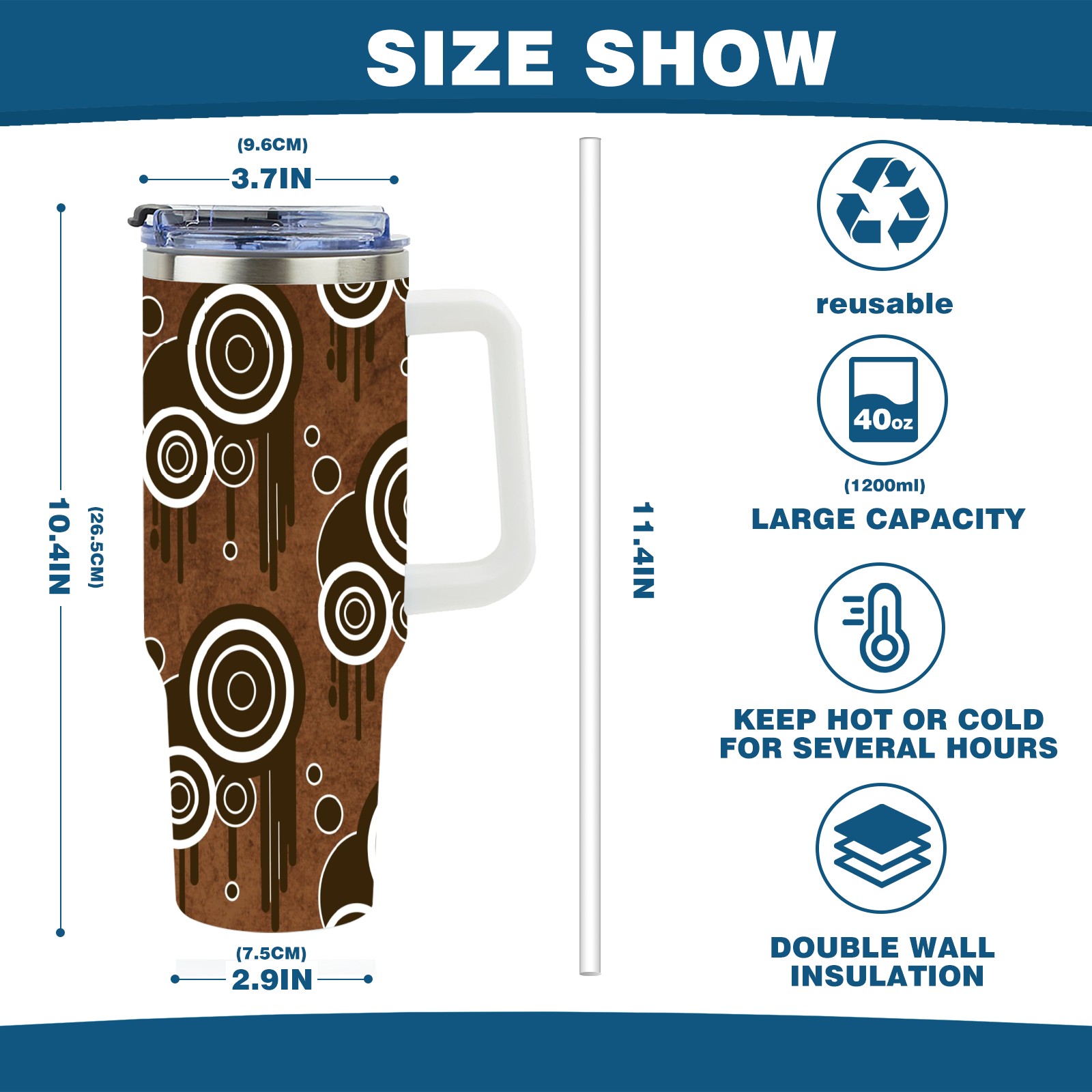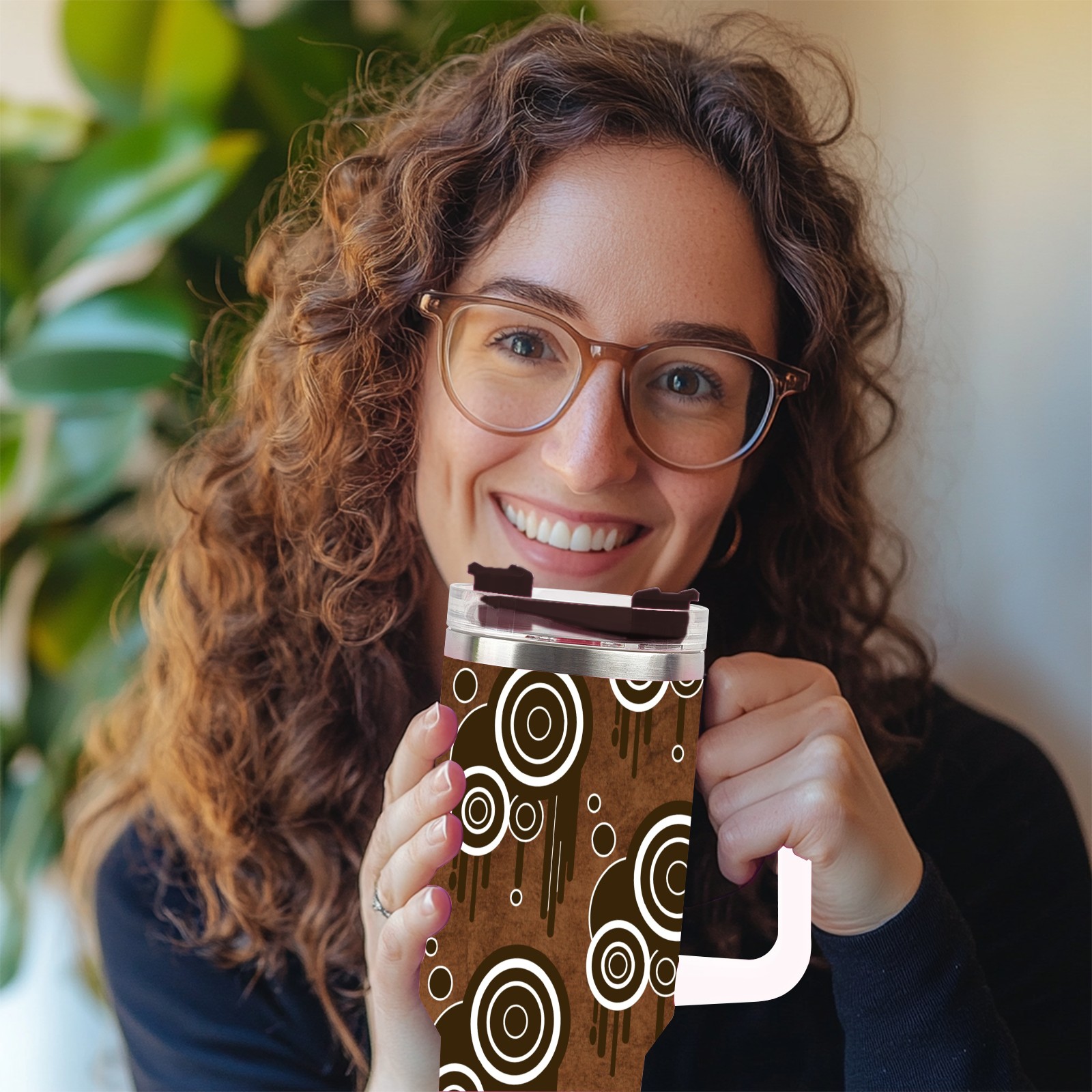 40oz Swirls Seamless Brown thermos with lid and straw, leak-proof stainless steel, with handle, spill-proof bottle, convenient for travel(pink)