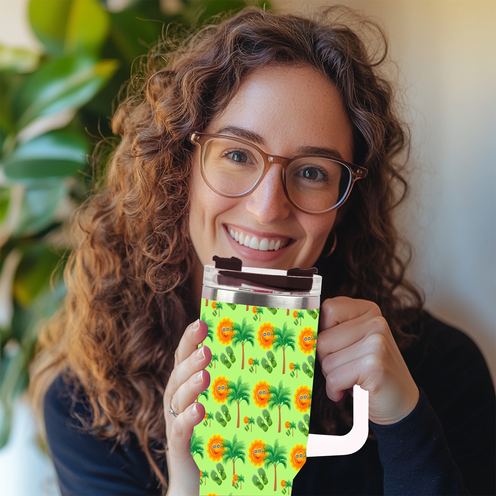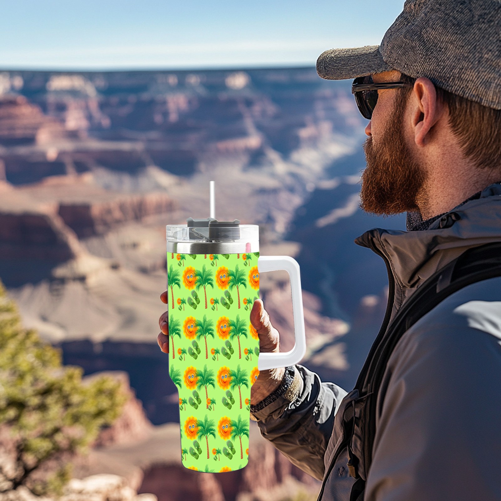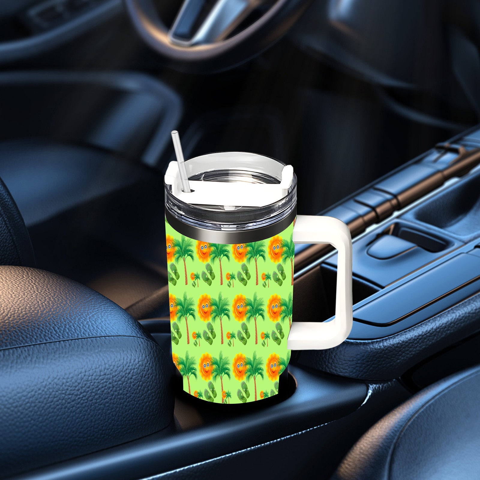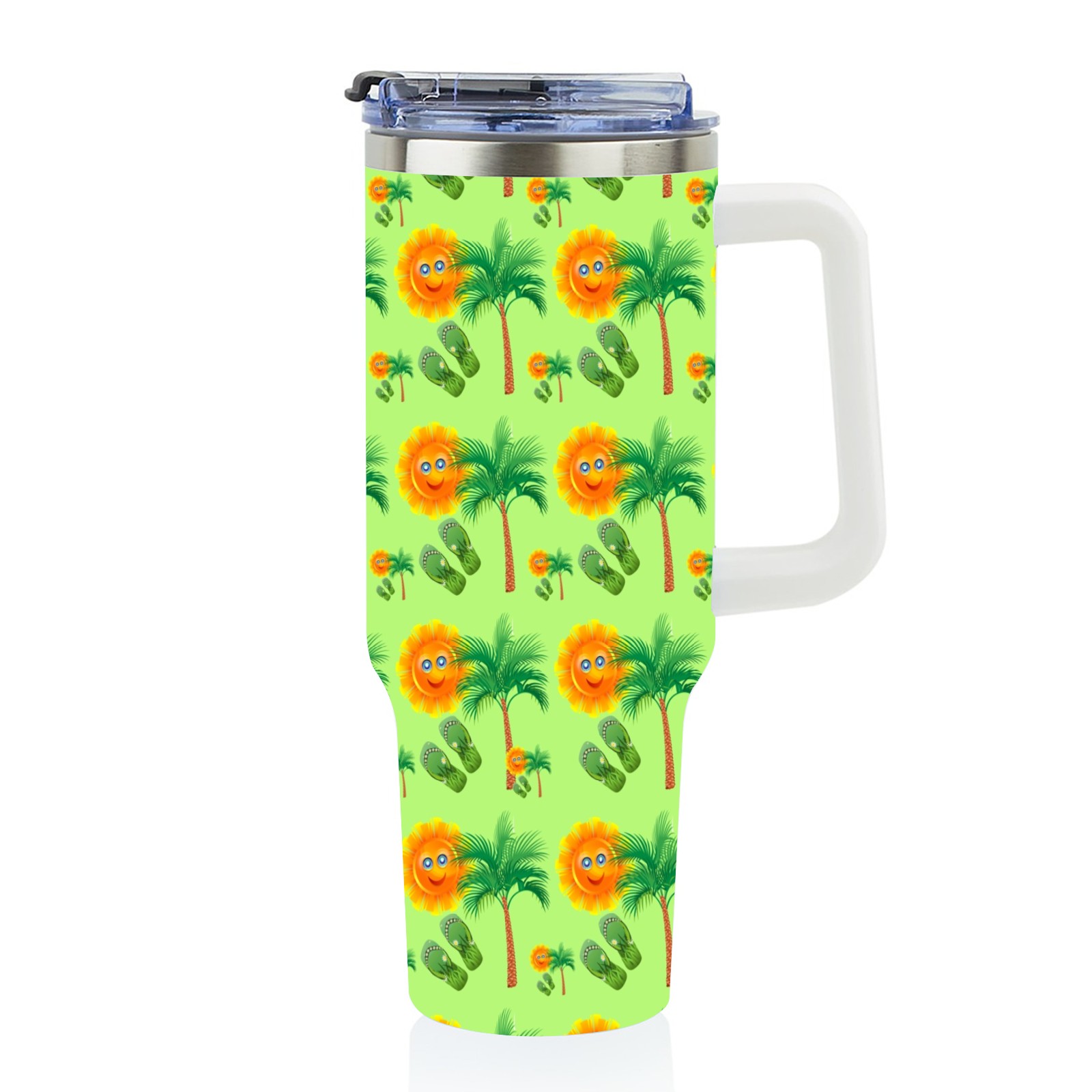 40oz Sun Palm Slippers Seamless thermos with lid and straw, leak-proof stainless steel, with handle, spill-proof bottle, convenient for travel(pink)
