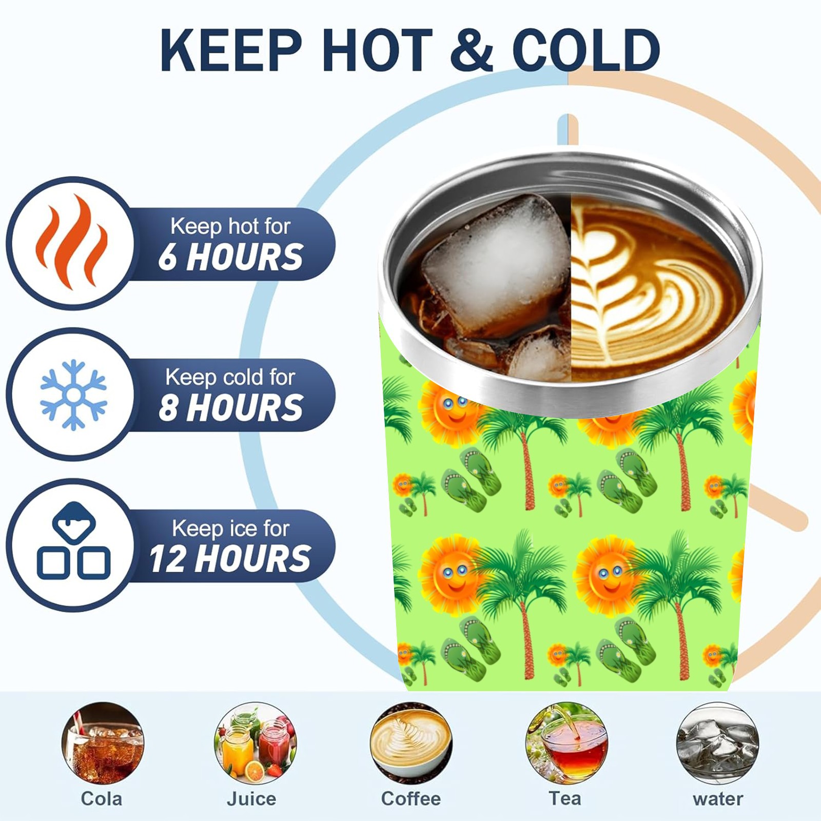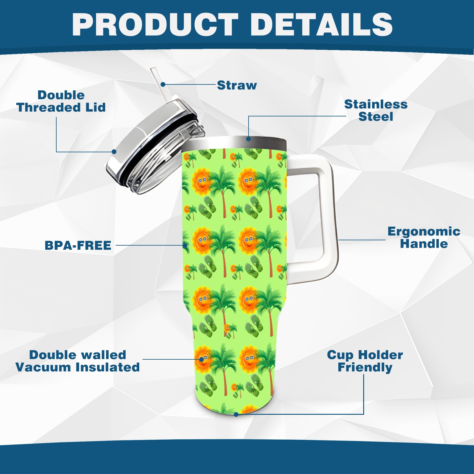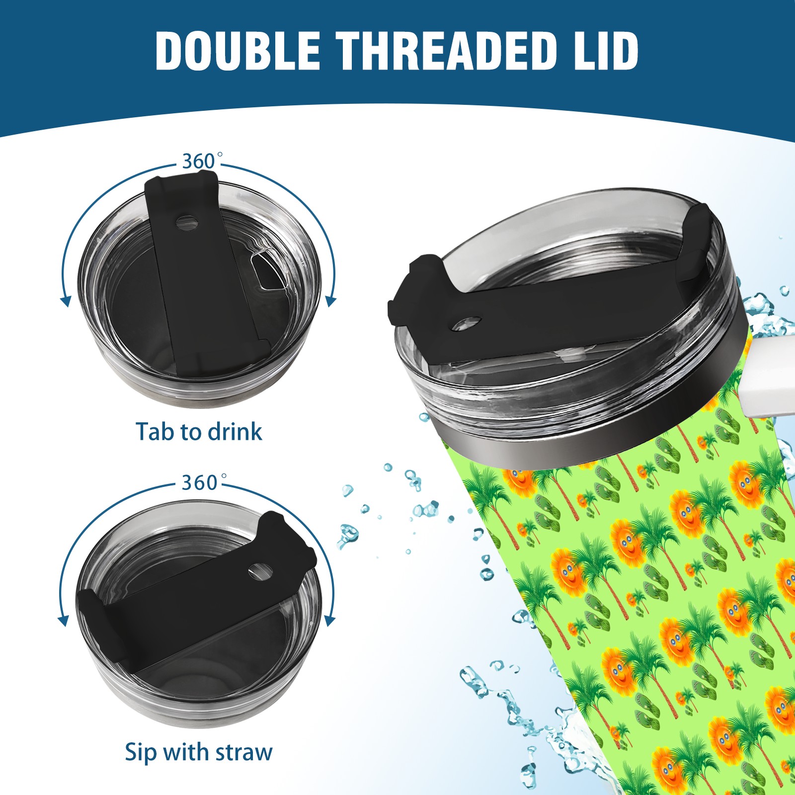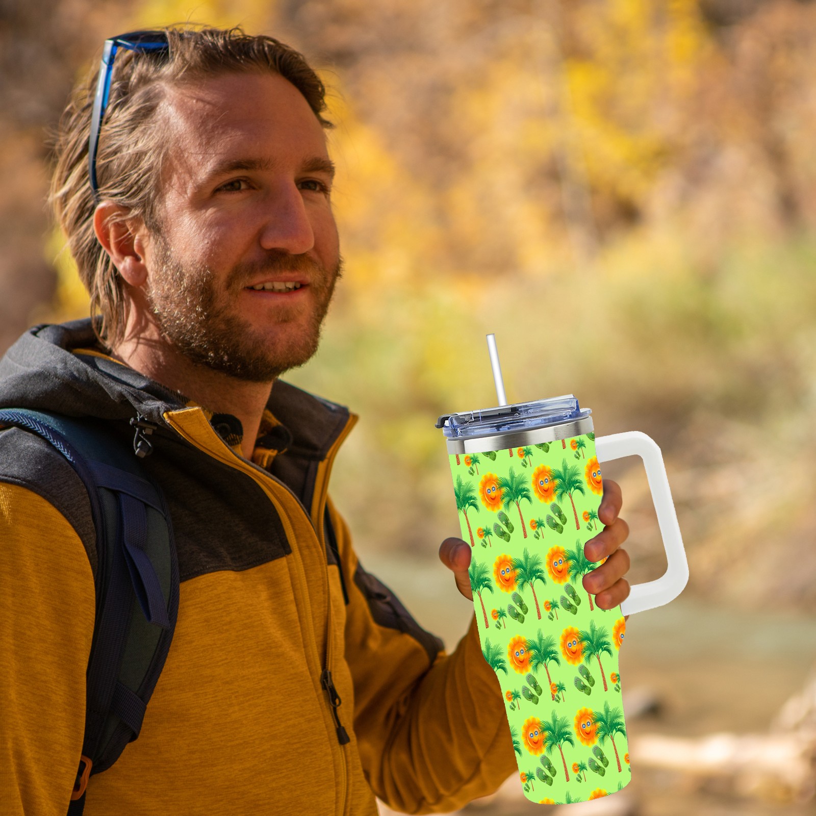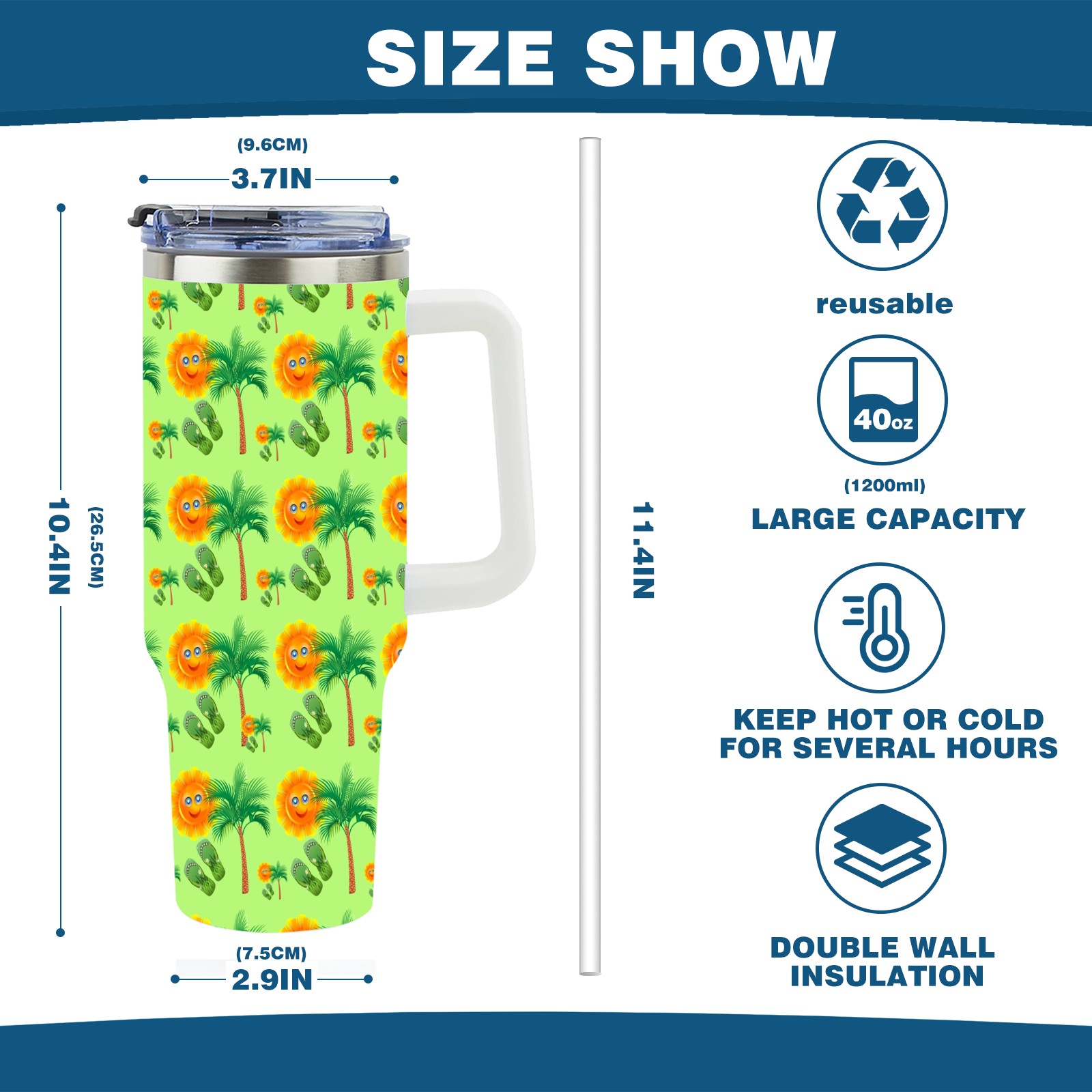 40oz Sun Palm Slippers Seamless thermos with lid and straw, leak-proof stainless steel, with handle, spill-proof bottle, convenient for travel(pink)