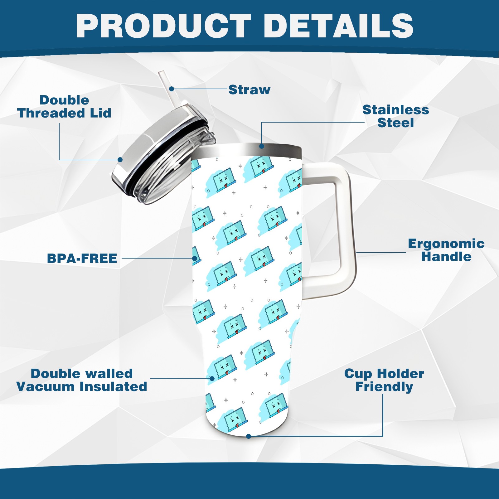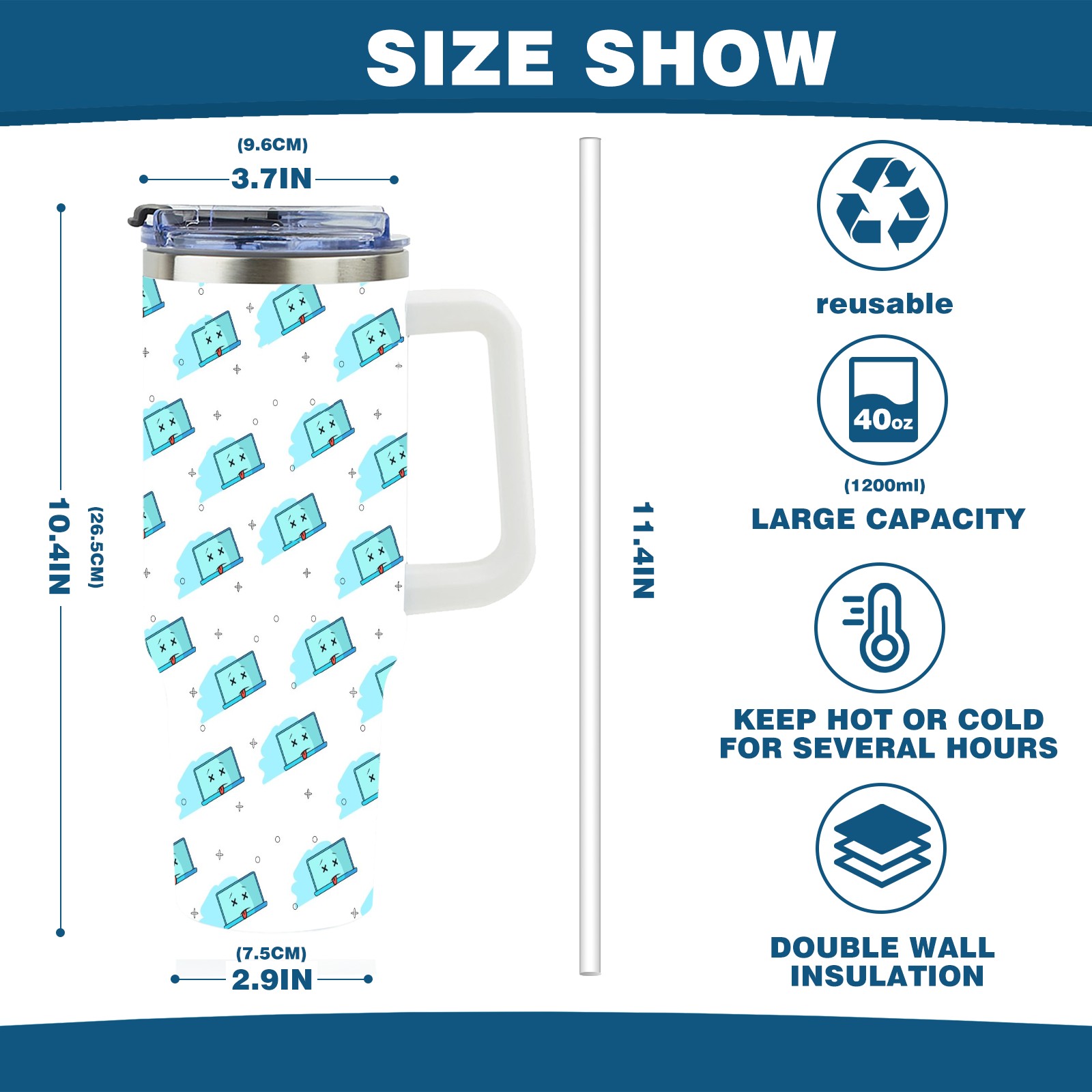 40oz Laptop Crash Seamless thermos with lid and straw, leak-proof stainless steel, with handle, spill-proof bottle, convenient for travel(pink)