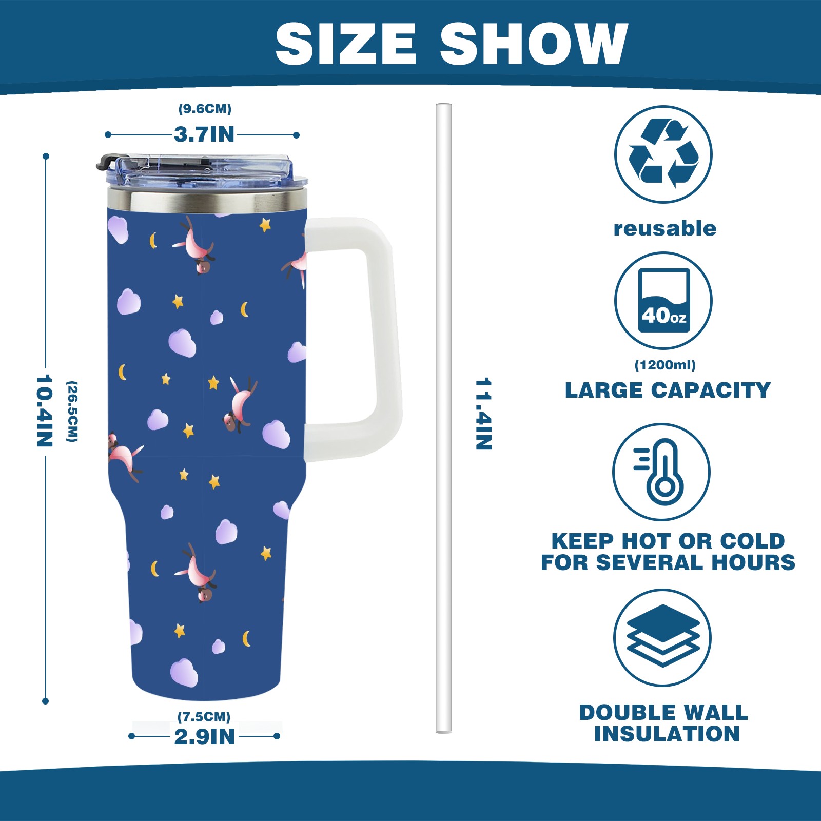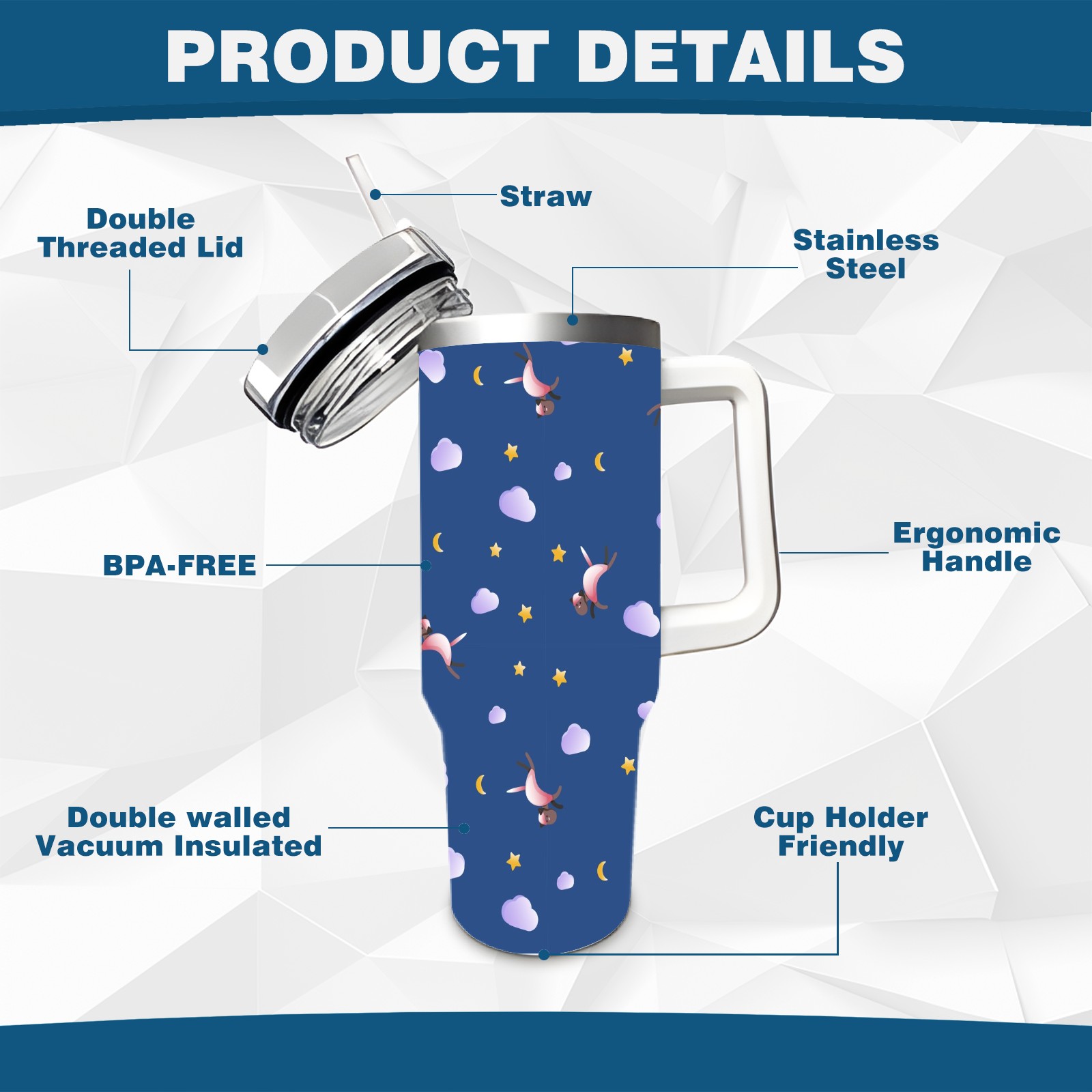 • <p>This multi-functional insulated water bottle features a simple and practical design, suitable for various daily scenarios. The ergonomic handle allows for easy one-handed drinking, and the detachable handle can be adjusted or removed as needed, making it convenient for commuting, exercising, or carrying to meetings. Made of high-quality stainless steel, it is BPA-free and features double-walled vacuum insulation technology that keeps drinks cold for 8 hours and hot for 6 hours, ensuring you can enjoy your beverage at the perfect temperature anytime, anywhere. The 40-ounce Christmas edition comes with a sliding lid, silicone straw, and a non-slip design. Accessories are dishwasher safe, and the narrow bottom and wide mouth design perfectly fits car cup holders. The exclusive flip-top straw lid is environmentally friendly and durable, with a one-touch leak-proof closure and two drinking modes: sip and gulp. A dust cover provides effective protection. This bottle is suitable for travel, office work, sports, camping, and other occasions, making it a thoughtful gift for friends and family.</p>
