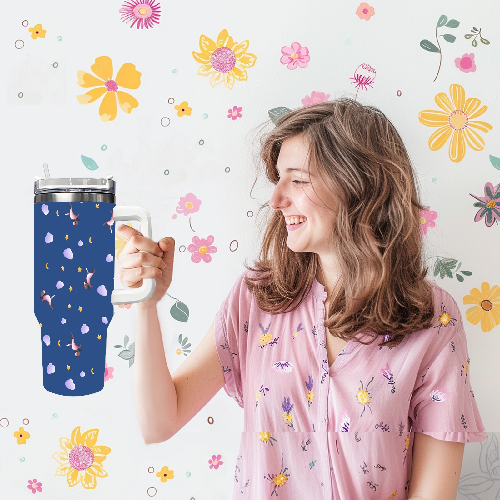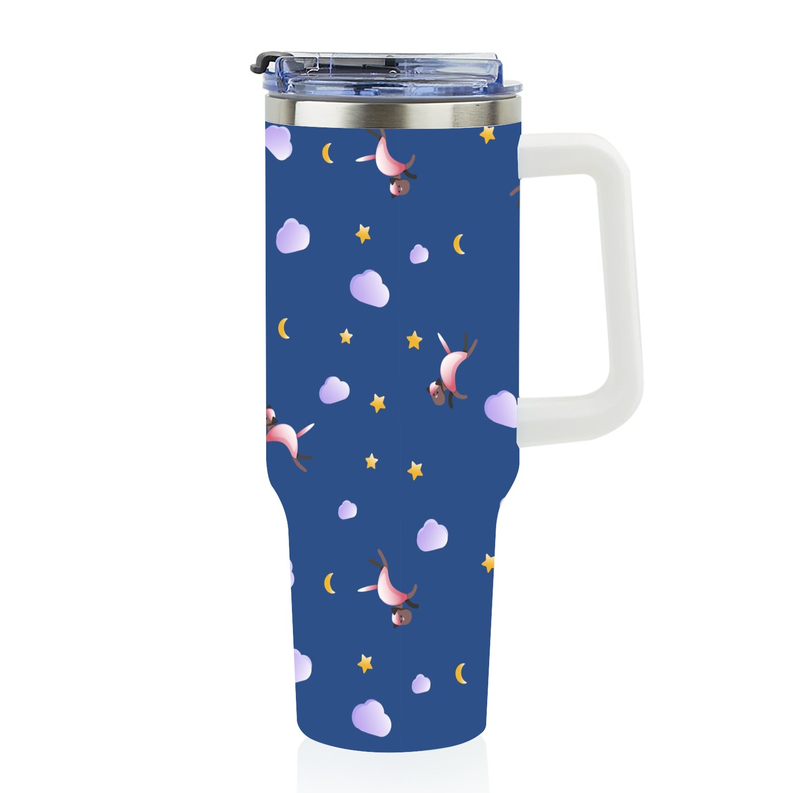 40oz Animal Cartoon Seamless thermos with lid and straw, leak-proof stainless steel, with handle, spill-proof bottle, convenient for travel(pink)